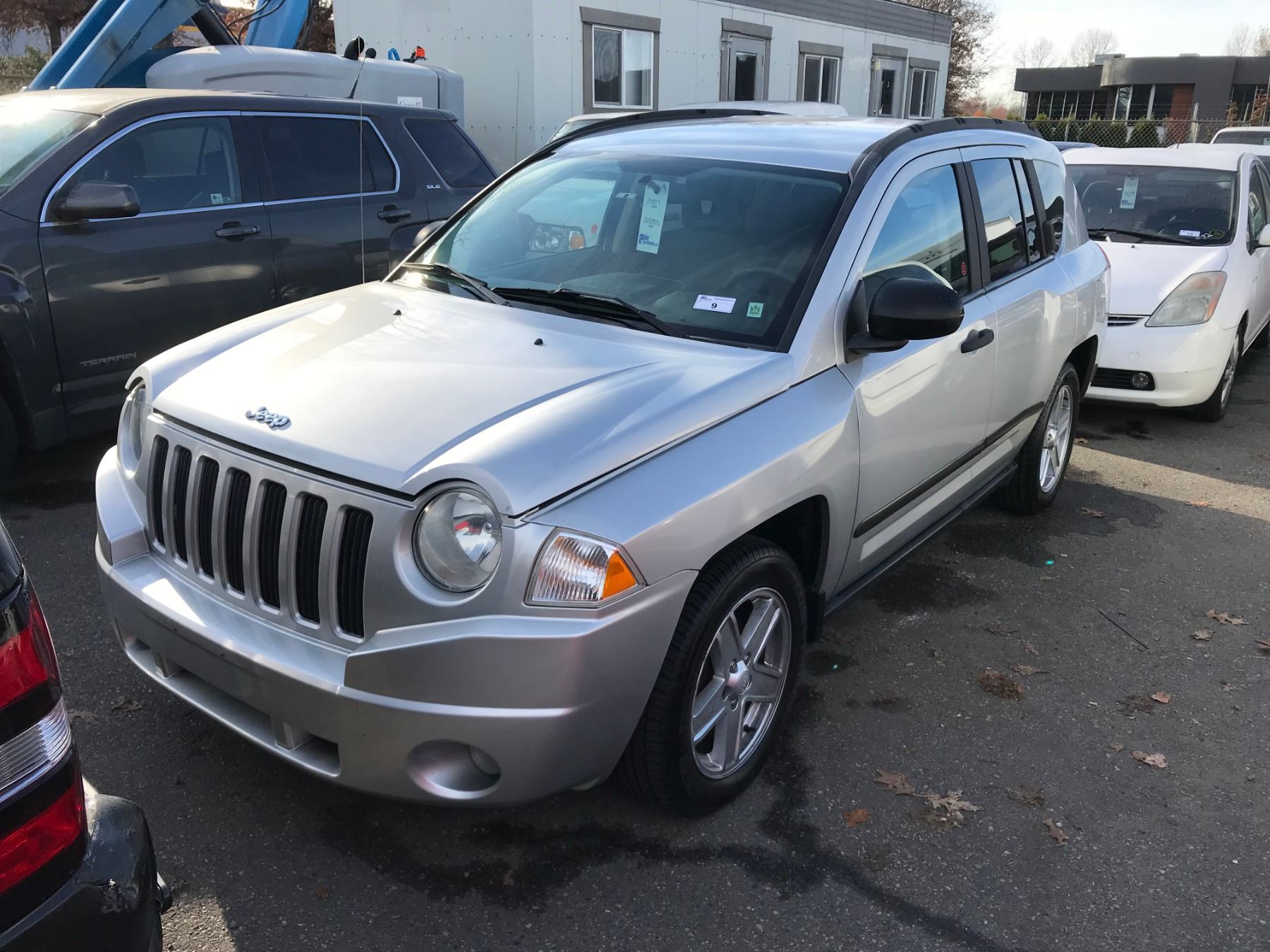2007 JEEP COMPASS, GREY, 4DRSW, GAS, AUTOMATIC, VIN#1J8FF47W87D423897, 223,855KMS, RD,CD,PW,CC,PL,TW,4W,AC, AFTERMARKET PUSH BUTTON START, CRACKED PASSENGER SIDE MIRROR, RUST BACK PASSENGER SIDE WHEEL WELL, 2 ICBC DECLARATIONS NO DETAILS, 1 ICBC REPAIRED DECLARATION 3762.1