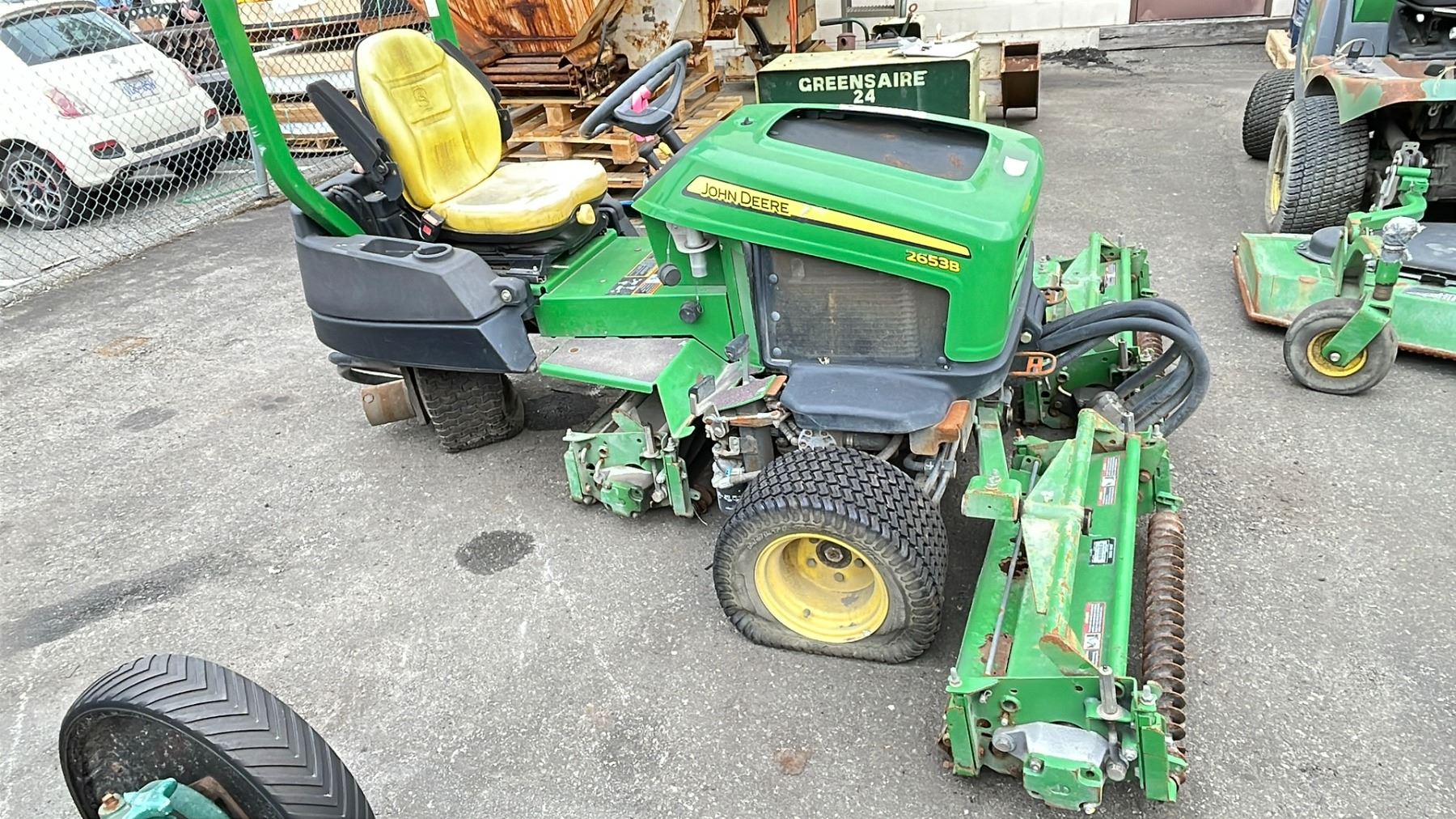 2007 JOHN DEERE 2653B, 3 WHEEL MOWER, GREEN, VIN TC2653T0106566 TMU, DIESEL (D), HAS KEYS, HISTORY: X-CITY, HAS REGISTRATION, ENGINE SER # CH3009D209732, MOWER # M0030HX140265, MOWER # M0030HX140348, ENGINE FAMILY 7YDXL0.85V3N, ENGINE MODEL 3TNV70-D, HOUR SCREEN BROKEN, FLAT REAR TIRE, NO ICBC INFORMATION AVAILABLE, HEAVY BLACK SMOKE FROM EXHAUST, POSSIBLE VALVE GUIDE ISSUES OR PISTON RING BLOW-BY