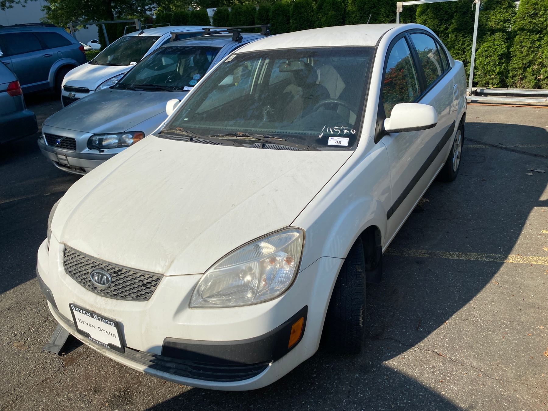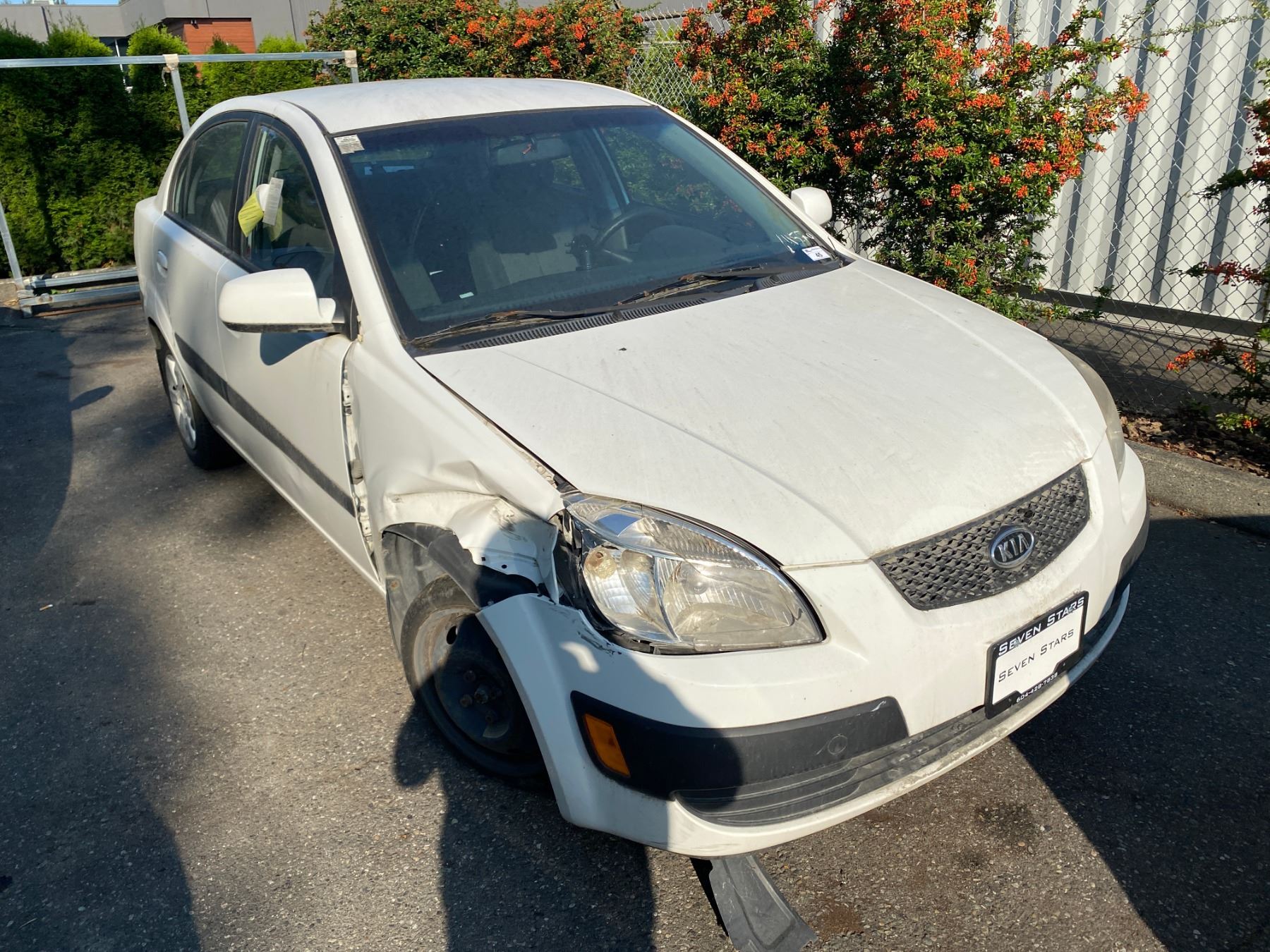 2007 KIA RIO 4 DOOR WHITE VIN#KNADE123076246048 KMS UNKNOWN, GAS, AUTO RD, CD, AW, AC, *HAS BC REGISTRATION* OOP, . MAJOR DENT TO FRONT WHEEL RIM, HEAD LIGHT BROKEN 2X NO DETAILS *NO KEY, MUST TOW, NOT ROADWORTHY*