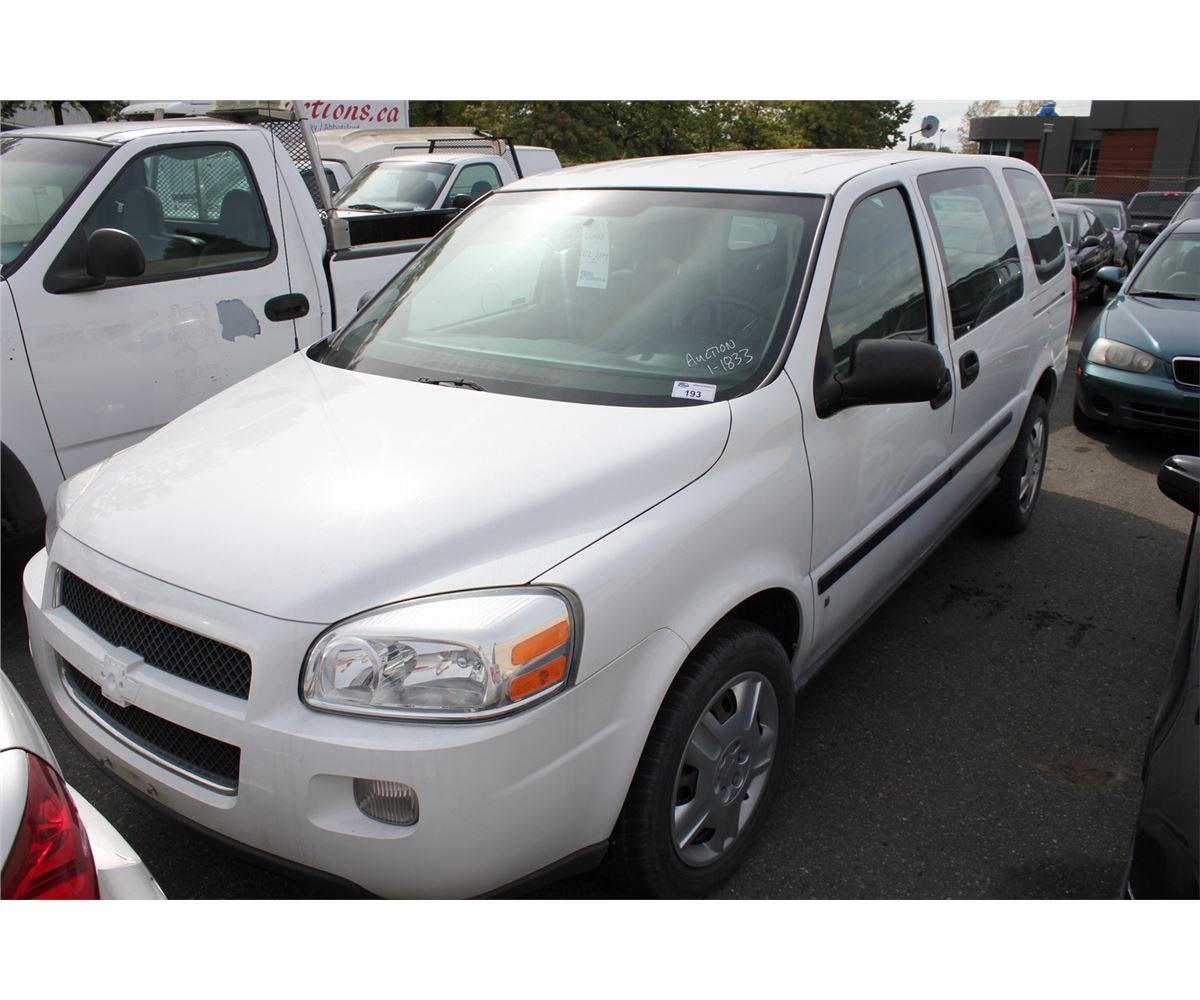 2008 CHEVROLET UPLANDER, 3 DOOR CARGO VAN, WHITE, VIN # 1GBDV13168D141421 112,204KMS, GASOLINE 3.9L, AUTOMATIC RD,CD,PW,PL,TW,AC DECS TOTAL $4,116.97 X-CITY