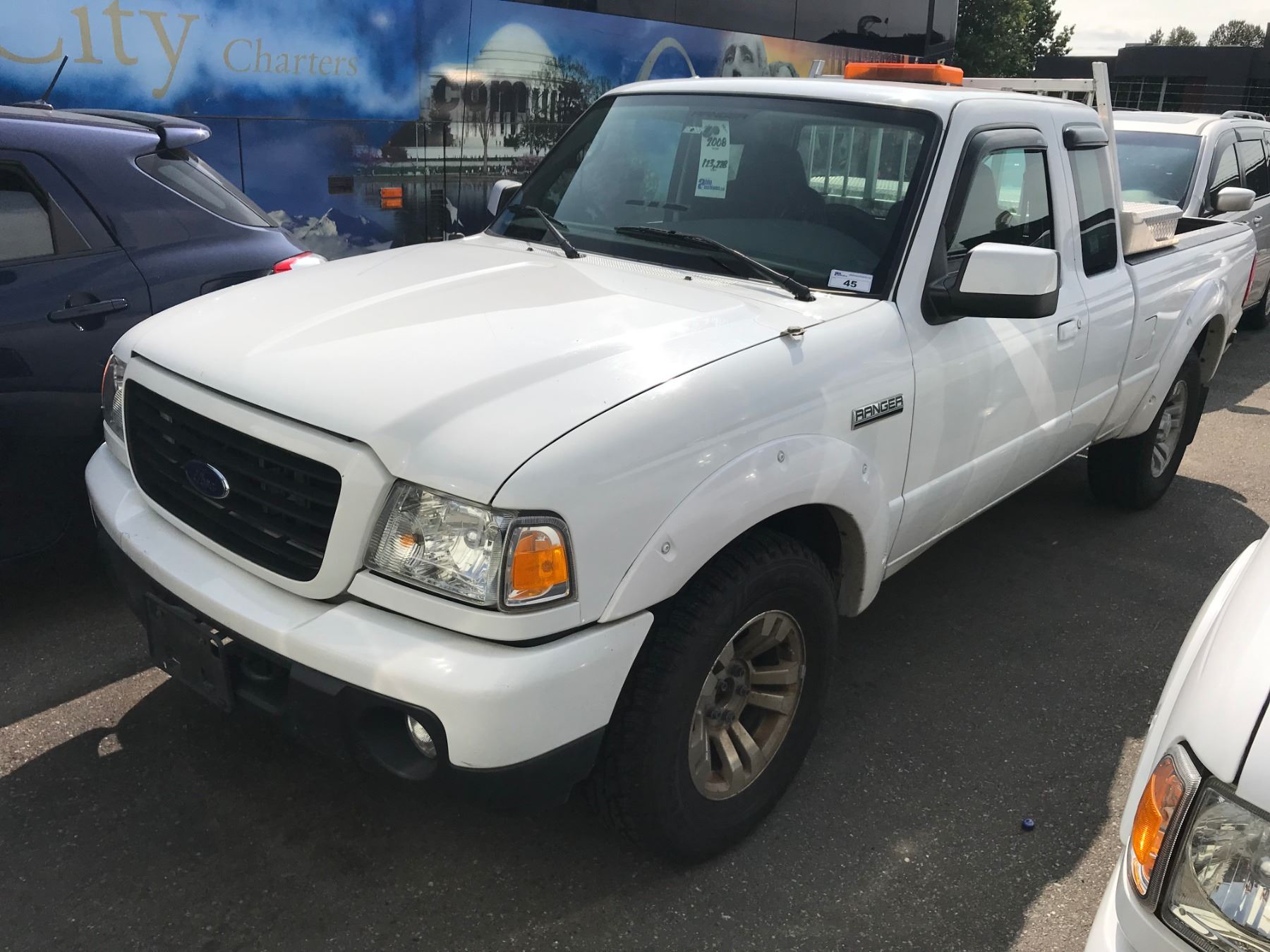 2008 FORD RANGER, 2DR CREW CAB PU, WHITE, VIN # 1FTZR45E28PA30760 123,228KMS, GAS, AUTOMATIC RD,CD,PW,AW,4W,AC, CHECKER PLATE TOOL BOX, HEADACHE RACK, BEACON ICBC REPAIRED DECLARATION $1,762.85