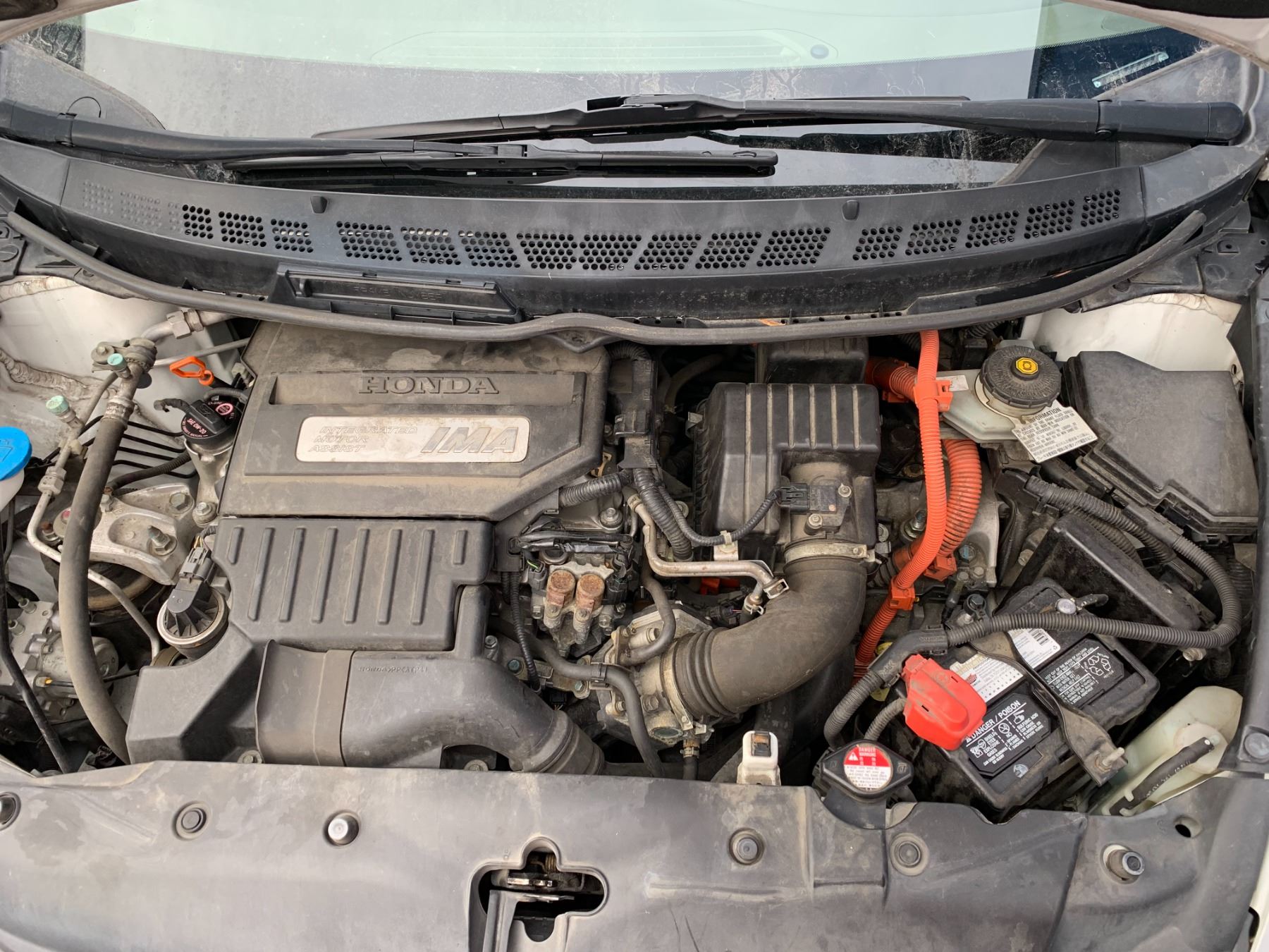 2008 HONDA CIVIC HYBRID, 4DR COUPE, WHITE, VIN JHMFA36228S801982 98,017 KMS, GAS, 1.3L, KEYS, STARTS, SCRATCHED ON REAR BUMPER, SCRATCHED ON PASSENGER SIDE DOOR, SMALL RUST SPOTS ON ROOF, 158V BATTERY, RD, CD, PW, CC, PL, TW, AC, *HAS REGISTRATION* ICBC DECLARATIONS - 1 X GLASS REPAIRS $893.78