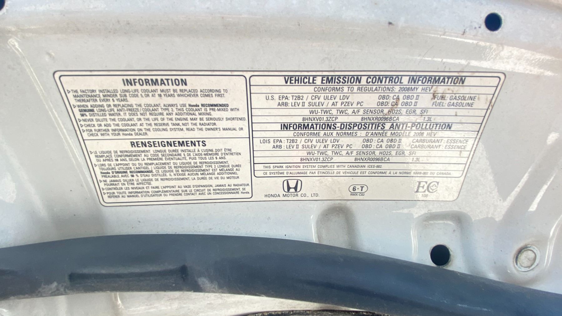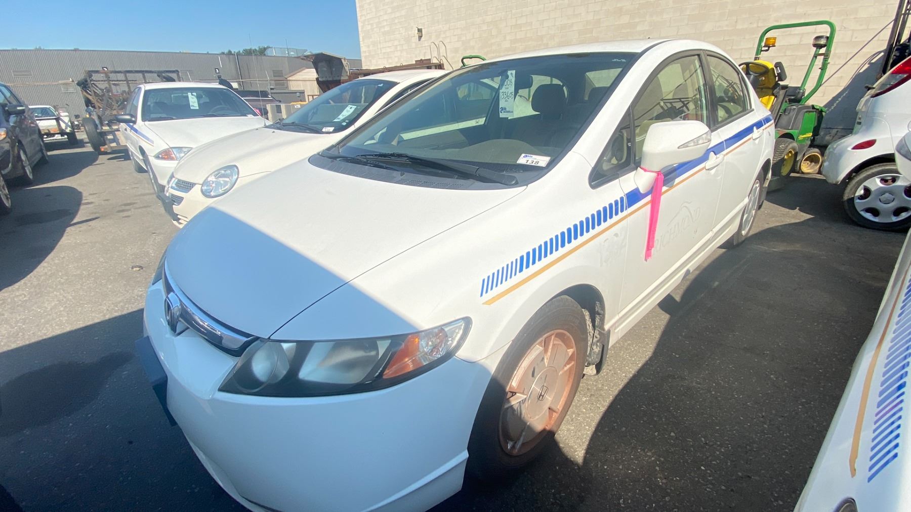 2008 HONDA CIVIC HYBRID, 4DRSD, WHITE, VIN JHMFA36228S800931 133,605 KMS, HYBRID (G/E), 13.L, AUTOMATIC, HAS REGISTRATION, HAS KEYS, NEEDS JUMP, FEATURES: RADIO, COMPACT DISC, POWER WINDOWS, CRUISE CONTROL, QUAD SEATS, ALLOY WHEELS, POWER LOCKS, TILT WHEEL, AIR COND, HISTORY: X-CITY, 4 DOOR 5 SEATER, MINOR SCRATCHES AND DENTS, LOW PASSENGER SIDE FRONT TIRE, CRACK ON FRONT BUMPER, 2 ICBC ESTIMATES $2741.71, 2 ICBC REPAIRED DECLARATIONS $2321.37