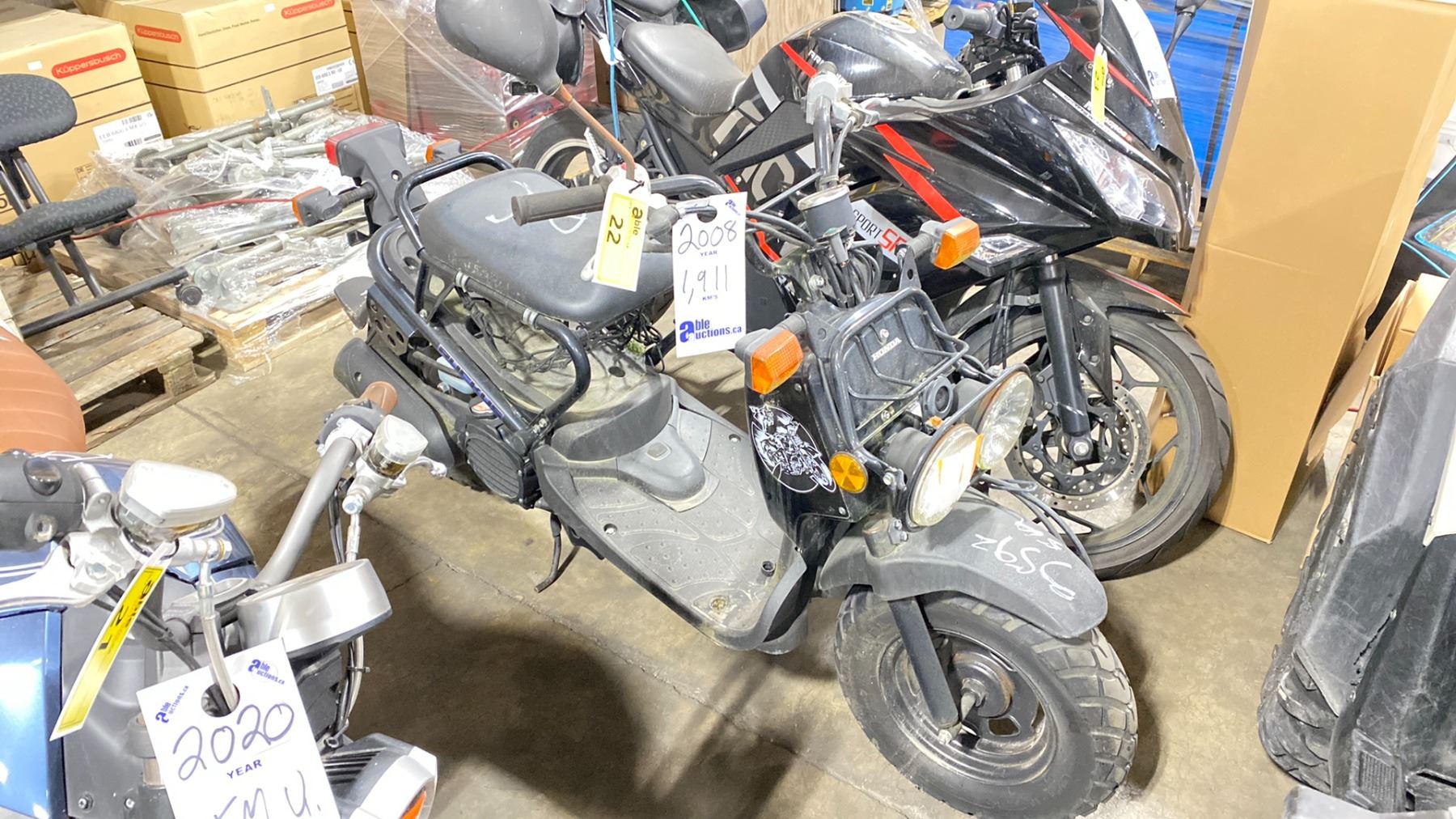 2008 HONDA GGA-720 LIMITED, SPEED MOTOR CYCLE, BLACK, VIN JH2AF58228K500058 1,911 KMS, GAS (G), 49CC, AUTOMATIC, HAS REGISTRATION, MUST TOW, NO KEYS, MINOR SCRATCHES AND DENTS, 1 SEATER, MUST TOW NOT SUITABLE FOR TRANSPORTATION, 1X ICBC REPAIRED DEC $1,554.72, 1X ICBC EST $1741.29