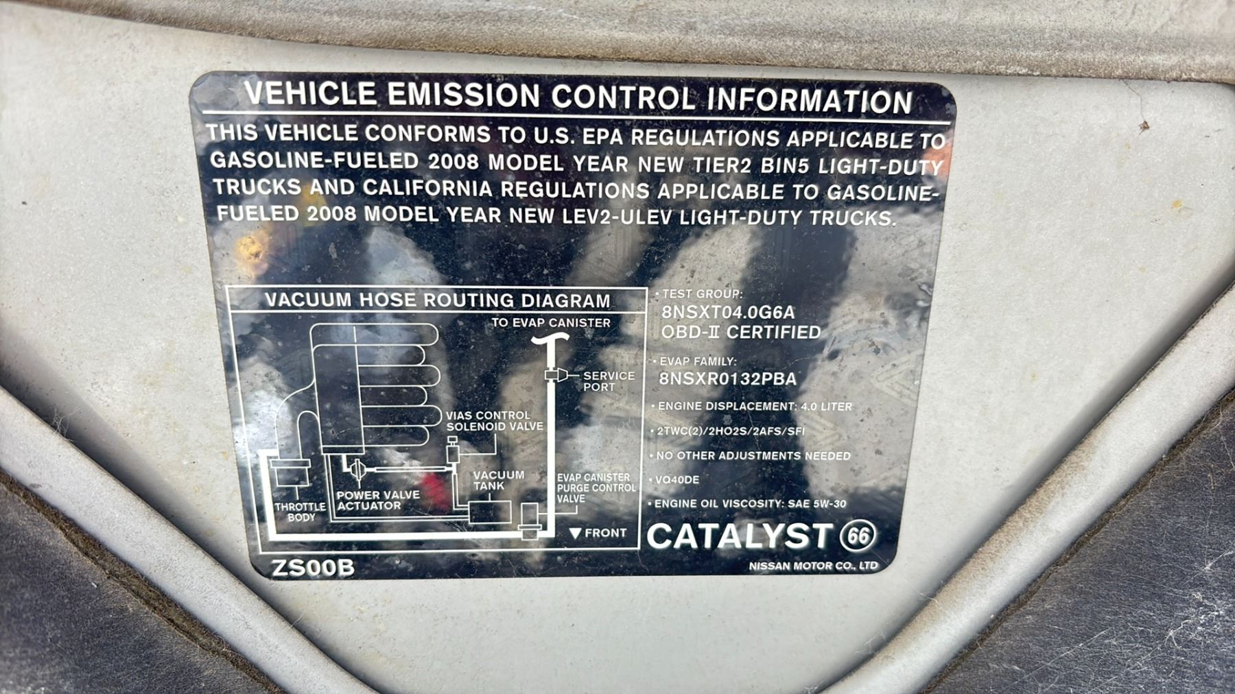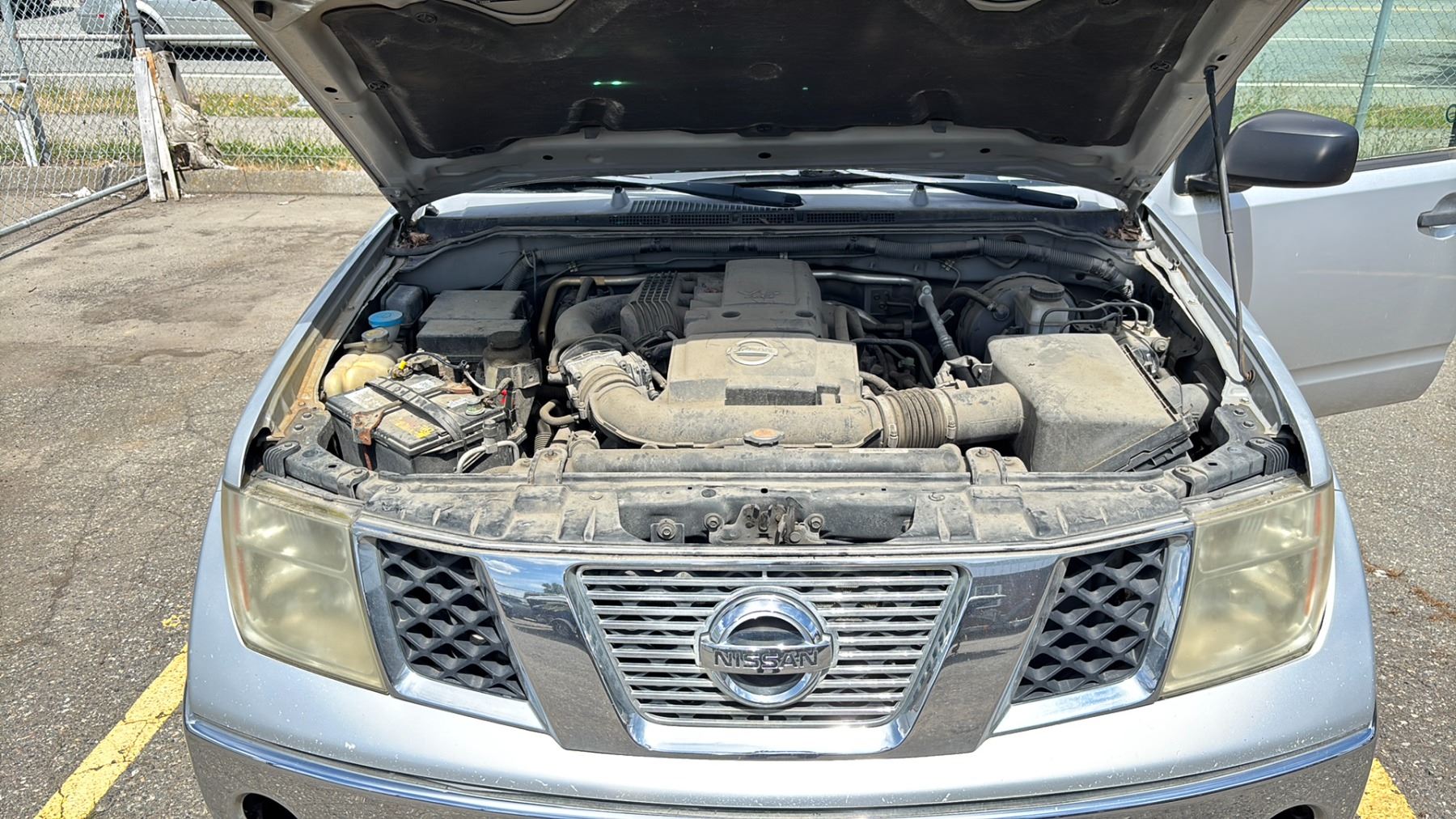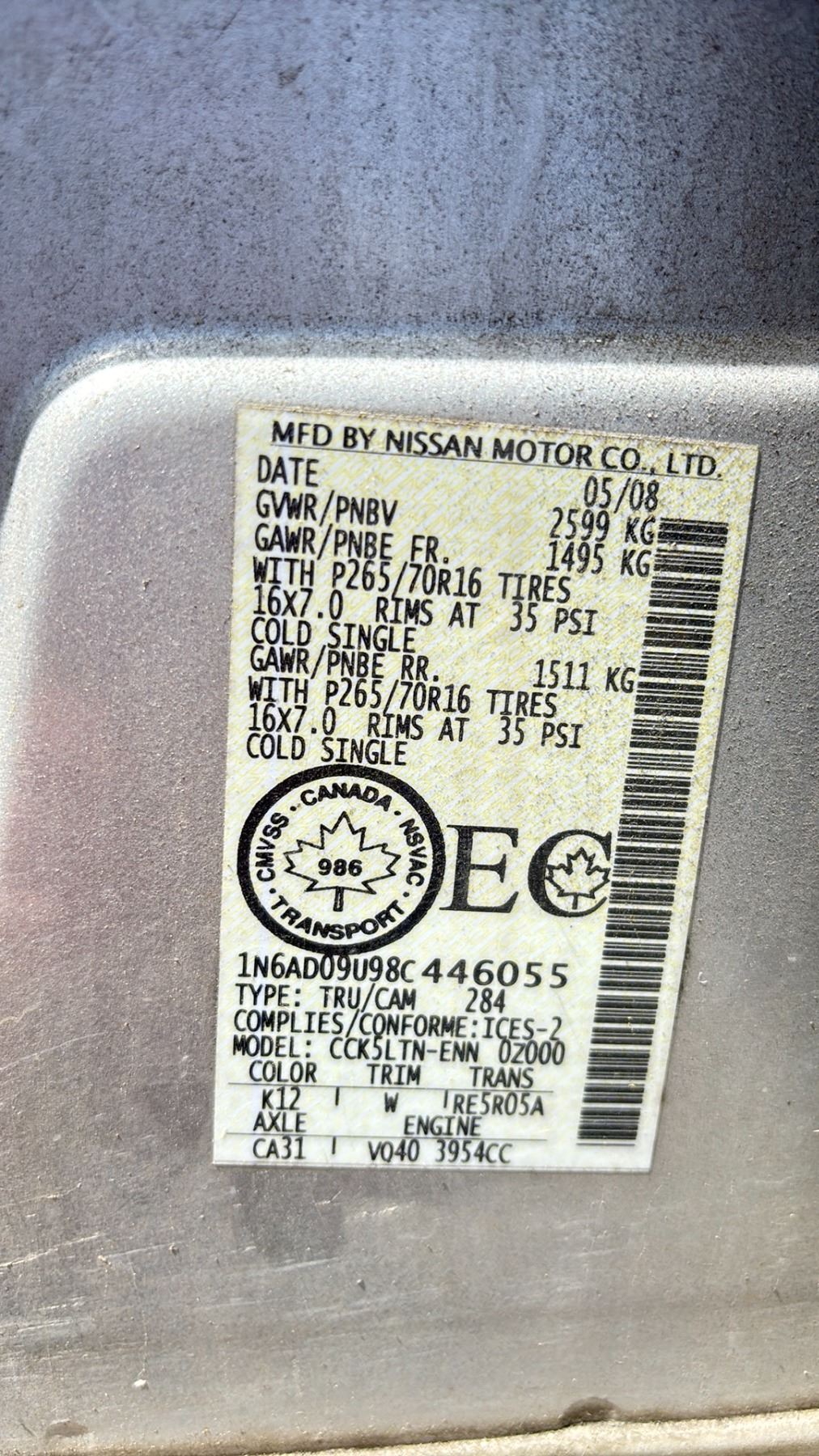 2008 NISSAN FRONTIER SE, 4 DOOR PICK UP, SILVER, VIN 1N6AD09U98C446055 136,971 KMS, GAS (G), 4.0L, AUTOMATIC, HAS REGISTRATION, HAS KEYS, NEEDS JUMP, FEATURES: COMPACT DISC, CRUISE CONTROL, POWER LOCKS, AIR COND, LEATHER TRIM, TONNEAU COVER, DOG HAIR INSIDE, PAINT CHIPS, RUST ON FRONT BUMPER & HOOD, LOOSE BATTERY CONNECT, 1 X ICBC $3196.04, 1 X ICBC GLASS $669.07