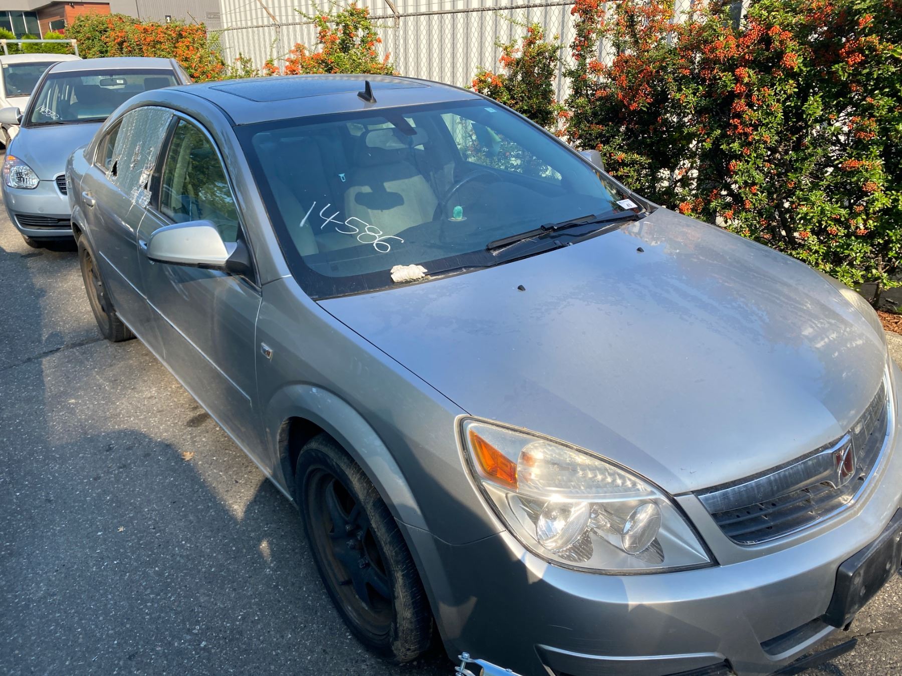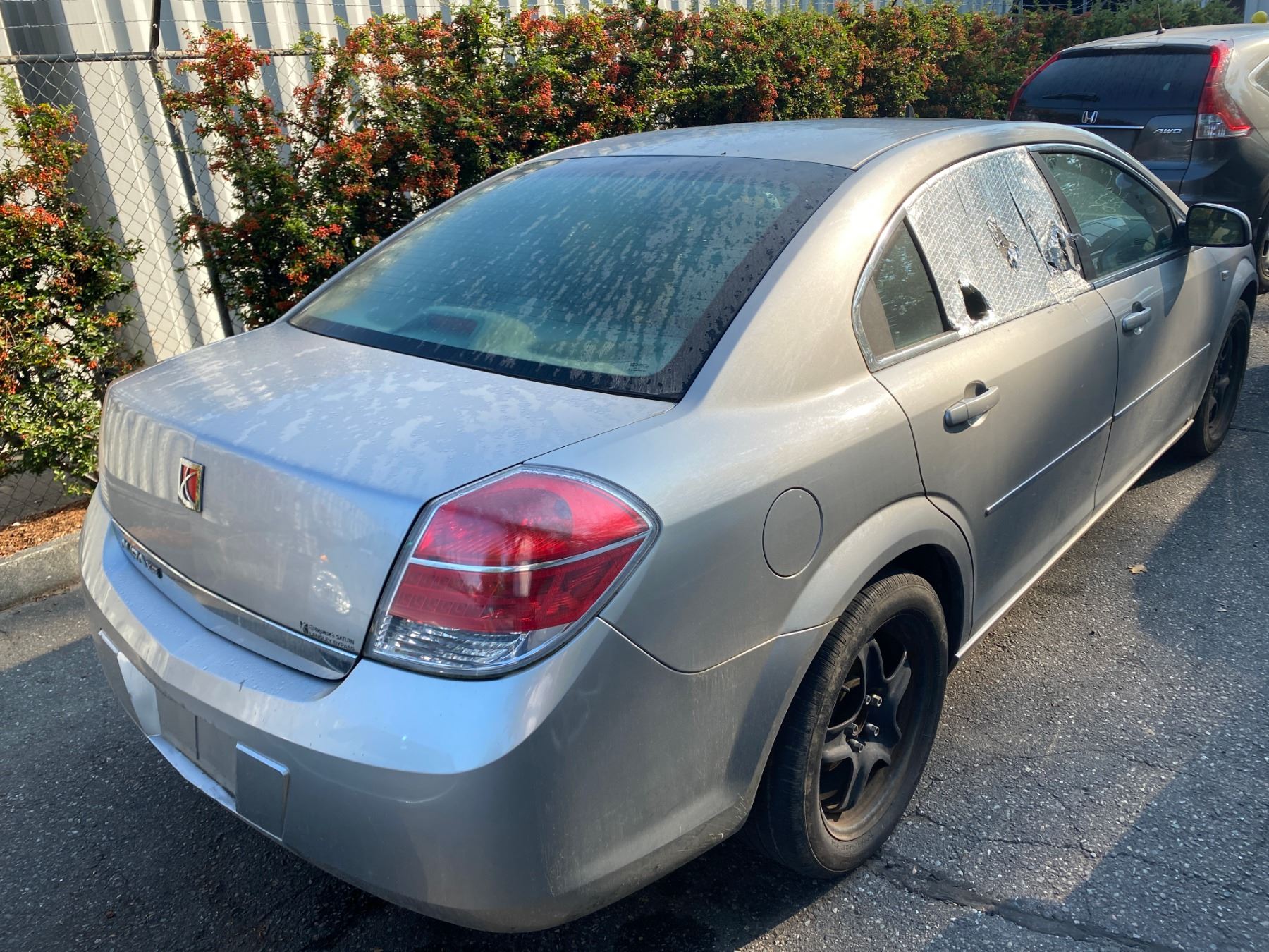 2008 SATURN AURA 4 DOOR GREY VIN#1G82557B78F172311 KMS UNKNOWN, GAS, AUTO RD, CD, PW, CC, PS, PL, TW, AC, SR BROKEN REAR WINDOW, CRACKED PASSENGER WINDOW. NO ICBC DECLARATIONS *NO KEY, MUST TOW, NOT ROADWORTHY*