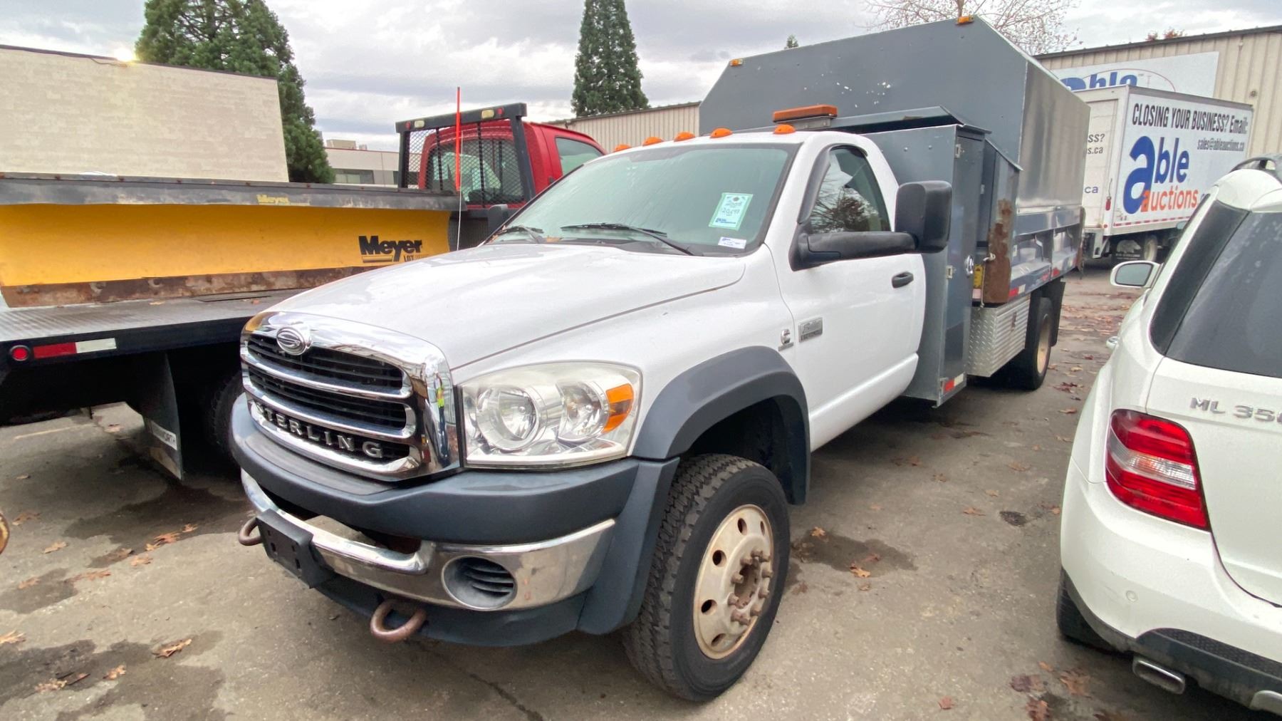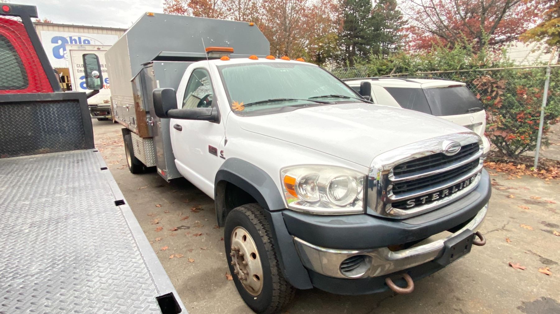 2008 STERLING BULLET, TURBO DIESEL, 2DR DUMP TRUCK, WHITE VIN 3F6WK66A18G351031 120,699KMS, DIESEL (D), CUMMINS, 6.7 TURBO DIESEL, AUTOMATIC, REGISTRATION: YES, KEYS: YES, FEATURES: RADIO, COMPACT DISC, POWER WINDOWS, CRUISE CONTROL, TRAILER HITCH, ALLOY WHEELS, POWER LOCKS, TILT WHEEL, 4 WHEEL DRIVE, AIR COND, RUST ISSUES, HISTORY: X-CITY 7,484KG GVW, BOX 10'L X 8'W X 6'H, SMALL DENT DRIVER DOOR & CAB CORNER, PAINT CHIP DRIVER FRONT FENDER, ROCK CHIPS ON HOOD, DENT ON FRONT BUMPER, ROCK CHIPS PASS FRONT FENDER, DENTS ONO PASS DOOR, ROCK CHIPS & PAINT PEELING ON CAB CORNER, RUST ON BOTTOM OF DUMP BOX, TAILGATE & FRONT OF BOX, 1X ICBC NO DETAILS