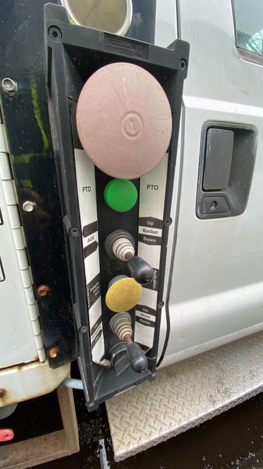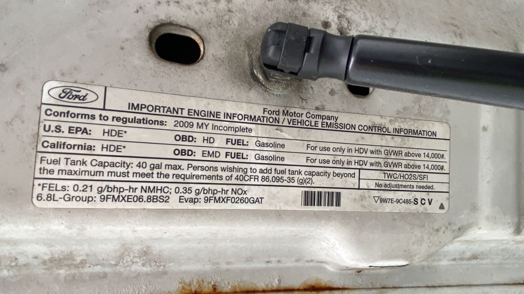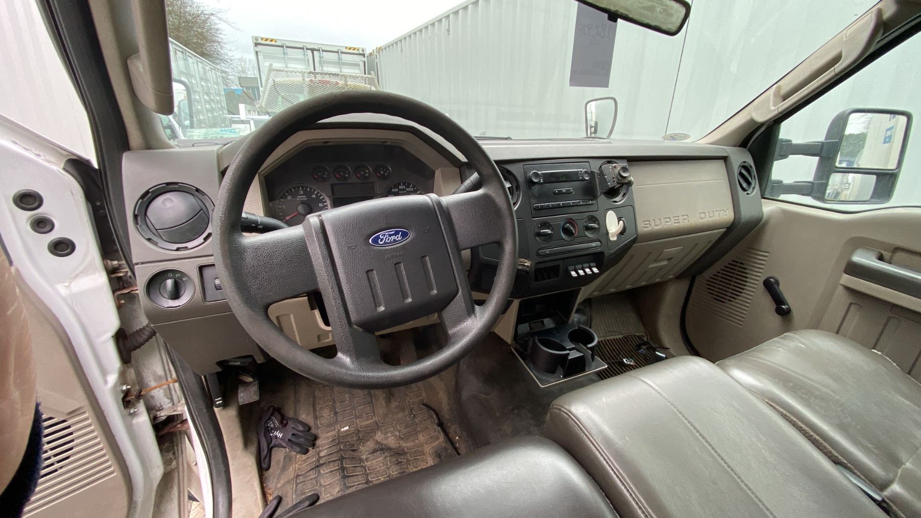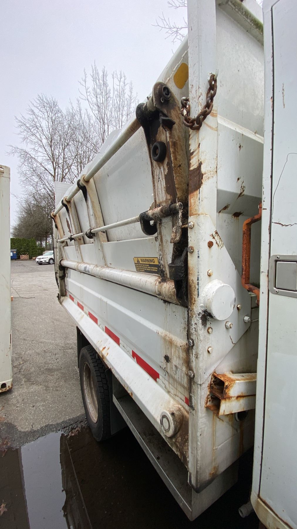 2009 FORD F-550 XL SUPERDUTY, 2DR PACKER PU, WHITE, VIN 1FDGF56Y99EB07809, 182,918 KMS, GAS (G), 6.8L TRITON V10, AUTOMATIC, HAS REGISTRATION, HAS KEYS, FEATURES: RADIO, AIR COND, RUST ISSUES, HISTORY: X-CITY, 1 ICBC DECLARATION NO DETAILS, SCRATCHES AND DENTS ALL OVER, AFTERMARKET MIRRORS ATTACHED TO FRONT FENDERS, GARBAGE COMPACTER UNIT WITH HYDRAULIC CONTROLS AND SIDE ARM, DUAL LOCKING BOXES BEHIND CAB AND ROOF MOUNTED SAFETY LIGHT