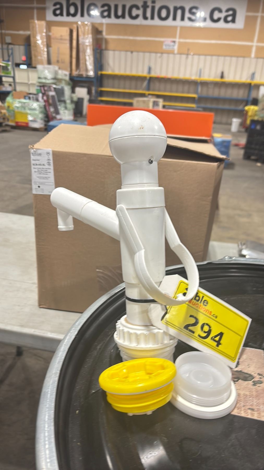 200L OF SHYIELD CONCENTRATE ONE STEP DISINFECTANT CLEANER WITH A HAND PUMP ON A ULINE 24  DIAMETER