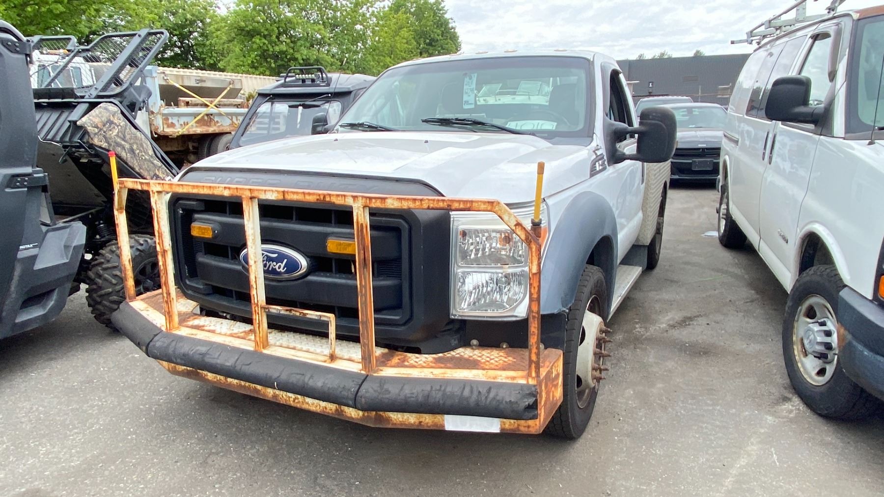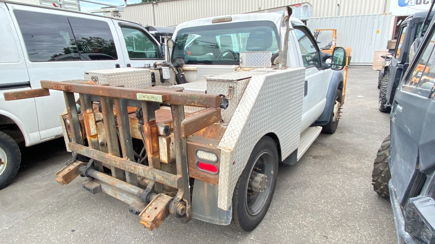 2011 FORD F-450 SUPERDUTY, 2DR GARBAGE CAN LIFTER PU, WHITE, VIN 1FDUF4GY9BEA99941 162,748 KMS, GAS (G), 6.8L, AUTOMATIC, HAS REGISTRATION, MUST TOW, HAS KEYS, FEATURES: RADIO, AIR COND, HISTORY: X-CITY, MINOR SCRATCHES & DENTS, RUST ON FRONT BUMPER, DENTS ON DRIVER DOOR, GARBAGE CAN LIFTER ON REAR, FORKS CUT, AIRBAGS ON FRONT & REAR, *NON-REPAIRABLE VEHICLE* INCAPABLE FOR OPERATION OR USE ON PUBLIC ROADS, PARTS ONLY, MUST TOW, NOT SUITABLE FOR TRANSPORTATION*, 1X ICBC NO DETAILS