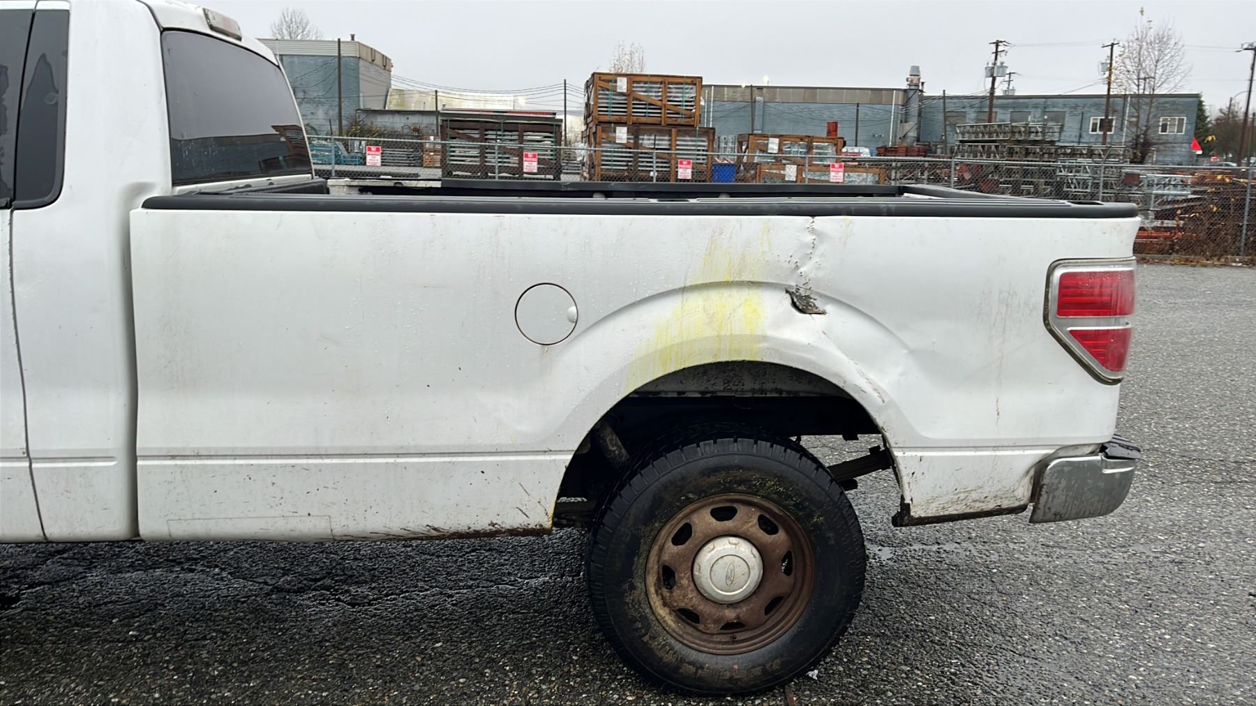2011 FORD F150, 2DR PICKUP TRUCK, WHITE, VIN 1FTPF1CF7BKD54480, 313,502 KMS, GAS (G), 5.0L, AUTOMATIC, HAS REGISTRATION, HAS KEYS, FEATURES: RADIO, CRUISE CONTROL, TRAILER HITCH, ALLOY WHEELS, TILT WHEEL, 4 WHEEL DRIVE, AIR COND, LEATHER TRIM, ICBC REPAIRED DECS TTL $1,605.86, DRIVER'S SEAT TEAR, TIRE PRESSURE SENSOR FAULT, BODY DENTS AND SCRATCHES 2" HITCH