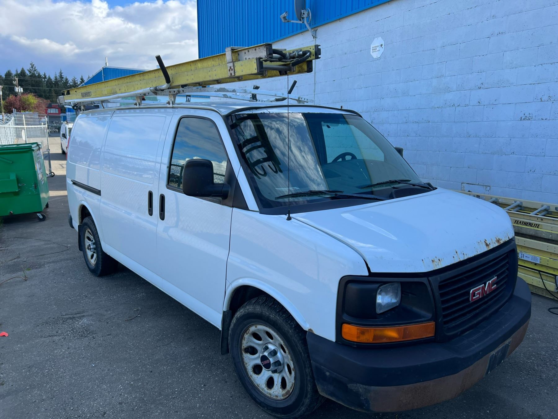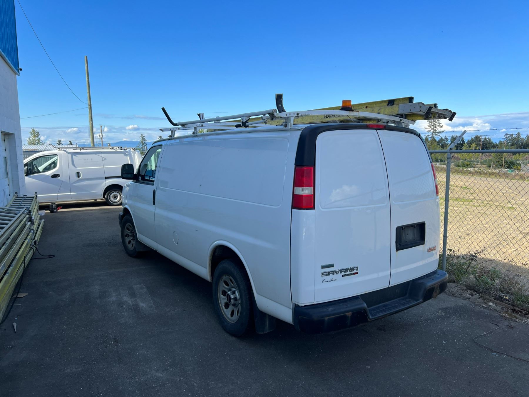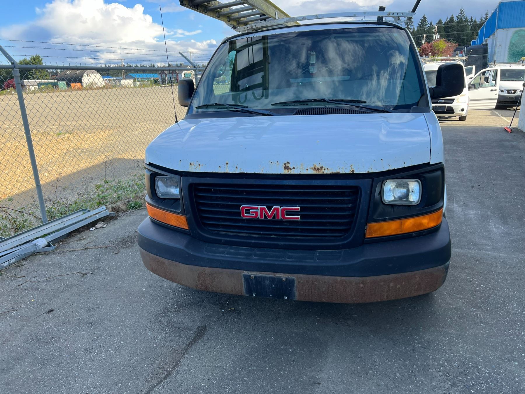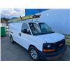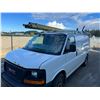 2011 GMC SAVANA, 4DR CARGO VAN, WHITE, VIN 1GTS8AF41B1132635, 308,209KMS, GAS, AUTO, RD/CC/AC/RI/AWD, ROOF RACK (LADDER INCLUDED), CARGO BULKHEAD, CRACKED WINDSHIELD, RUST ON HOOD AND FRONT & REAR BUMPER, BRAKE SWITCH REQUIRES REPLACEMENT AXEL BOOT REQUIRES REPLACEMENT, ENGINE LIGHT IS ON, NO ICBC DECLARATIONS, NO LIENS DEAD BATTERY BUT STARTS AND RUNS WITH A JUMP. HAS 110 INVERTER, HAS STABILITRAK *HAS REGISTRATION*