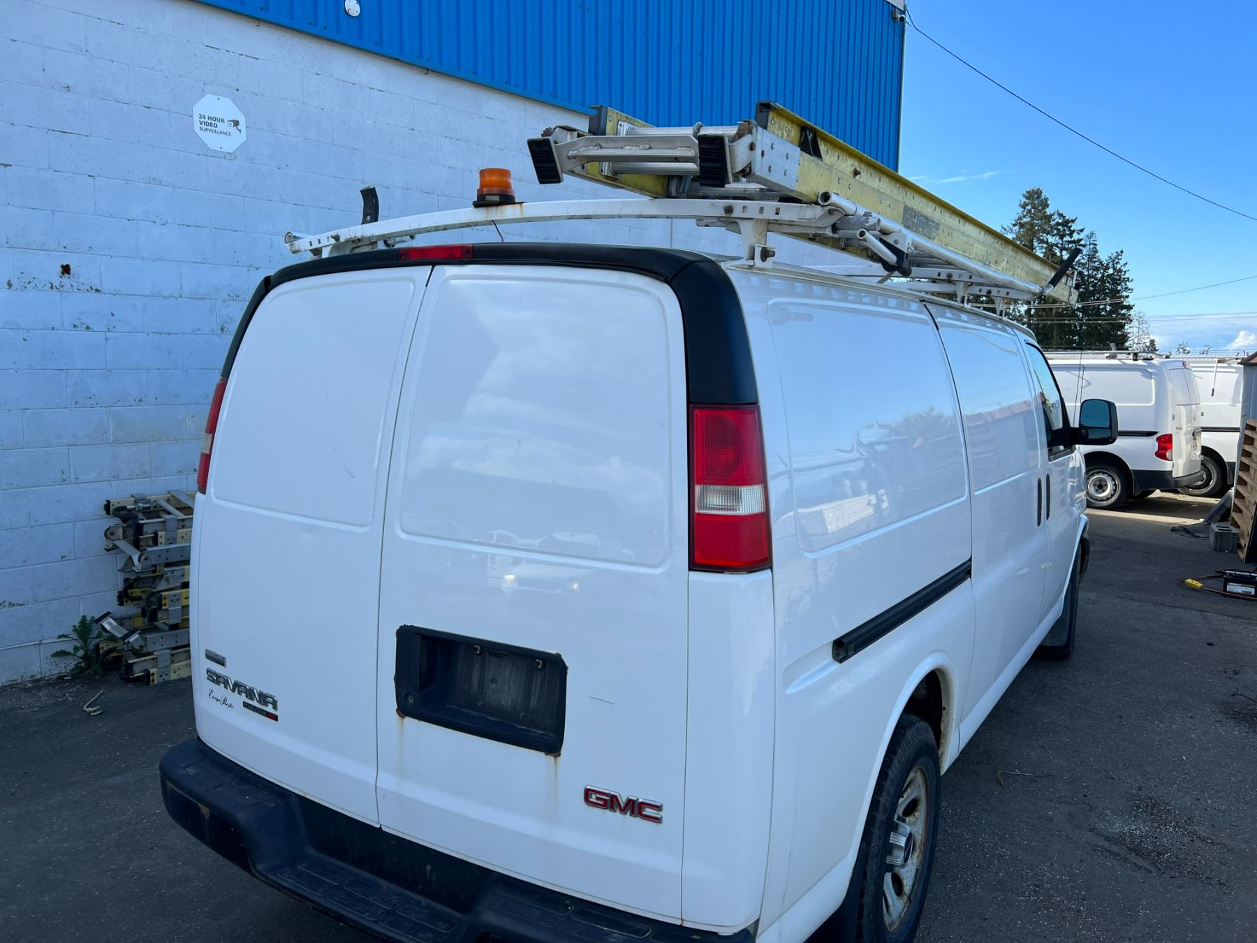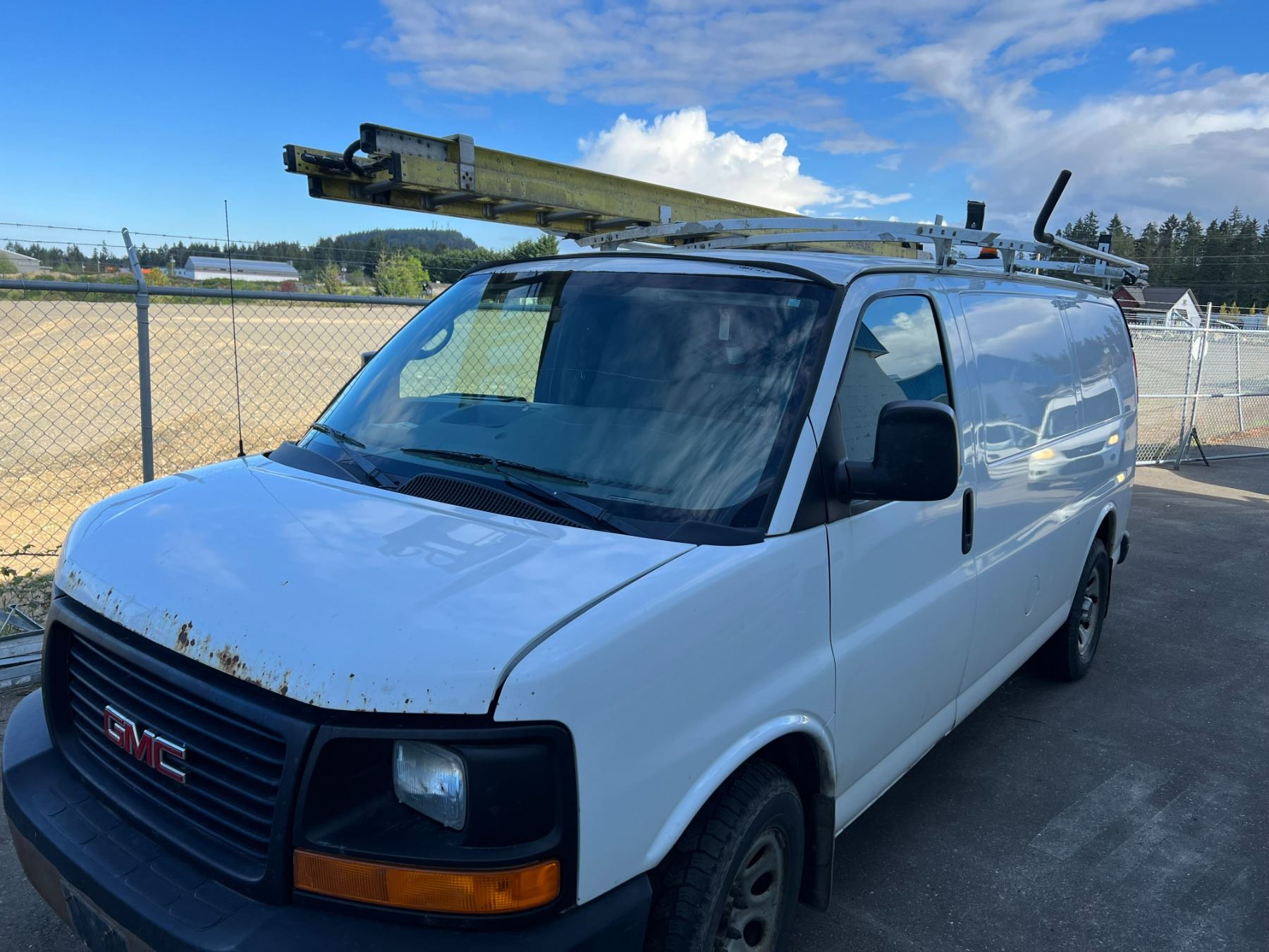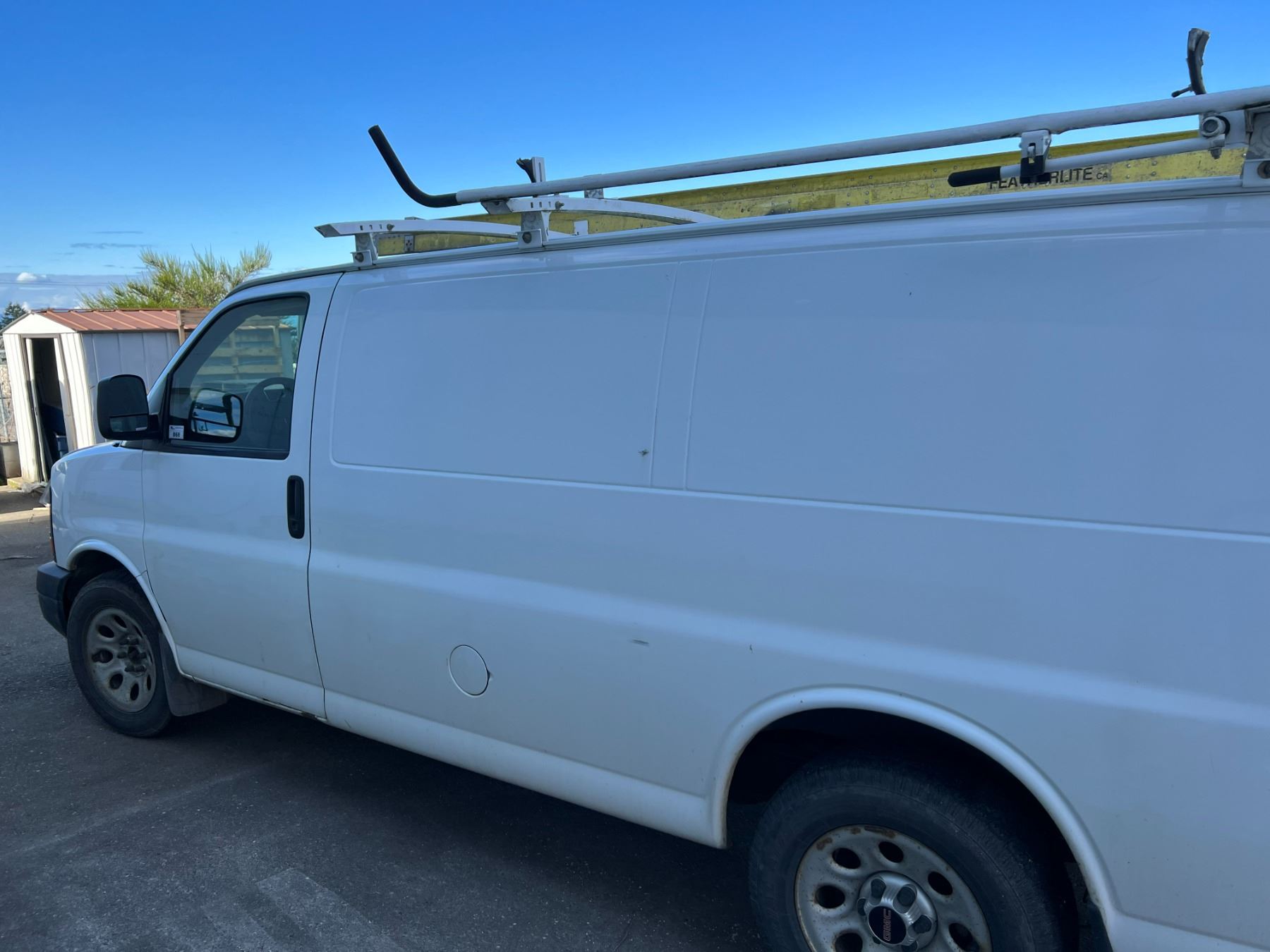 2011 GMC SAVANA, 4DR CARGO VAN, WHITE, VIN 1GTS8AF41B1132635, 308,209KMS, GAS, AUTO, RD/CC/AC/RI/AWD, ROOF RACK (LADDER INCLUDED), CARGO BULKHEAD, CRACKED WINDSHIELD, RUST ON HOOD AND FRONT & REAR BUMPER, BRAKE SWITCH REQUIRES REPLACEMENT AXEL BOOT REQUIRES REPLACEMENT, ENGINE LIGHT IS ON, NO ICBC DECLARATIONS, NO LIENS DEAD BATTERY BUT STARTS AND RUNS WITH A JUMP. HAS 110 INVERTER, HAS STABILITRAK *HAS REGISTRATION*
