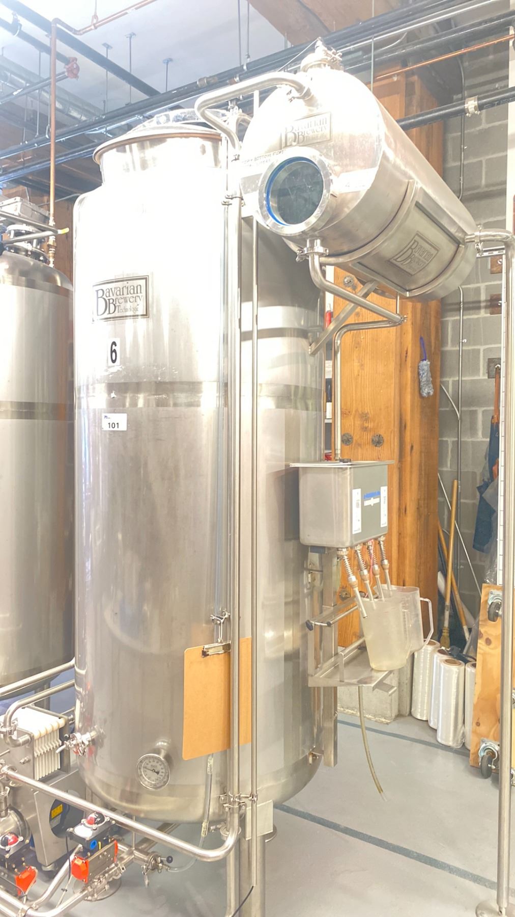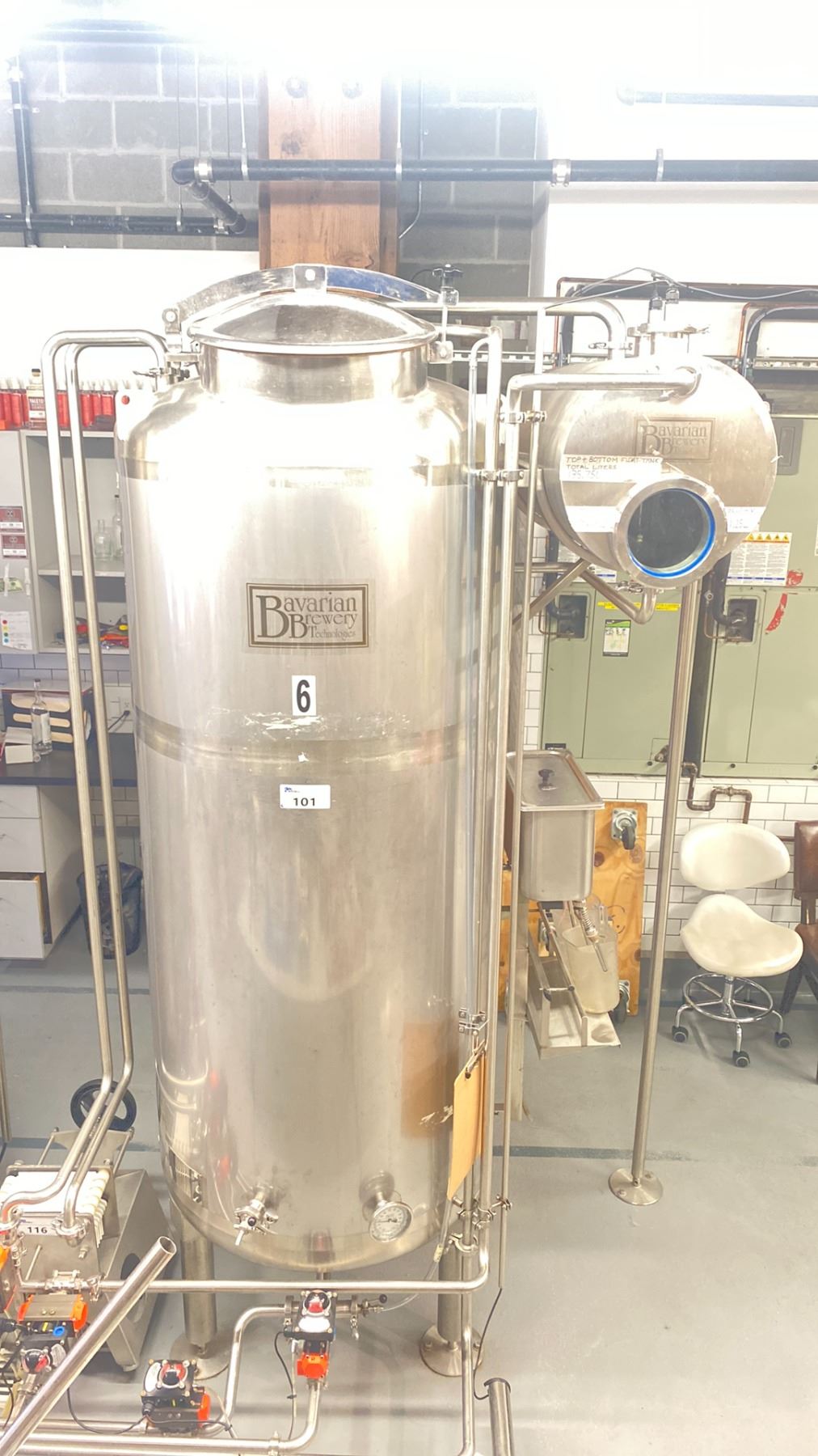 2012 BAVARIAN BREWERY TECHNOLOGIES FT10 STAINLESS STEEL COMMERCIAL 13HL TOP ACCESS BREWERY TANK WITH 2 APL-210N LIMITER SWITCHES, TEMPERATURE GAUGE, TOP / BOTTOM FLOAT TANK & A-HOLSTEIN SMALL BATCH 4 JUG TESTER STATION