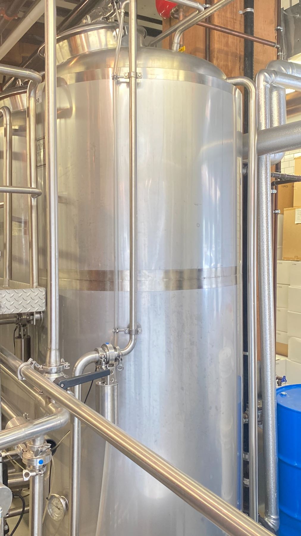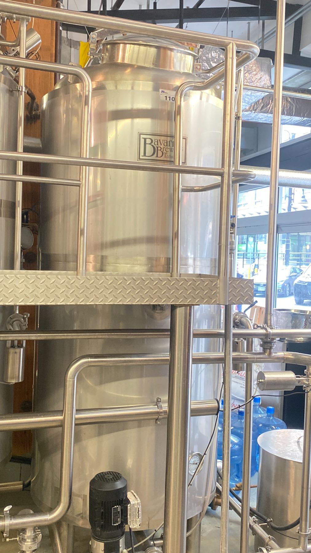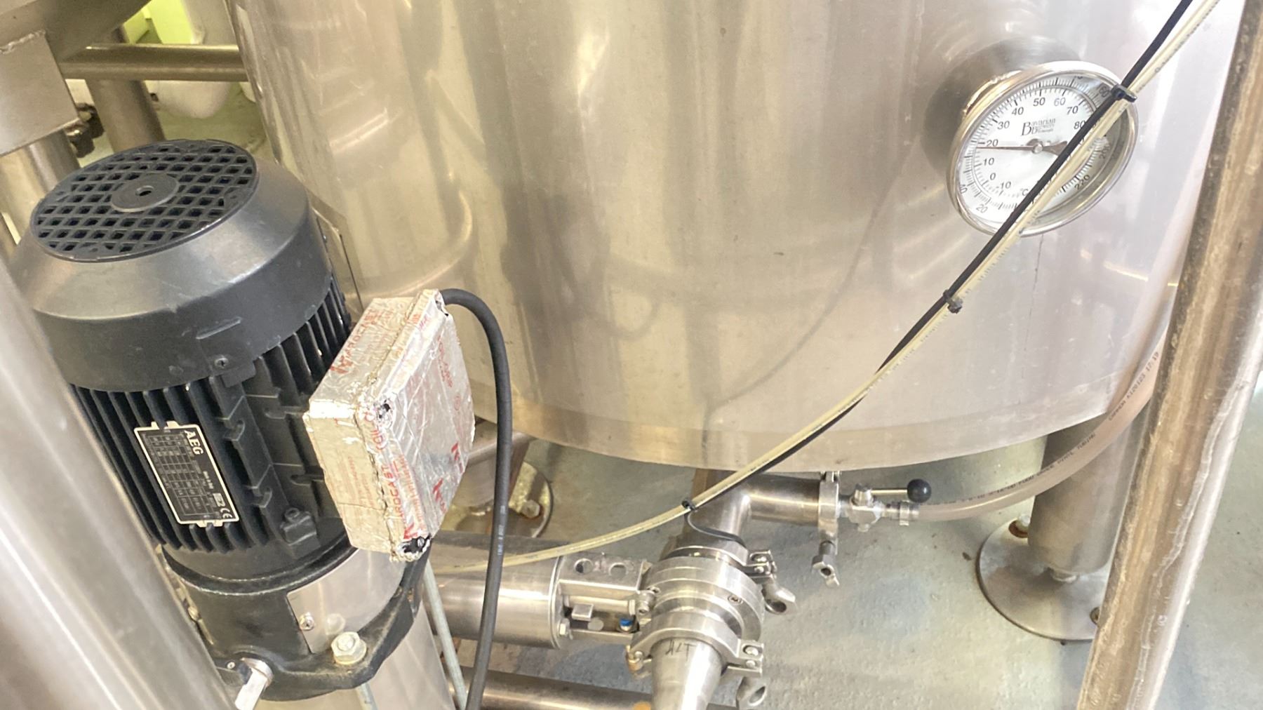2012 BAVARIAN BREWERY TECHNOLOGIES HLT10 STAINLESS STEEL COMMERCIAL 13HL TOP OPEN BREWERY TANK, AEG COMMERCIAL ELECTRIC PUMP SYSTEM, 2 CANASTER FLOW VALVES & TEMPERATURE GAUGE