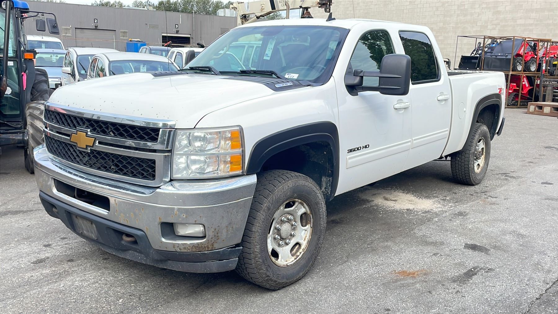 2012 CHEVROLET SILVERADO 3500 HD LTZ Z71, 4DR CREW CAB PU, WHITE, VIN 1GC4K1E80CF232650 501,758 KMS, DIESEL (D), 6.6L, DURAMAX, TURBO DIESEL V8, AUTOMATIC, HAS REGISTRATION, HAS KEYS, FEATURES: RADIO, COMPACT DISC, POWER WINDOWS, NAV BACKUP CAMERA, DIGITAL VIDEO, CRUISE CONTROL, POWER SEATS, TRAILER HITCH, ALLOY WHEELS, POWER LOCKS, TILT WHEEL, 4 WHEEL DRIVE, AIR COND, LEATHER TRIM, SUNROOF, RUST ISSUES, HEATED SEAT, DRIVER SEAT LEATHER HAS SLIGHT RIP, MINOR SCRATCHES & DENTS, RUST ON FRONT BUMPER, ICBC REPAIRED DECS TTL $6297.38
