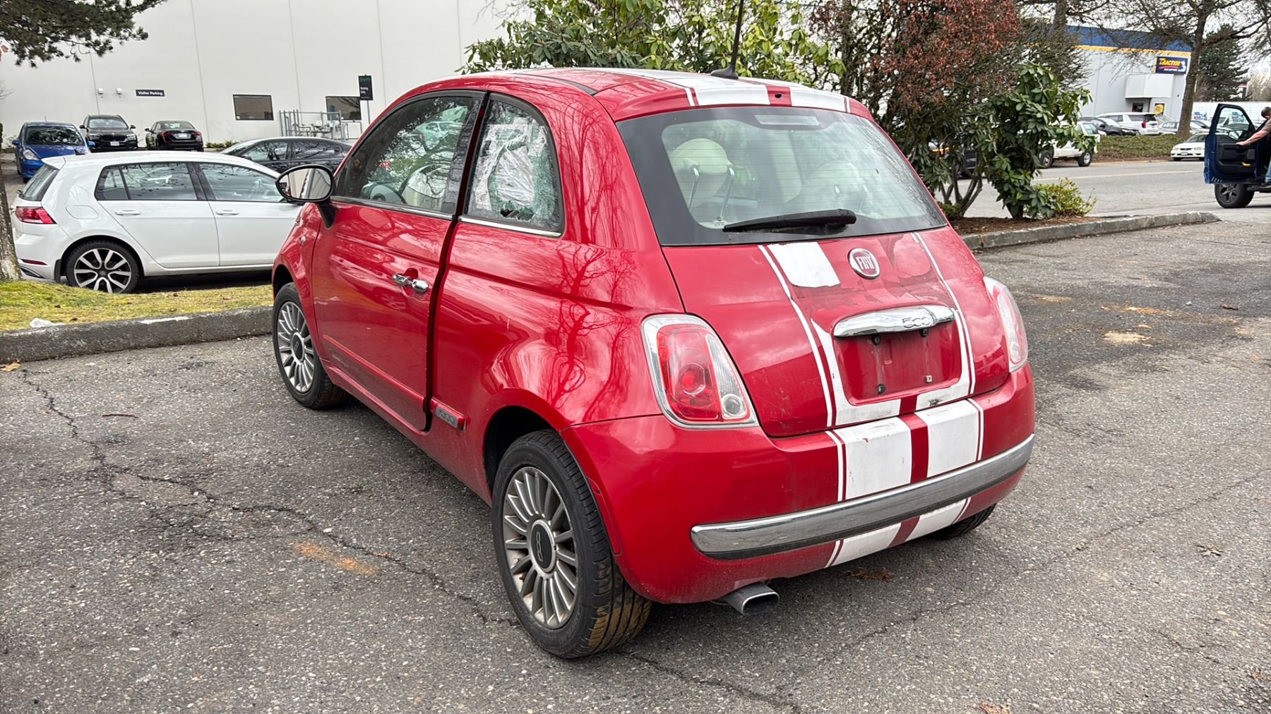 2012 FIAT 500, 2DR COUPE, RED, VIN 3C3CFFCR3CT123408 248,569 KMS, GAS (G), 1.4L, MANUAL, HAS REGISTRATION, MUST TOW, NO KEYS, MOLD VISIBLE, FEATURES: RADIO, COMPACT DISC, POWER WINDOWS, POWER LOCKS, TILT WHEEL, AIR COND, LEATHER TRIM, SUNROOF, ICBC REPAIRED DECS TTL $8,374.52, *NOT SUITABLE FOR TRANSPORTATION*, BROKEN REAR DRIVER SIDE WINDOW, FLAT REAR PASS TIRE, SCRATCHED, FRONT BUMPER, PAINT CHIPS ON REAR BUMPER, DOOR HANDLE EX DRIVER SIDE BROKEN