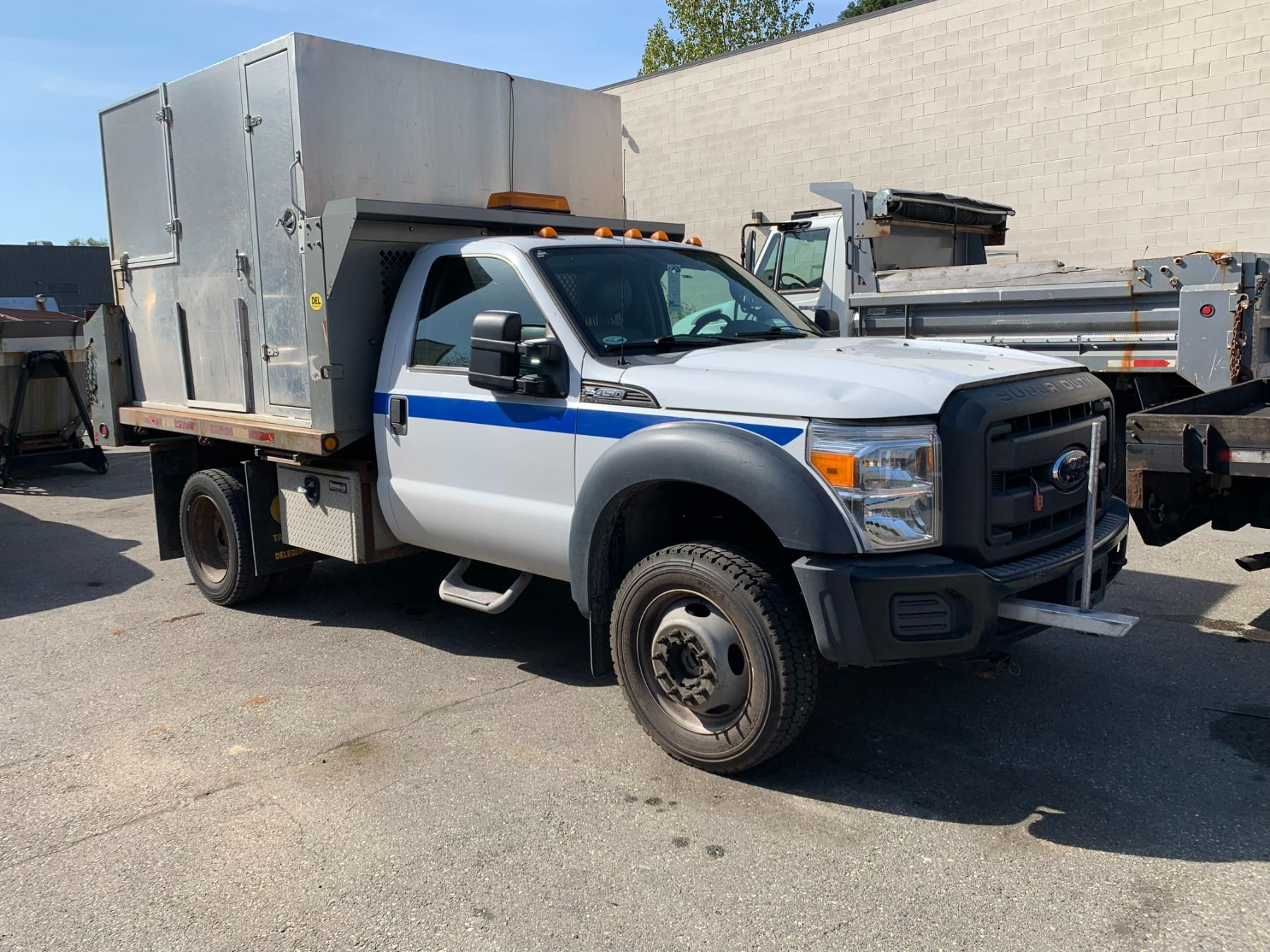 2012 FORD F-450 SUPER DUTY XL, 2 DR PICK UP DUMP TRUCK, WHITE, VIN 1FDUF4HY9CEC89318 96,766KMS, GAS, AUTO RD, CC, TH, TW, AC ALUMINIUM BOX, X-CITY, *HAS REGISTRATION*, NO ICBC DECLARATIONS