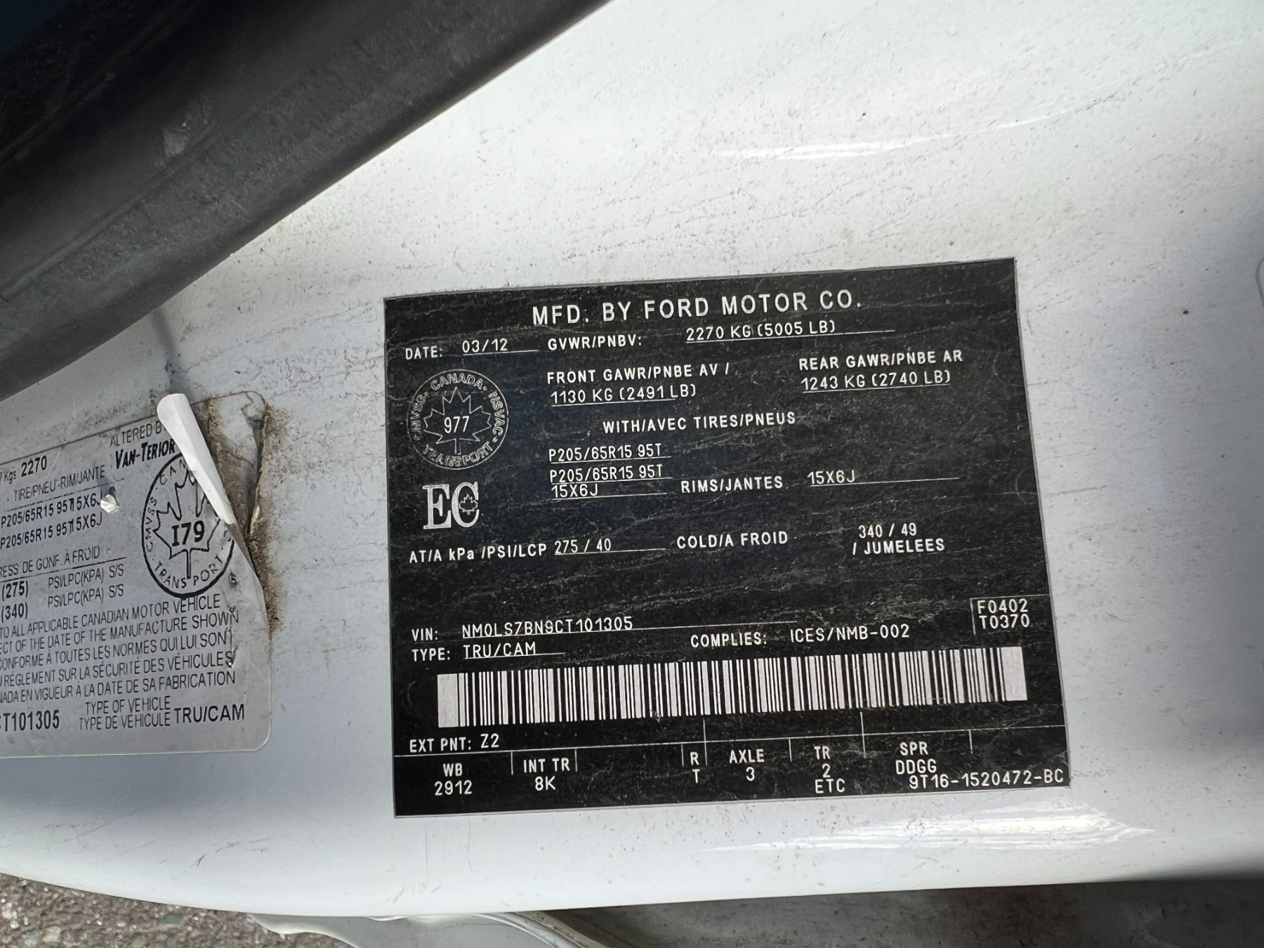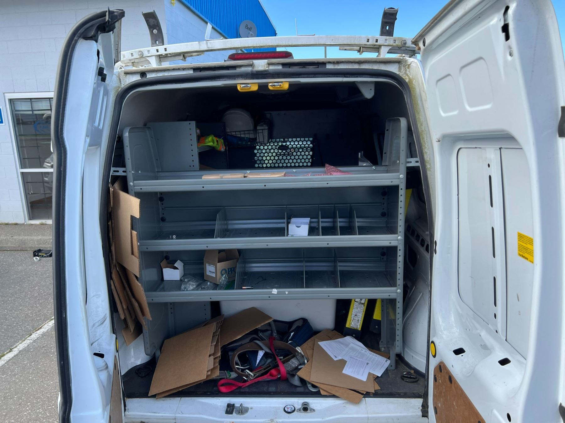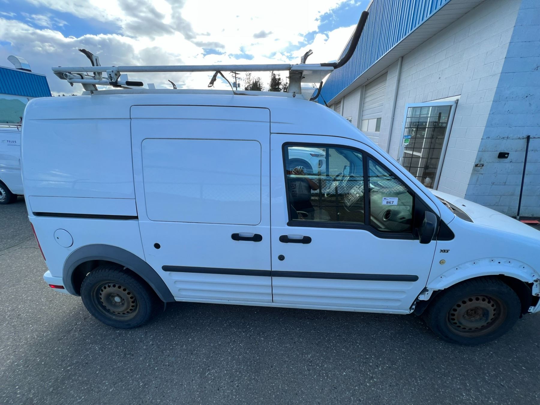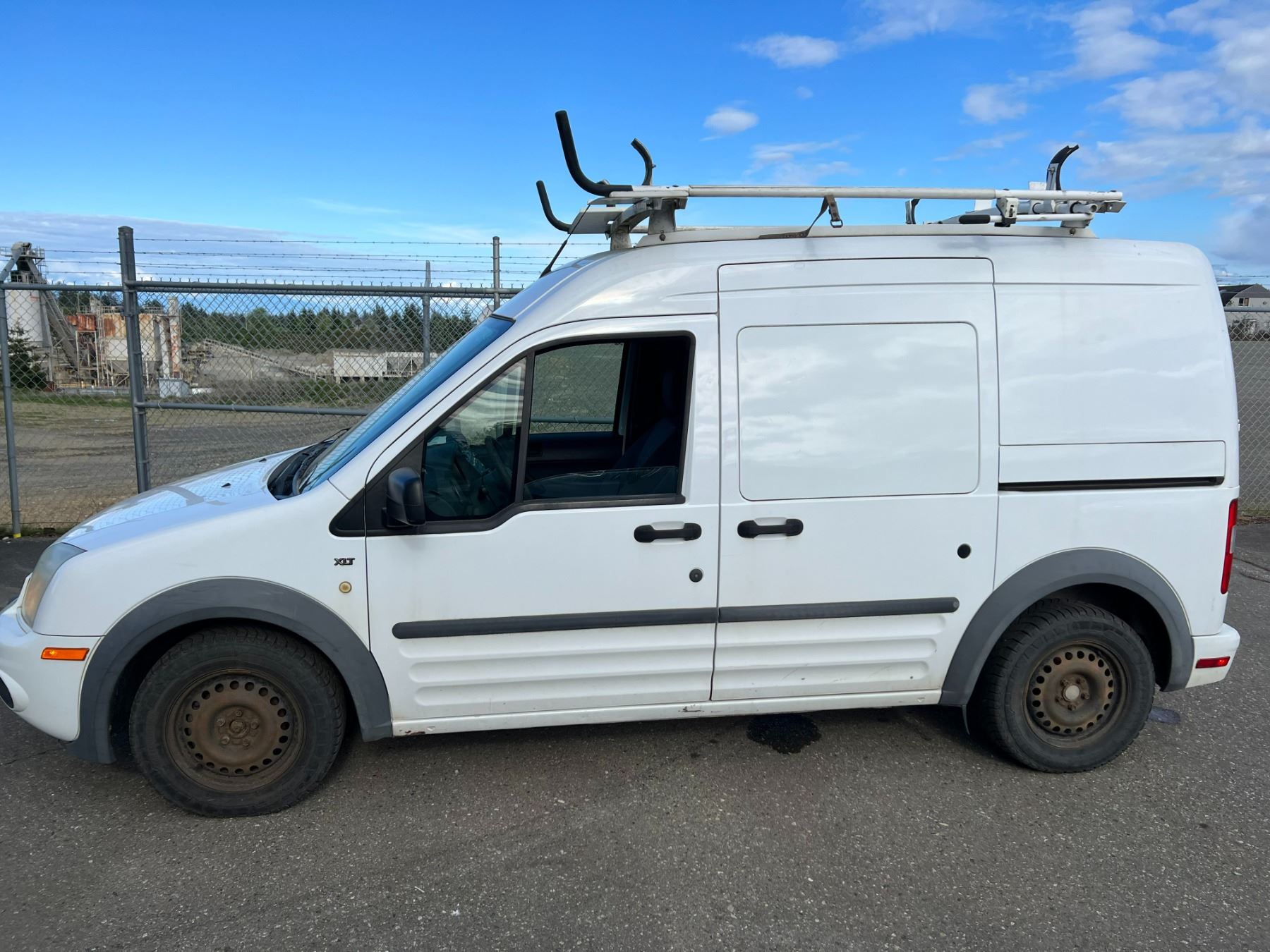 2012 FORD TRANSIT XLT CONNECT, 4DR VAN, WHITE, VIN NM0LS7BN9CT101305 169915KMS, GAS, AUTO, RD/CD/PW/CC/AC, ROOF RACK (LADDER INCLUDED), CARGO BULKHEAD (CONTENTS NOT INCLUDED), NO ICBC DECLARATIONS, NO LIENS, POWER INVERTER, NEW BATTERY, CLIPS REQUIRED FOR FENDER MOLDING TO INSTALL IT