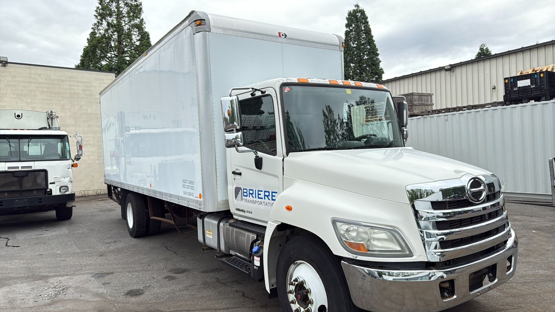 2012 HINO 338, 5TON 2DR CUBE TRUCK, WHITE, VIN 2AYNF8JT4C3S13101 148,773 KMS, DIESEL (D), 250HP, AUTOMATIC, HAS REGISTRATION, HAS KEYS, FEATURES: RADIO, COMPACT DISC, POWER WINDOWS, CRUISE CONTROL, TILT WHEEL, LEATHER TRIM, HYDRAULIC LIFT GATE, ROLL UP DOOR, CVIP EXP FEB 2026, SLIGHT DENT ON DRIVER SIDE DOOR & LOWER BOX, 1X ICBC NO DETAILS, ICBC REPAIRED DEC $728.33
