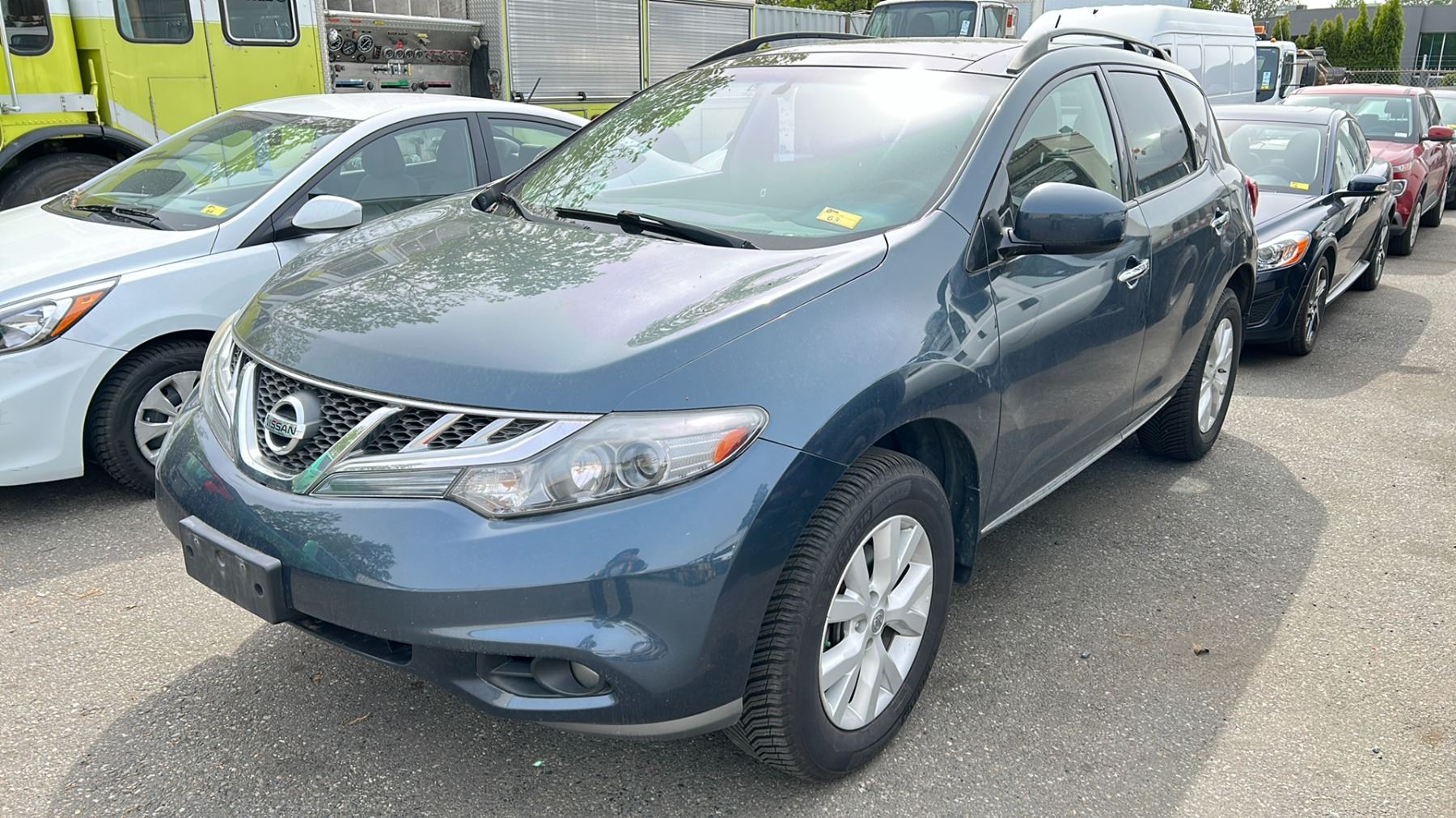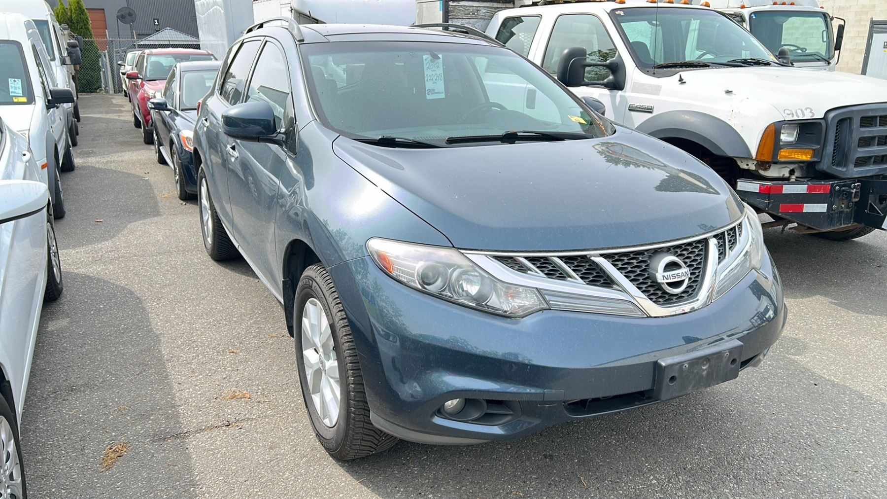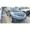 2012 NISSAN MURANO SV, 4DR SUV, BLUE, VIN JN8AZ1MW9CW214912 222,248 KMS, GAS (G), 3.5L, V6, AUTOMATIC, HAS REGISTRATION, HAS KEYS FEATURES: RADIO, COMPACT DISC, POWER WINDOWS, NAV BACKUP CAMERA, CRUISE CONTROL, POWER SEATS, QUAD SEATS, ALLOY WHEELS, POWER LOCKS, TILT WHEEL, SUNROOF, HEATED SEAT 5 PASS, MINOR SCRATCHES & DENTS, SCRATCHES ON REAR BUMPER, SCRATCHES ON PASS DOOR DOORS & SMALL DENTS ON PASS FRONT FENDER, 1 ICBC DECLARATION $782.06