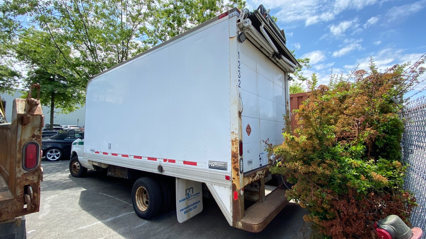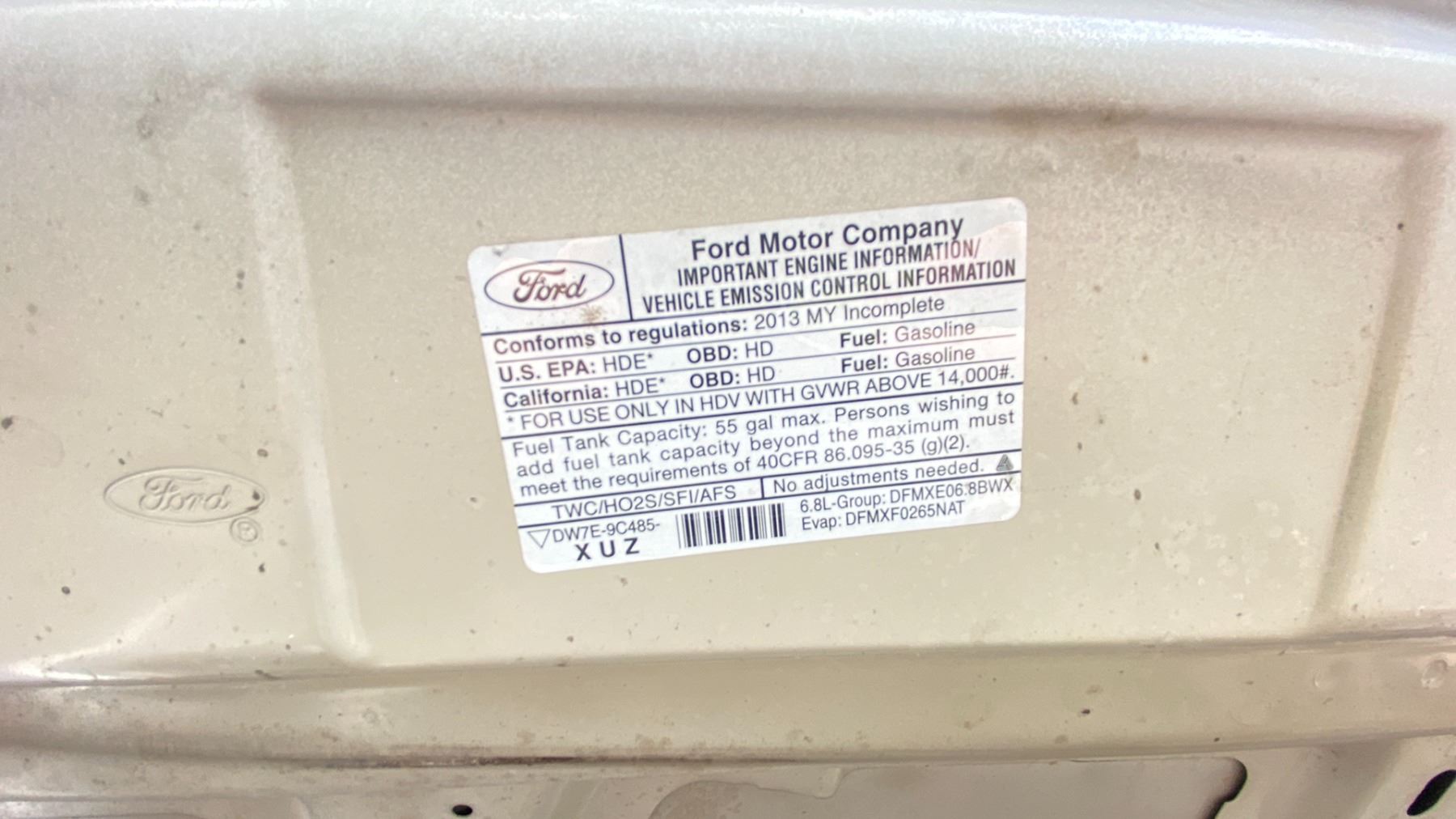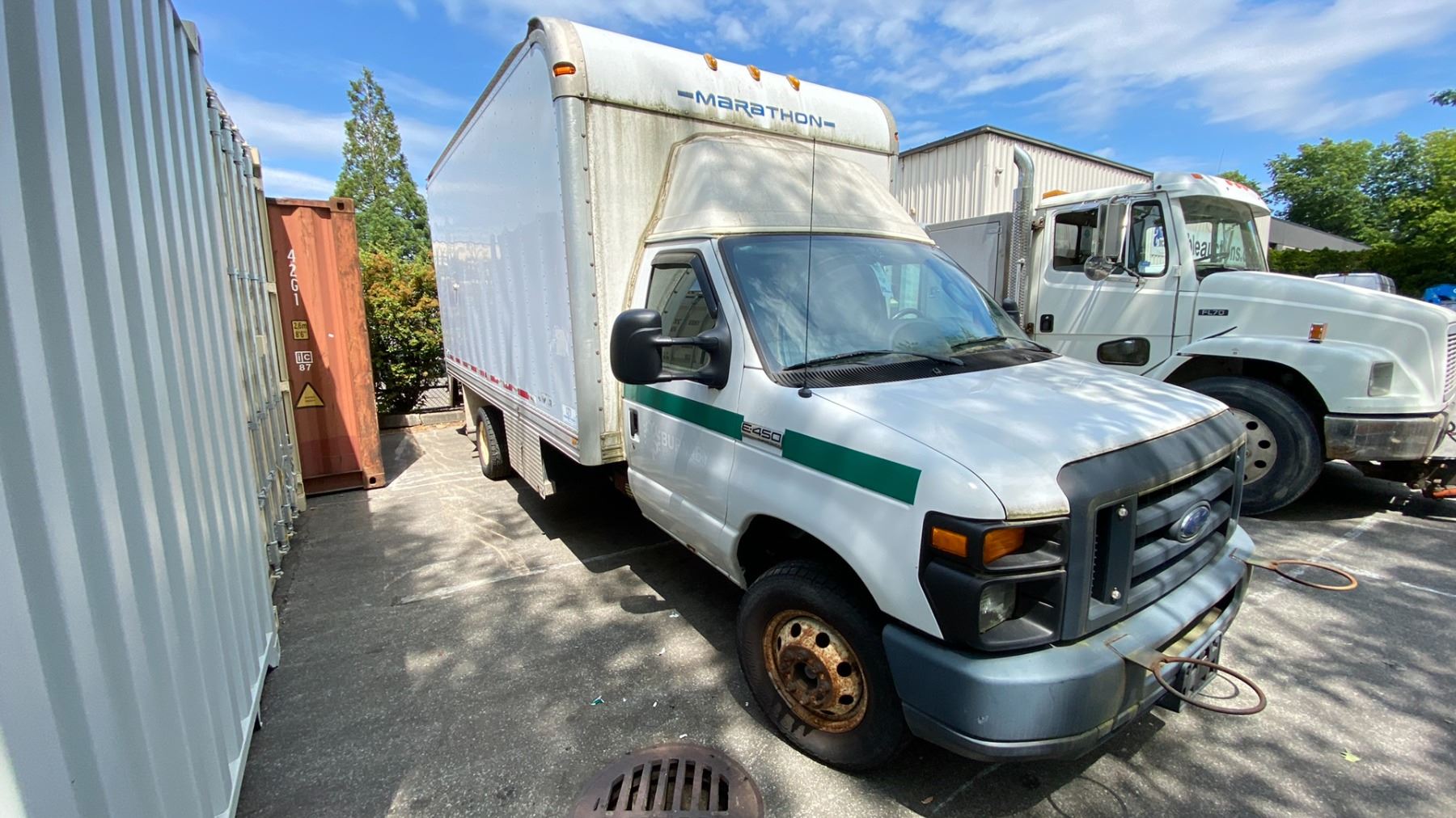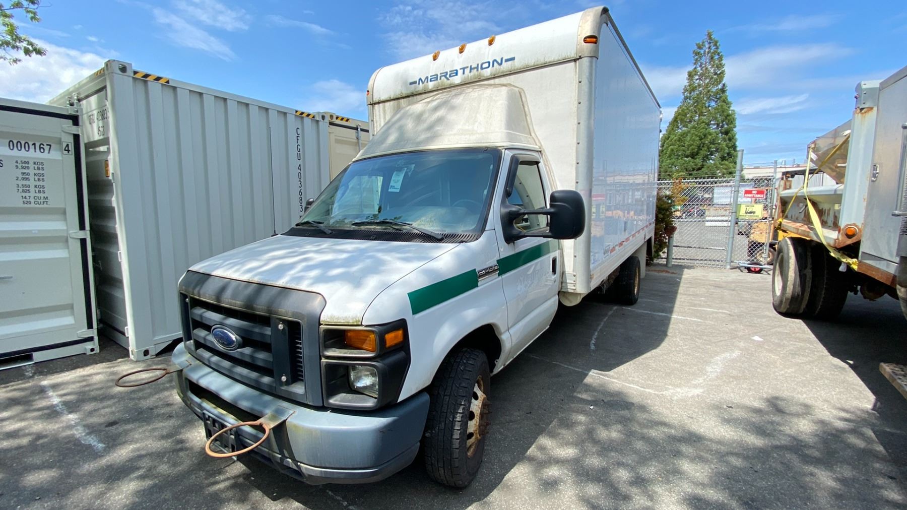 2013 FORD E-450 SUPERDUTY, 2DR CARGO TRUCK, WHITE, VIN 1FDXE4FS1DDA26374 85,700 KMS, GAS (G), 6.8L, MANUAL, HAS REGISTRATION, HAS KEYS, FEATURES: RADIO, HISTORY: X-CITY, NO ICBC DECLARATIONS, HEATER AC FAN NOT WORKING, FLASHING LIGHT SYSTEM ON BACK CONTROLS IN CAB, GENERATOR PASS SIDE, OPEN RECALL 15E05 | POWERTRAIN CONTROL MODULE REPROGRAMMING