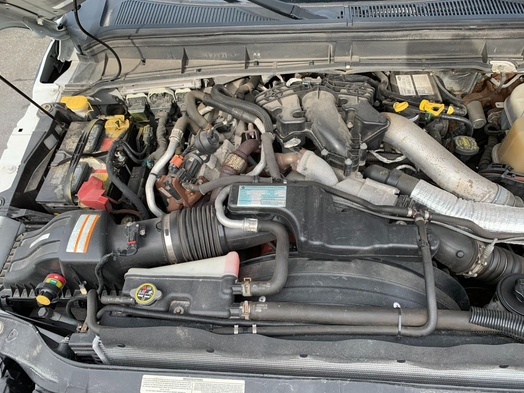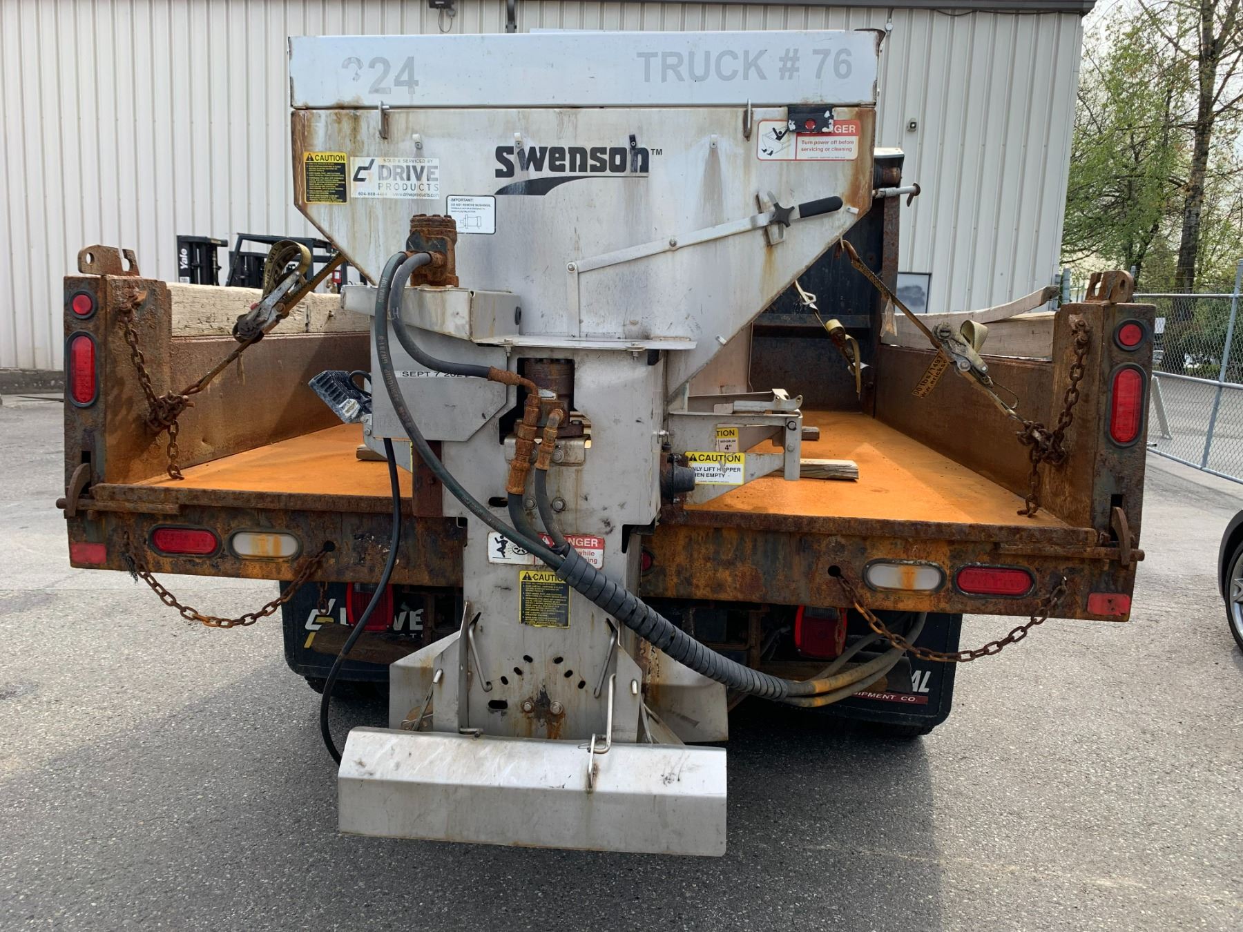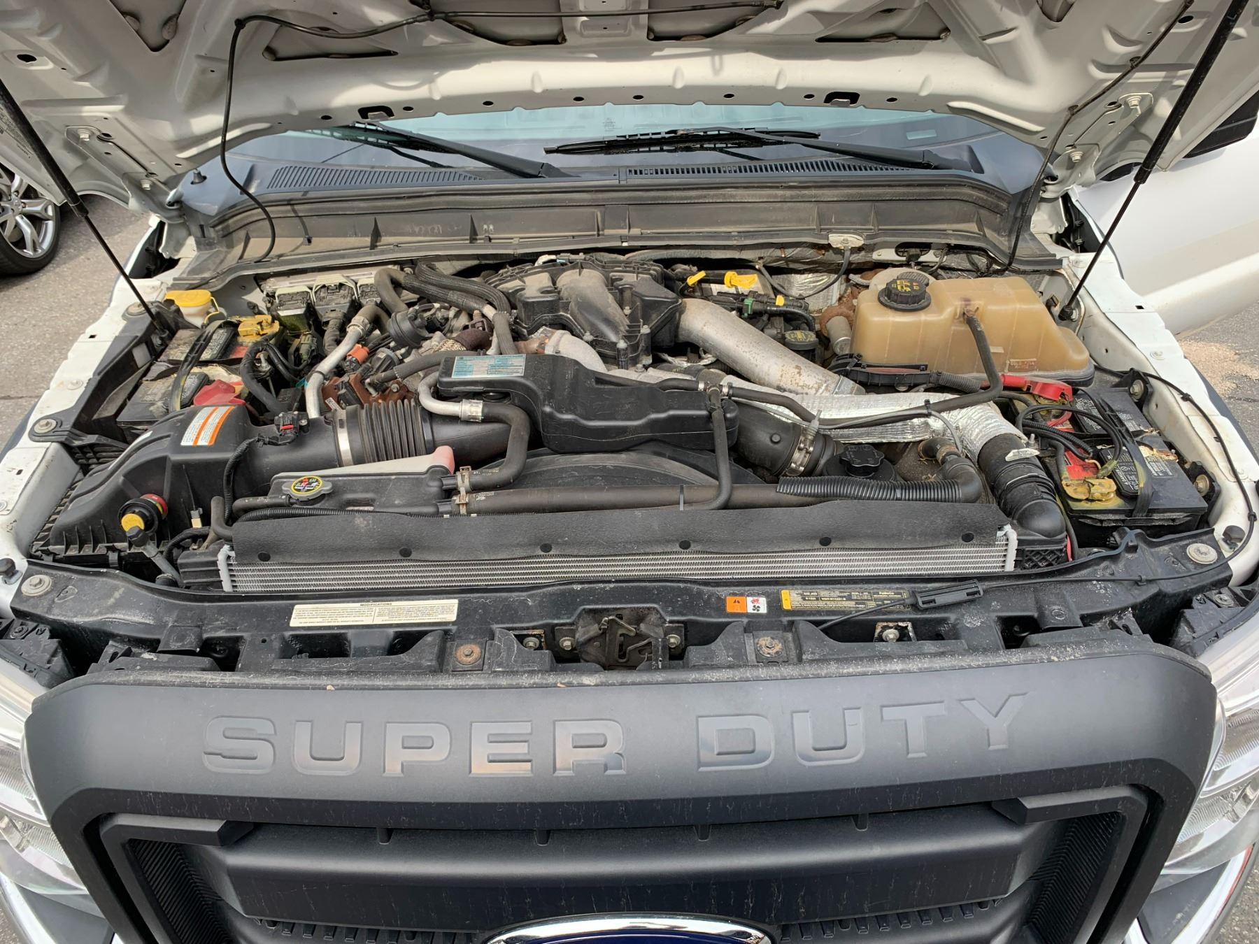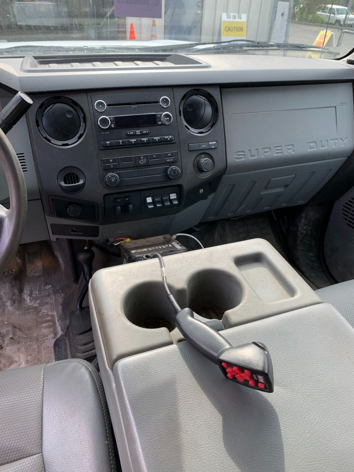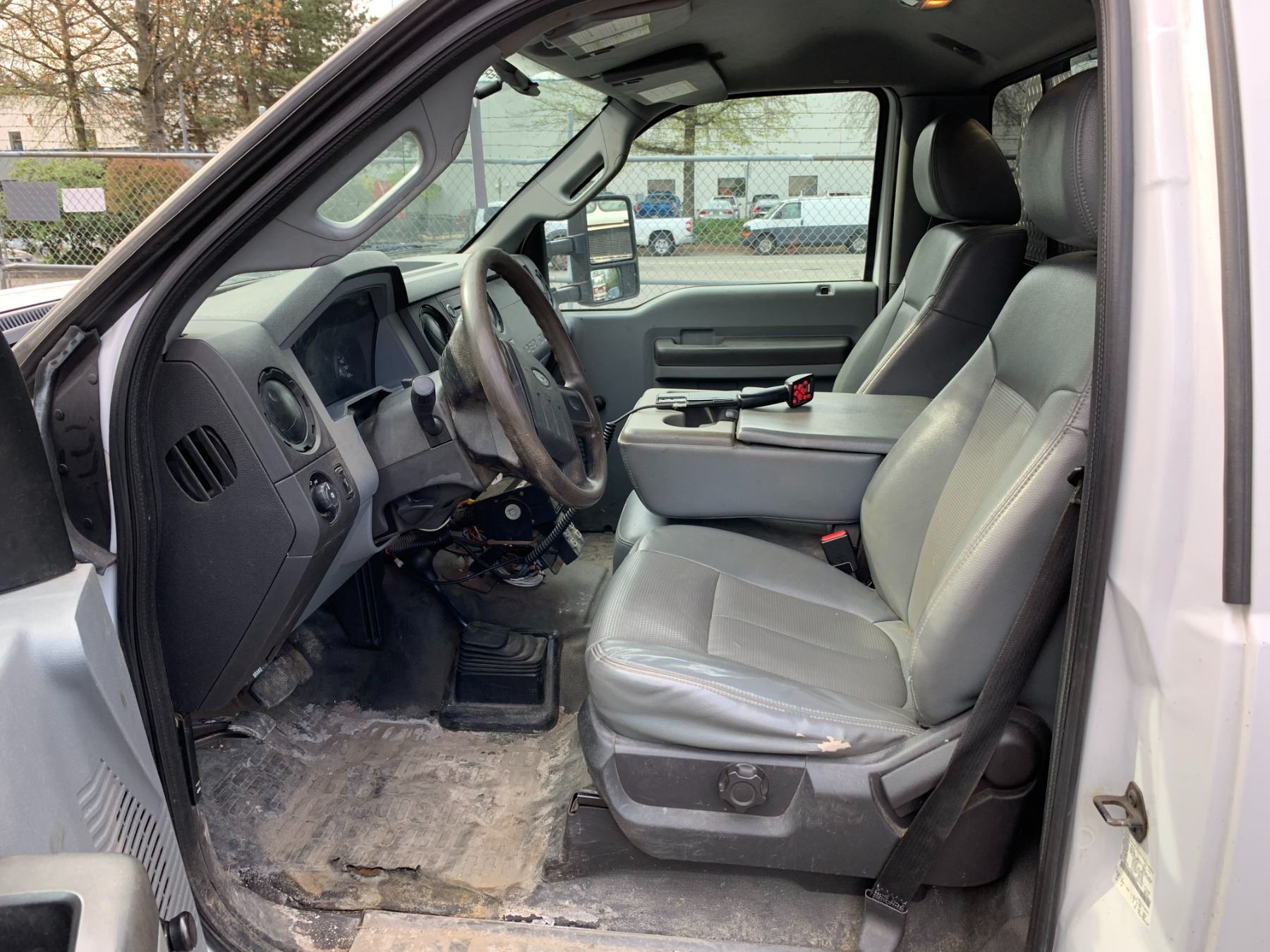 2013 FORD F-550 XL SUPER DUTY DUMP SALTER, WHITE, VIN 1FDUF5HT3DEB48630 90,588 KMS, DIESEL, 6.7 POWER STROKE, AUTO, X-CITY, ALUMINUM CHECKERED STORAGE BEHIND CAB, SAFETY LIGHT, RUSTY DUMP BOX, DENTS & HOLES, FRONT PLOW ATTACHMENT, ROLL OUT MESH COVER FRONT TOW HOOKS, RD,CD,TH,TW,4W,AC,LT, KEYS, STARTS, *HAS REGISTRATION* NO ICBC DECLARATIONS