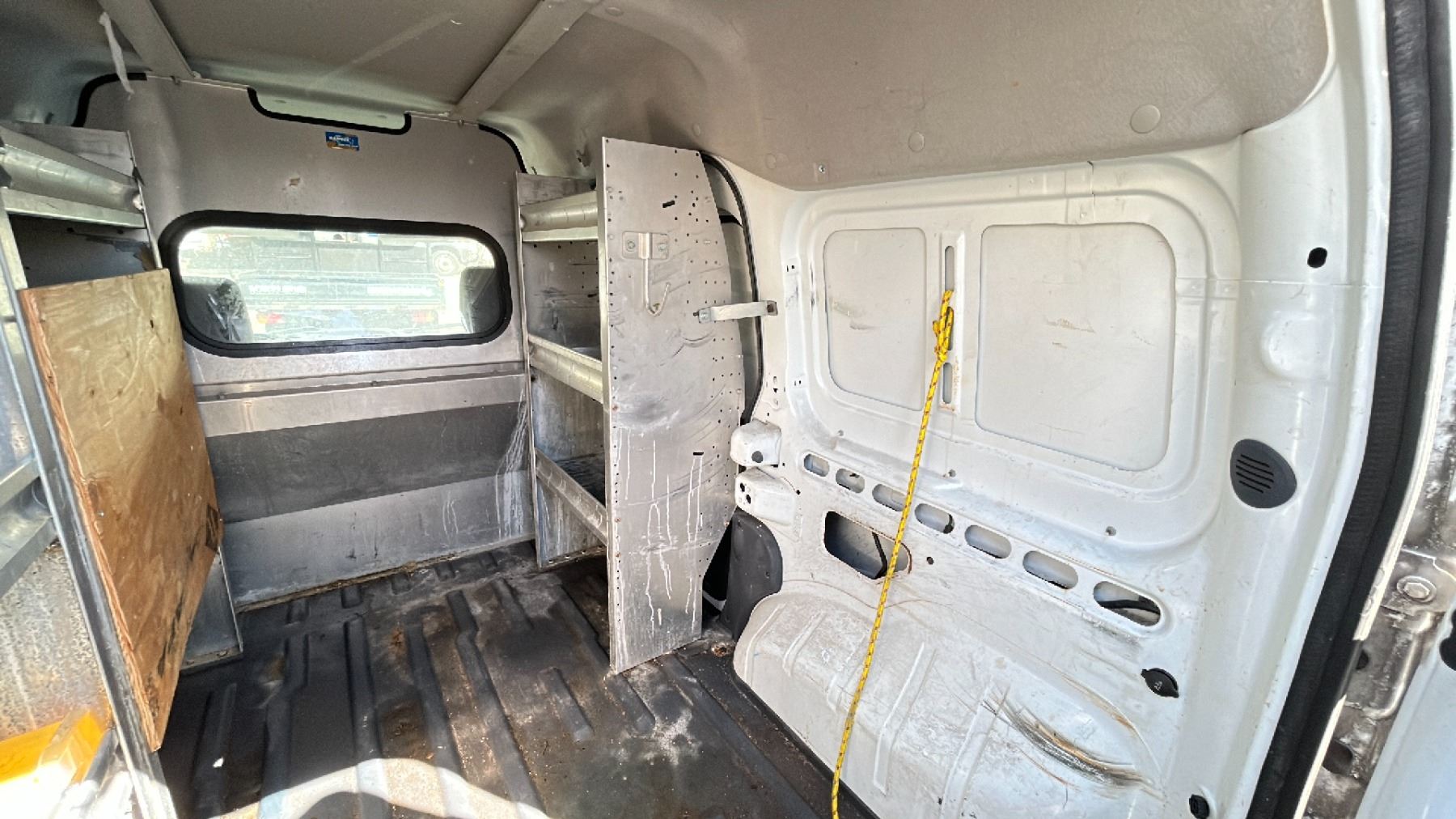 2013 FORD TRANSIT CONNECT XLT, 4DR CARGO VAN, WHITE, VIN NM0LS7BNXDT130653 240,807 KMS, GAS (G), 2L, AUTOMATIC, HAS REGISTRATION, HAS KEYS, NEEDS JUMP, FEATURES: RADIO, COMPACT DISC, POWER WINDOWS, CRUISE CONTROL, TILT WHEEL, HISTORY: X-CITY, MINOR SCRATCHES & DENTS, DENT ON DRIVER REAR DOOR, DENT ON PASSENGER DOOR, DRIVER ROCKER PANEL RUSTING IN 2 SPOTS, STERLING ALUMINIUM CAB DIVIDER, ALUMINIUM SHELVES