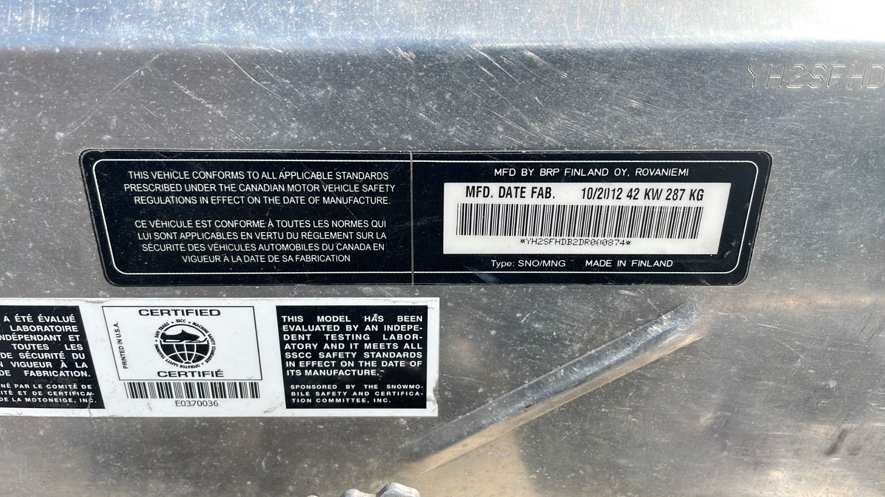 2013 SKI-DOO SKANDIC ROTAX 600 ACE, SNOWMOBILE, YELLOW, VIN YH2SFHDB2DR000874, 2,415 KMS, GAS (G), MANUAL, HAS REGISTRATION, HAS KEYS, HISTORY: X-CITY, 2 SEATER, 3 SPEED MANUAL TRANSMISSION, NO ICBC DECLARATIONS