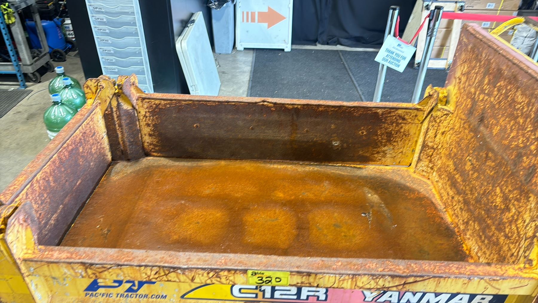 2013 YANMAR C12R VIN 27036 1,008.00 HOURS, DIESEL (D), CRAWLER CARRIER, KEYS: YES FEATURES: GOES FORWARD, GOES IN REVERSE, BRAKES WORK HISTORY: X-CITY MACHINE #C12R-B, 2 CYLINDER ENGINE, OPERATING MASS 1100KG, MAX LOAD WEIGHT 1150KG, MAX TRAVELING SPEED 5.5KM/H, 5' LONG, 3' WIDE DUMP BOX, SOME SCRATCHES AND SURFACE RUST