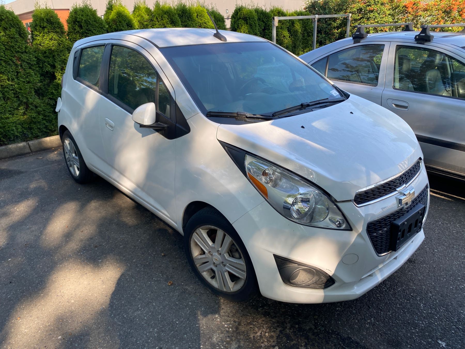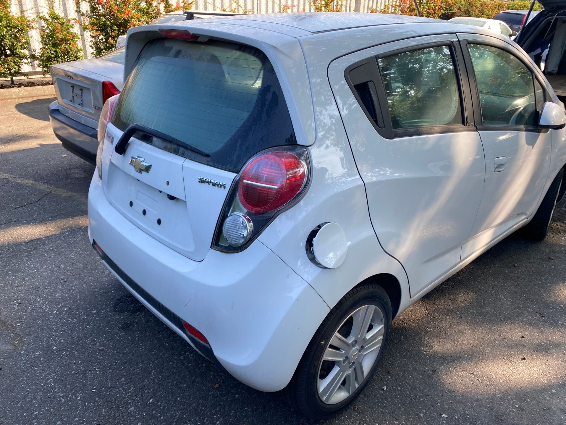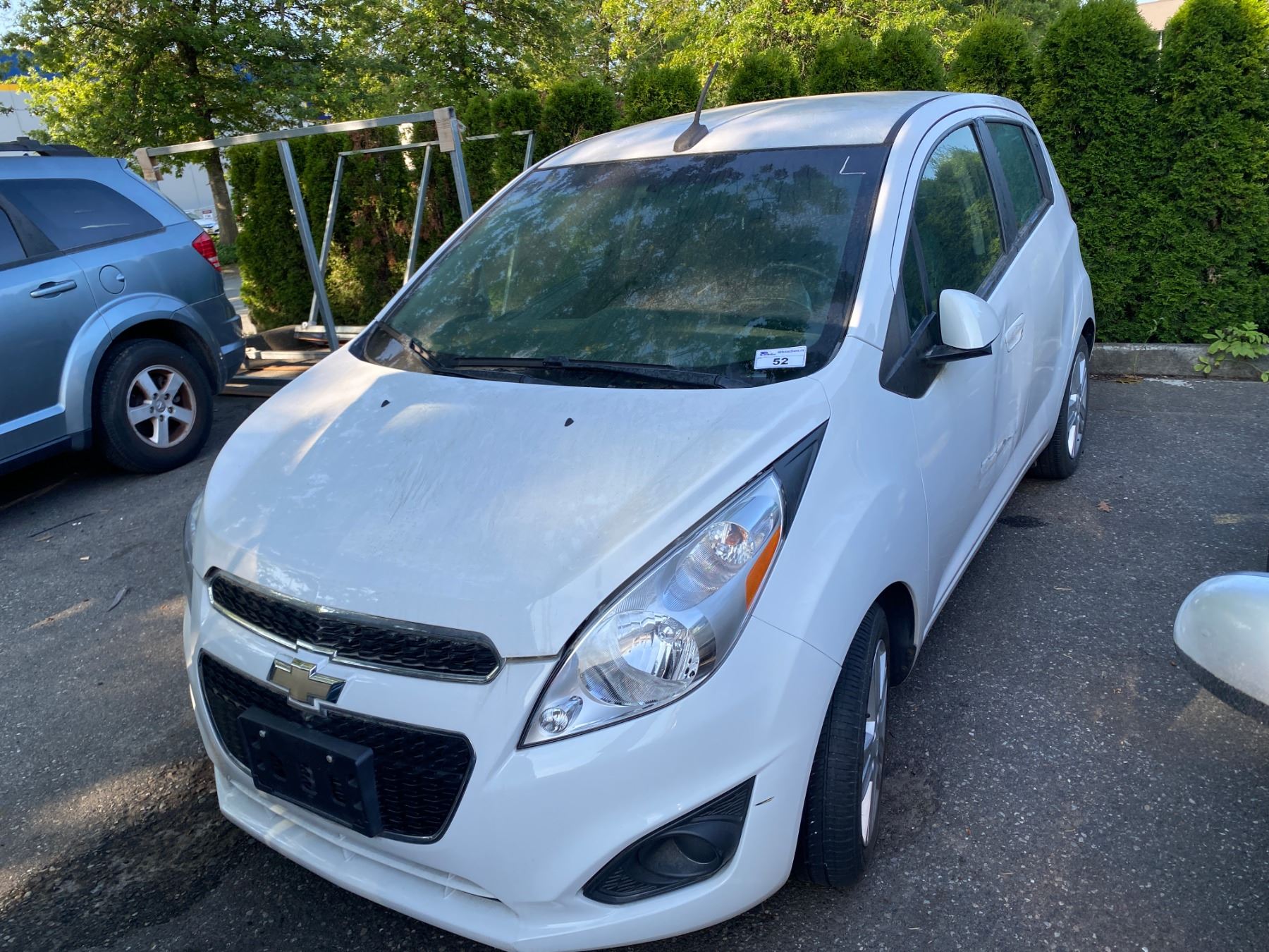 2014 CHEVROLET SPARK 2 DOOR WHITE VIN#KL8CD6S99EC528344 28,562KMS, GAS, AUTO RD, PW, DV, CC, AW, PL, TW, AC DRIVER DOOR DENTED AND SCRATCHED *HAS KEY, MUST TOW, NOT ROADWORTHY* 1X ICBC NO DETAILS