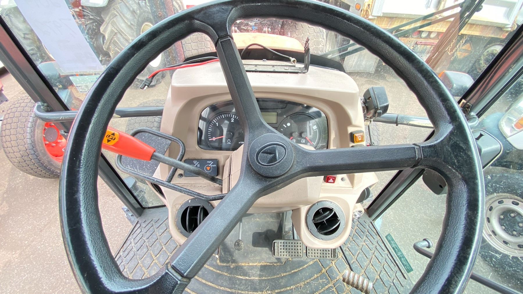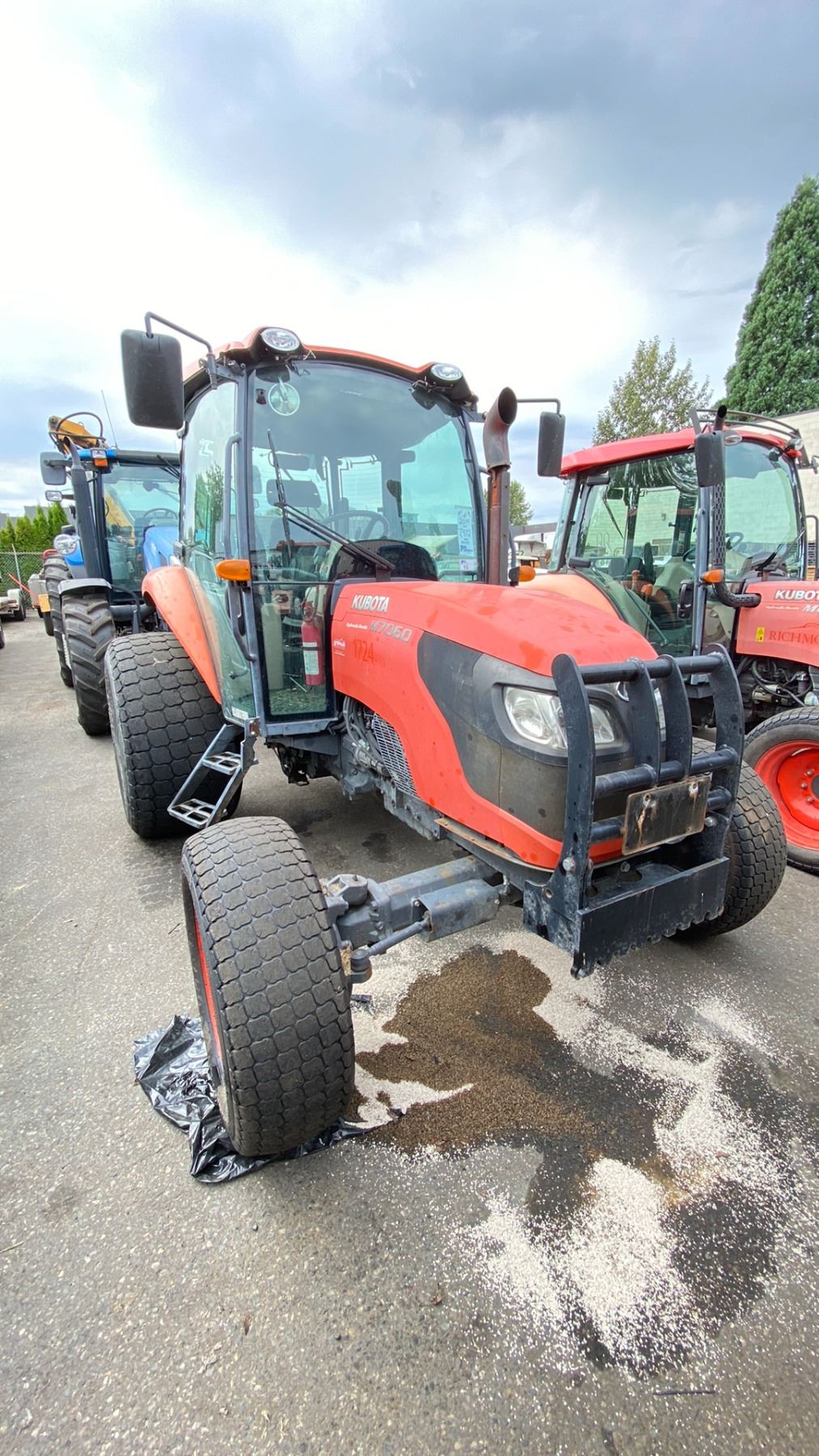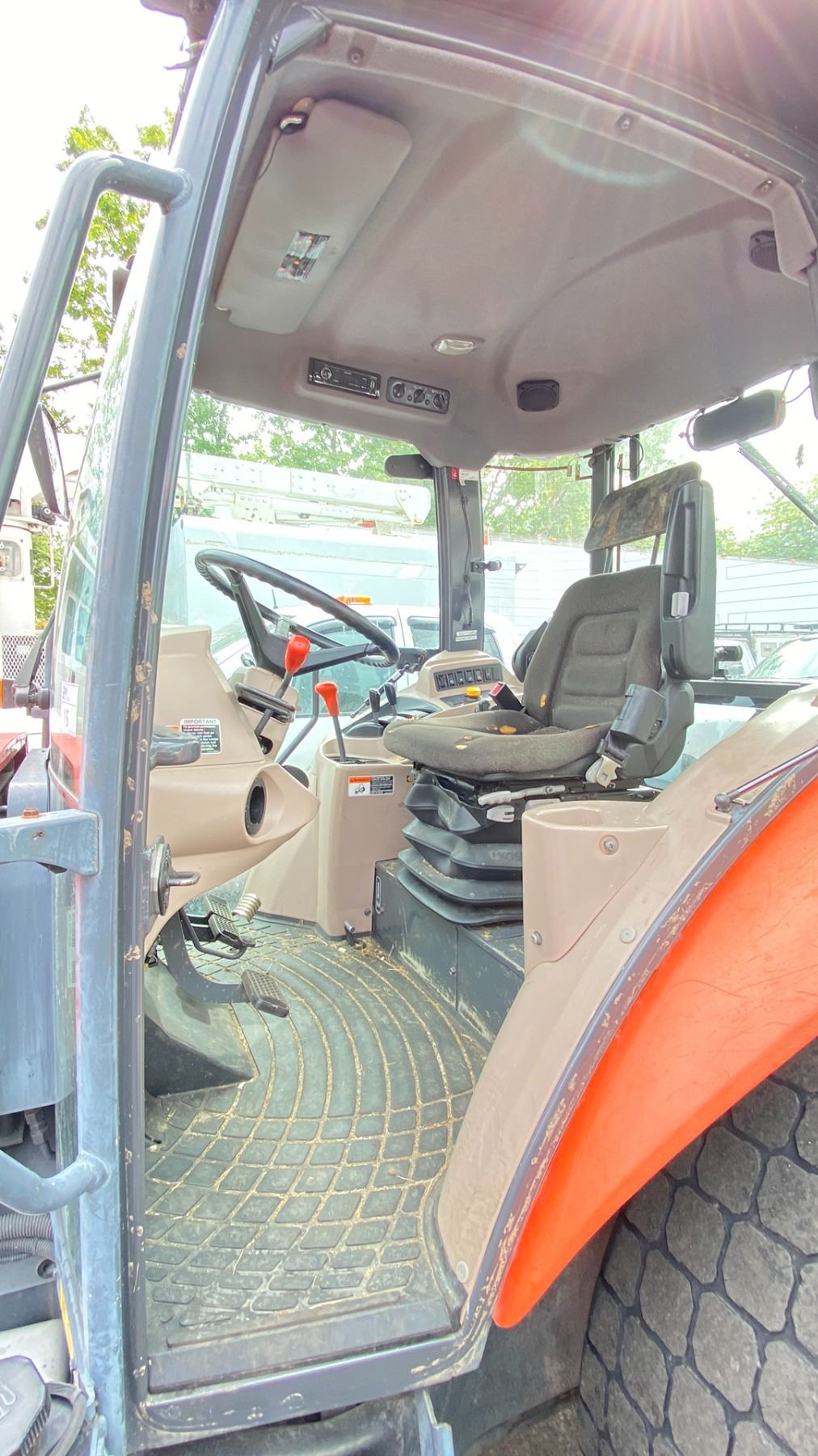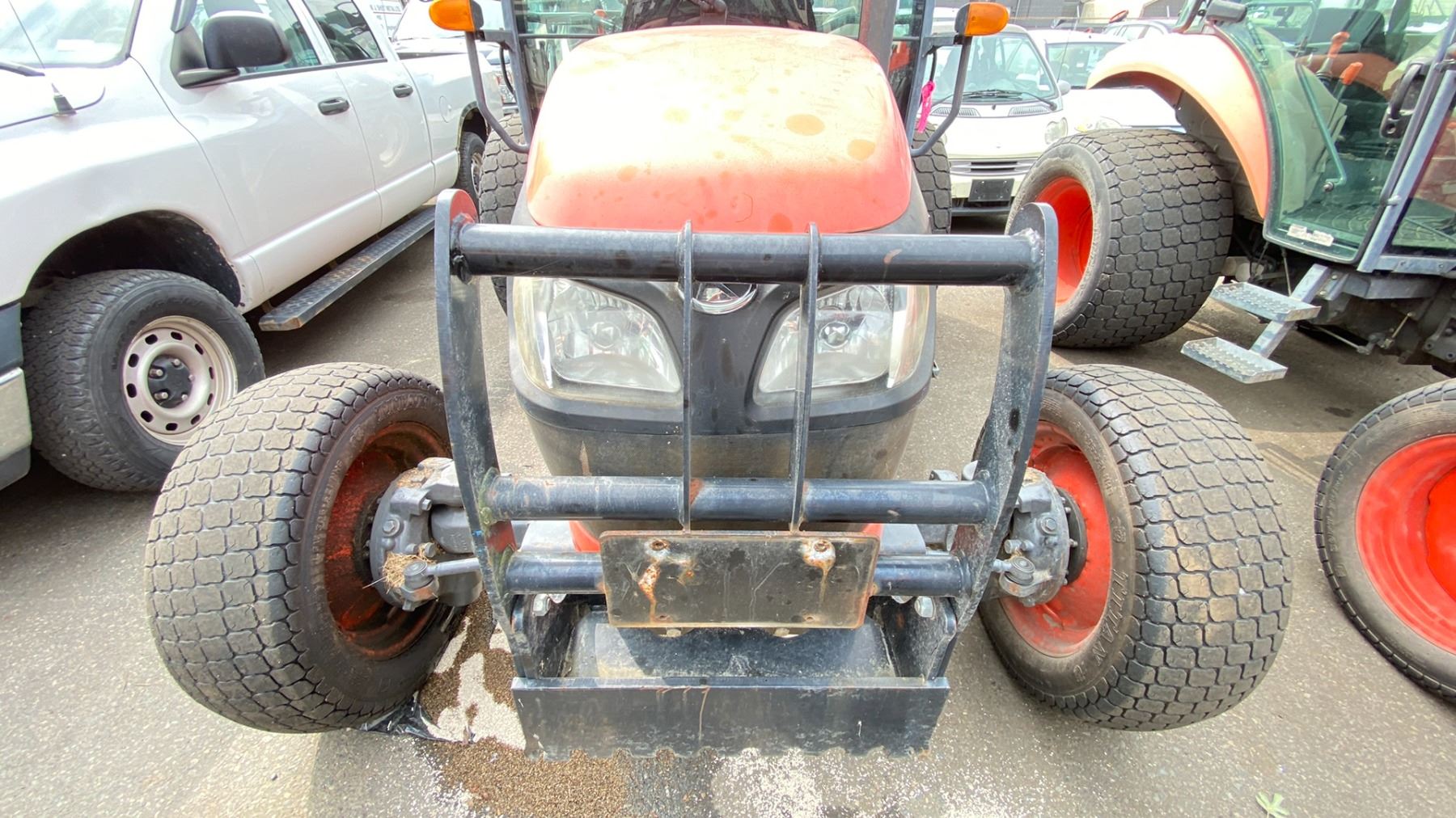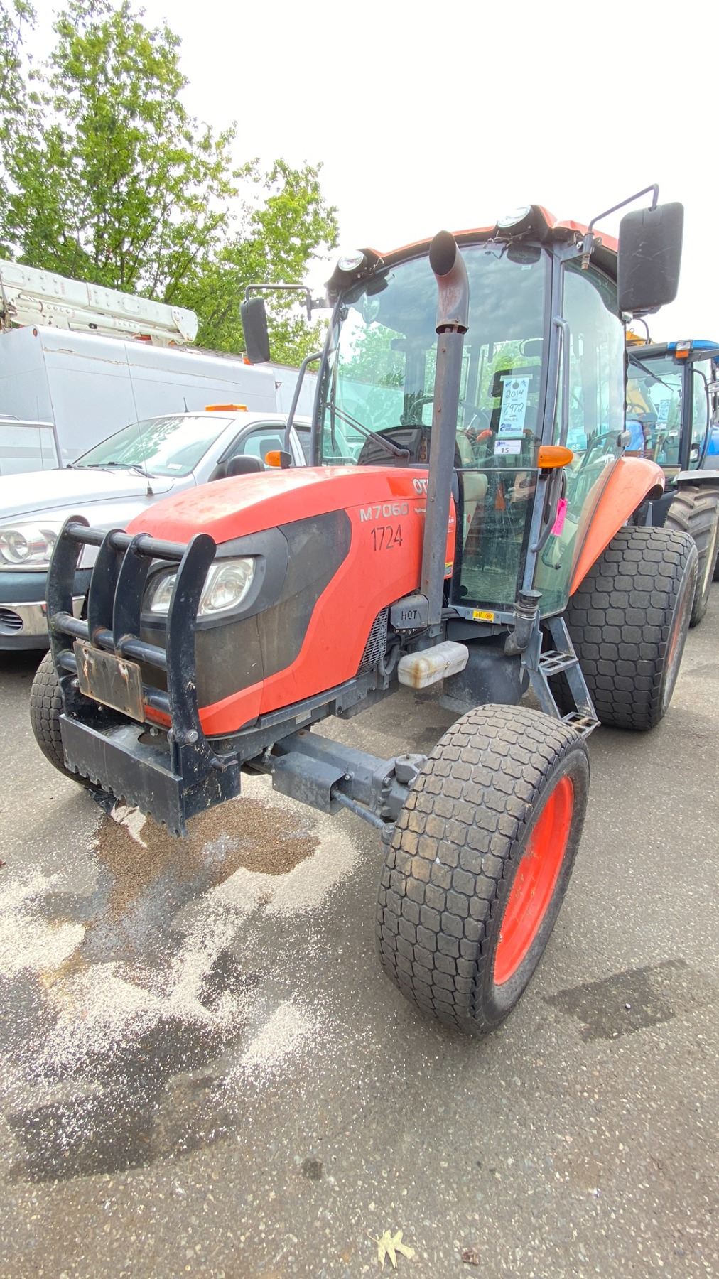 2014 KUBOTA M7060 TRACTOR, ORANGE, VIN 58694 TMU HOURS, *HOURS NOT VERIFIED*, DIESEL (D), HAS KEYS, FEATURES: GOES FORWARD, GOES IN REVERSE, BRAKES WORK, HISTORY: X-CITY, HAS REGISTRATION, 2 DOOR 1 SEATER, MINOR SCRATCHES AND DENTS, ENGINE #8EN3835, ID#3024421832, PASSENGER FRONT SEAL LEAKING, NO ICBC INFORMATION AVAILABLE