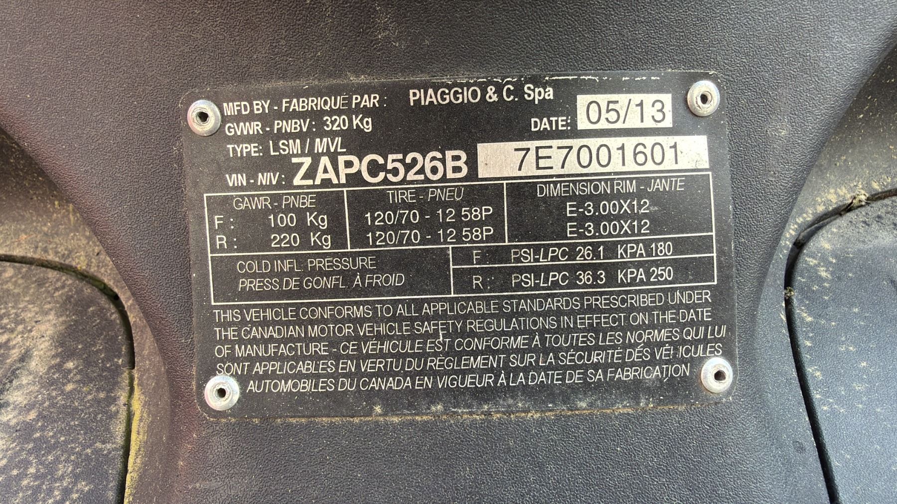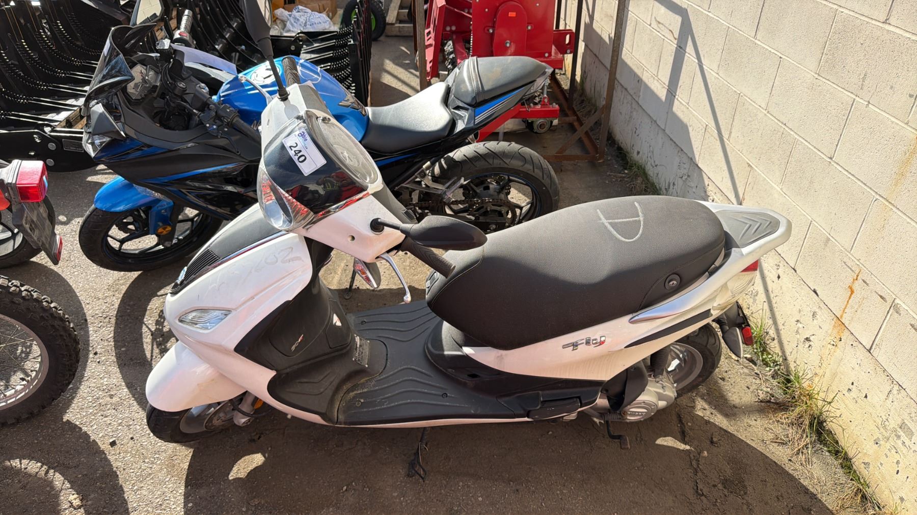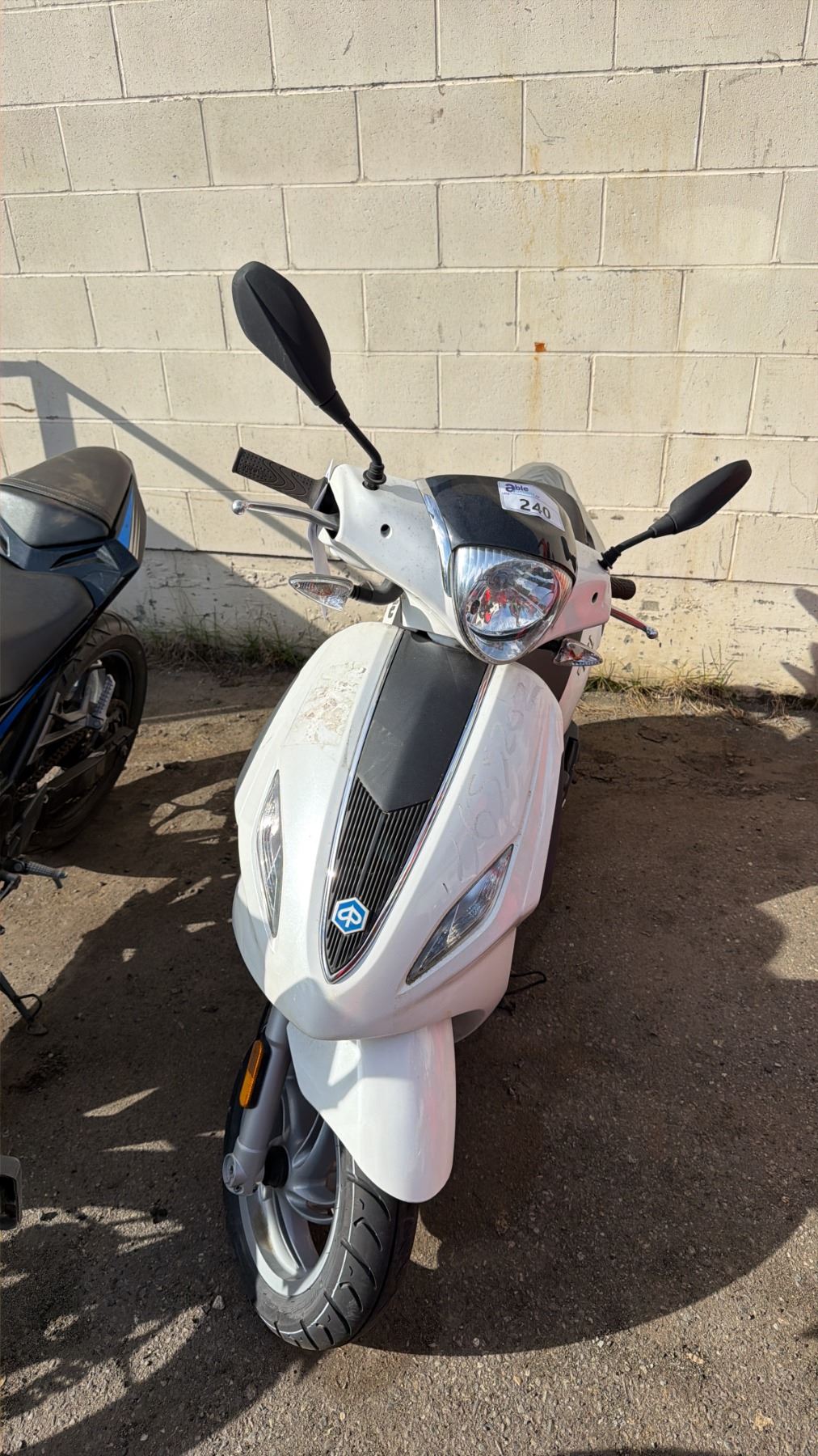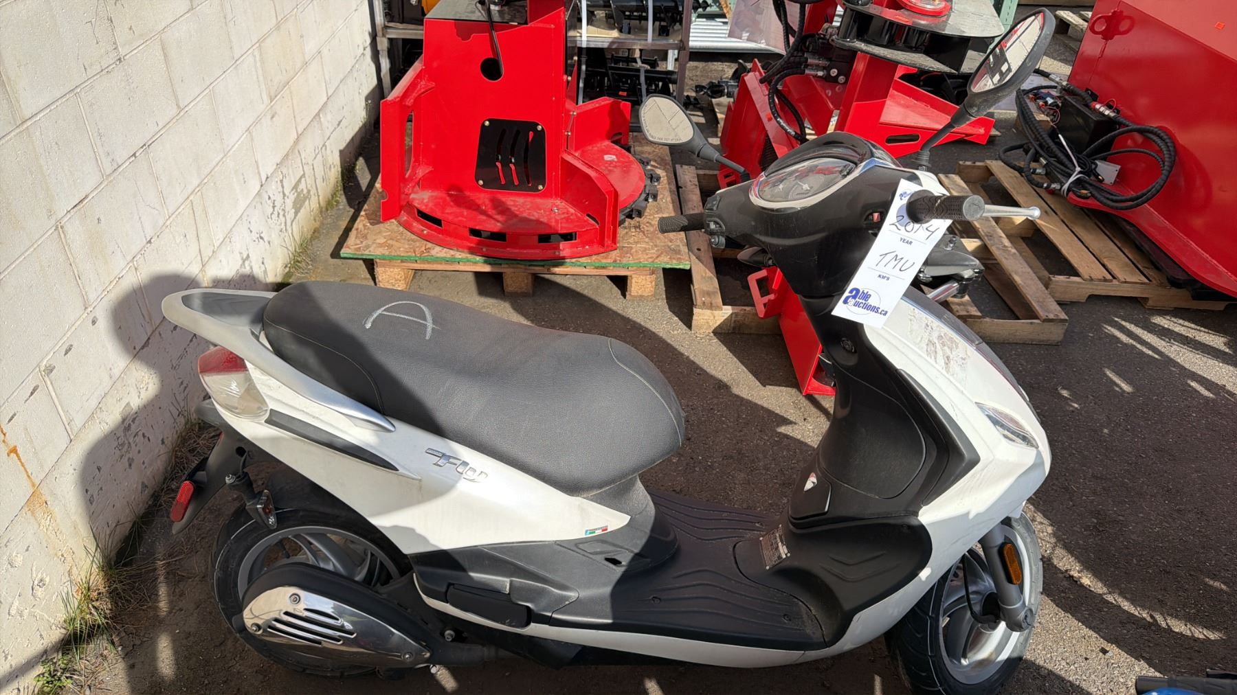 2014 PIAGGIO FLY 504T LIMITED SPEED MOTORCYCLE, WHITE, VIN ZAPC526B7E7001601, 2,011 KMS, GAS (G), 49CC, HAS REGISTRATION, MUST TOW - NOT SUITABLE FOR TRANSPORT, NO KEYS, 5 DIGIT ODOMETER KMS NOT VERIFIED, MINOR SCRATCHES AND DENTS, 1 ICBC ESTIMATE $790.42, 1 ICBC REPAIRED DECLARATION $790.42