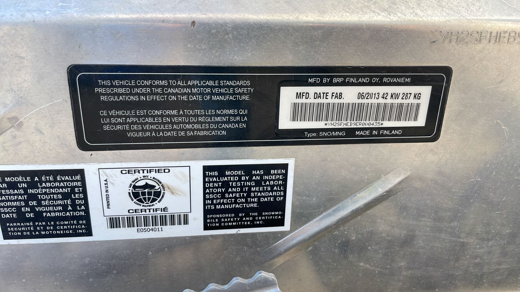2014 SKI-DOO SKANDIC ROTAX 600 ACE, SNOWMOBILE, YELLOW, VIN YH2SFHEB9ER000435, 2,021 KMS, GAS (G), MANUAL, HAS REGISTRATION, HAS KEYS, HISTORY: X-CITY, 3 SPEED MANUAL TRANSMISSION, HAS BRP STORAGE BOX, NO ICBC DECLARATIONS