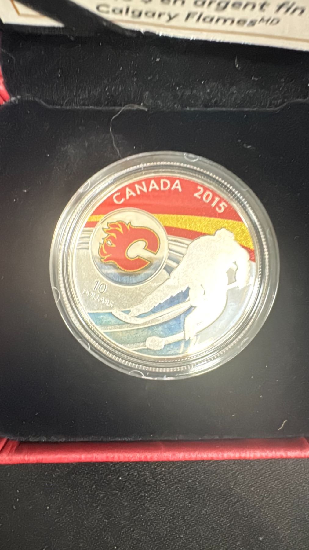 2015 FINE SILVER $10 COIN CALGARY FLAMES *TAX EXEMPT*