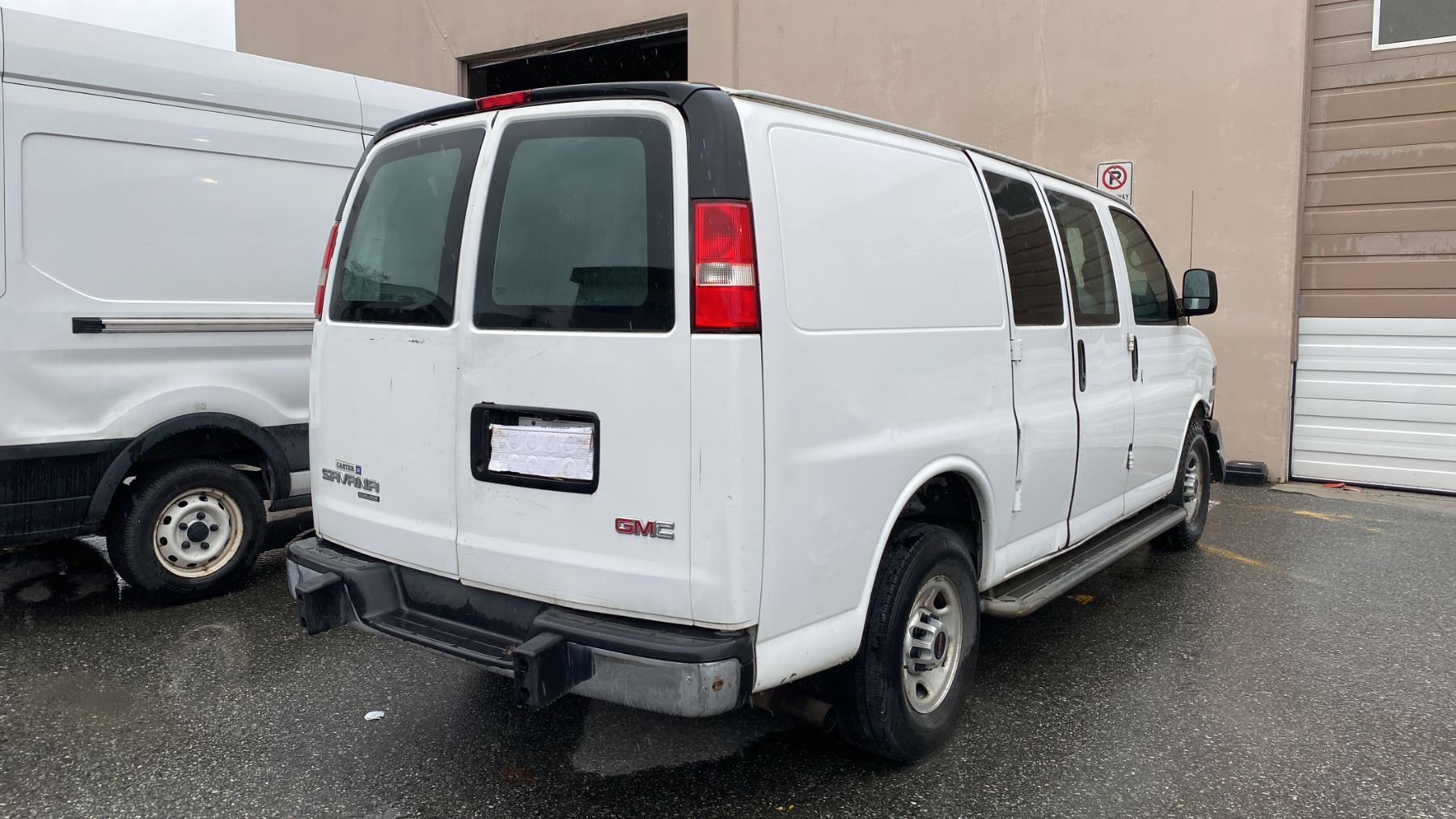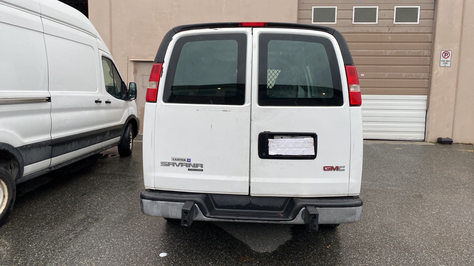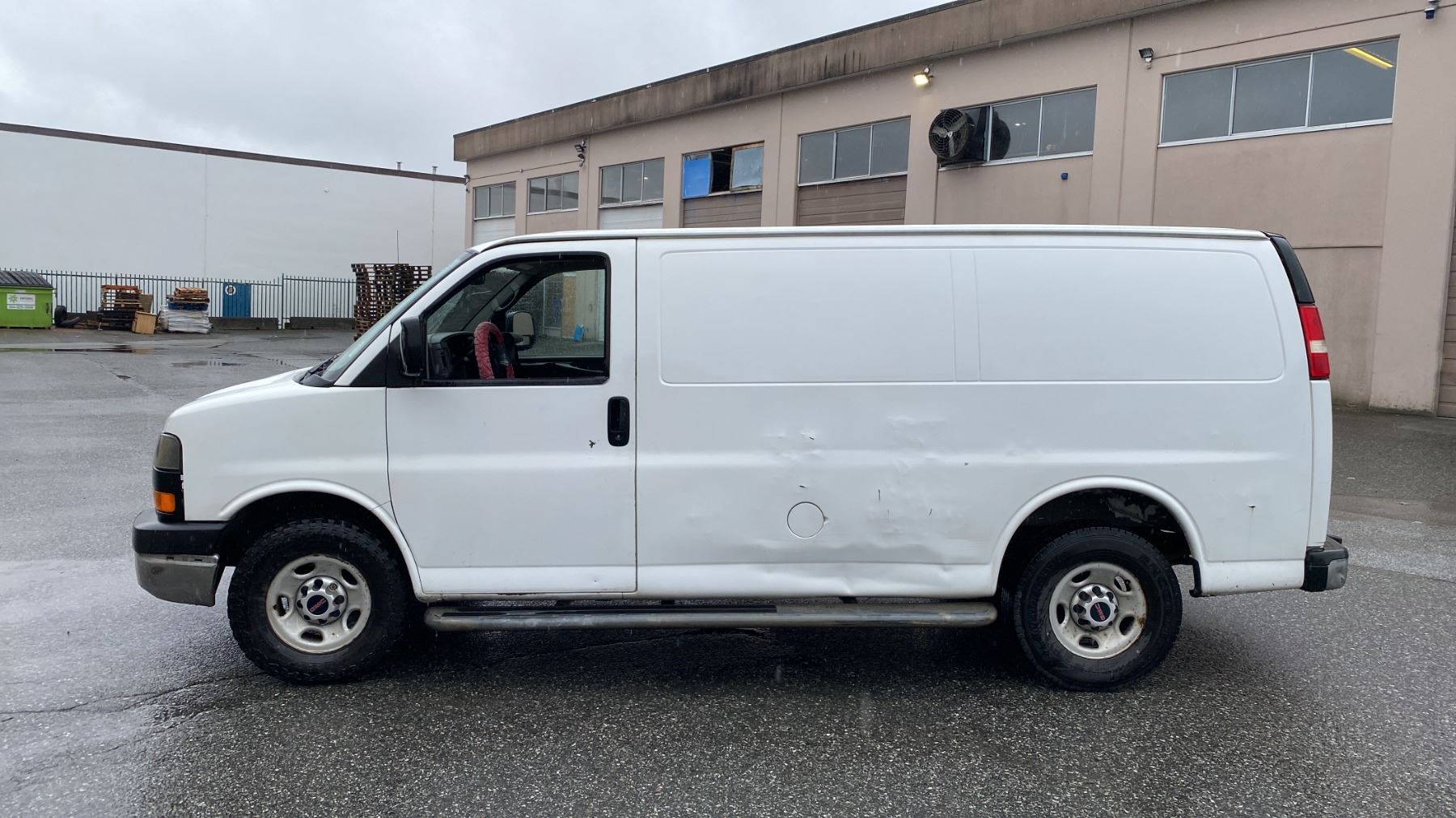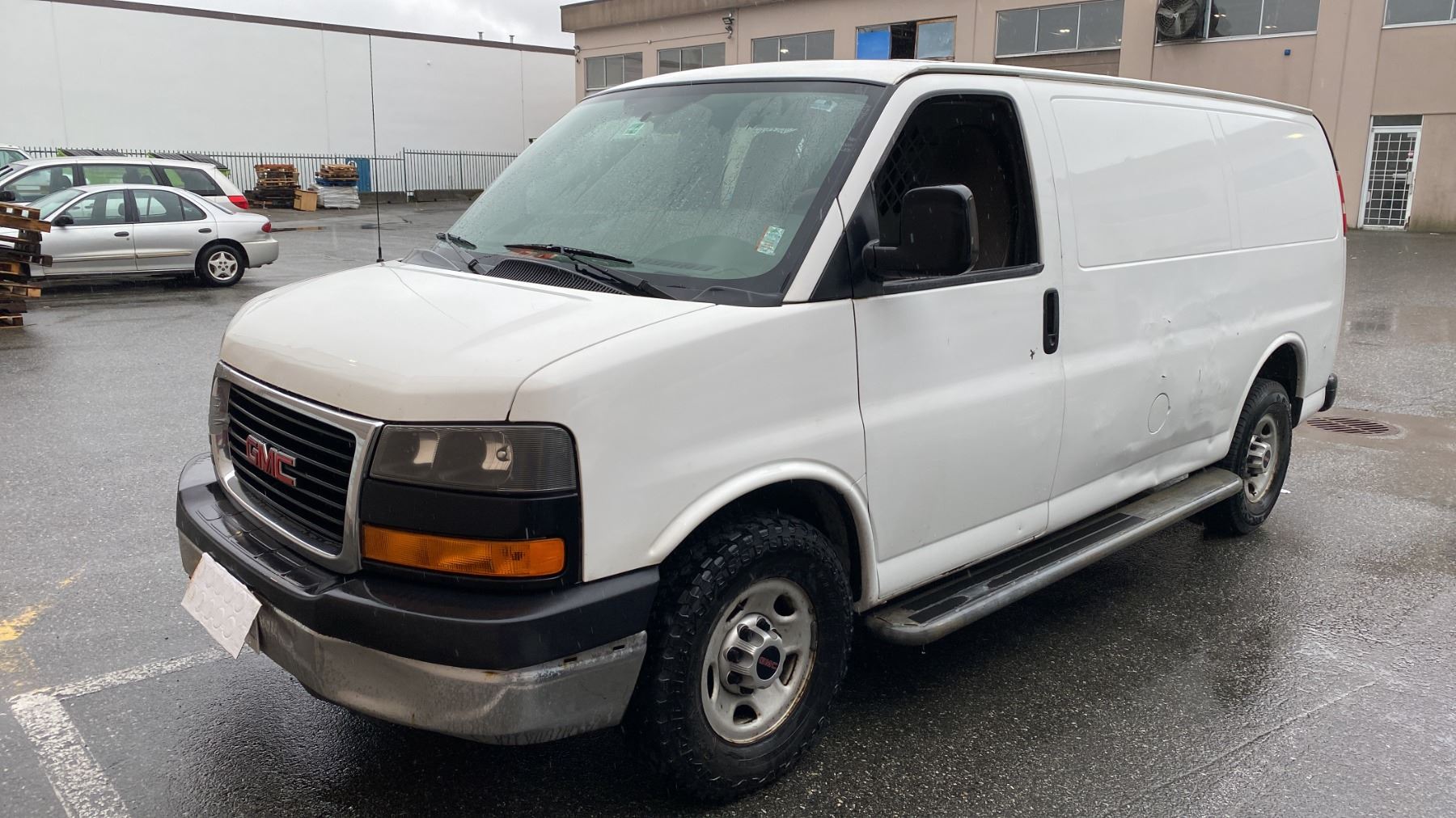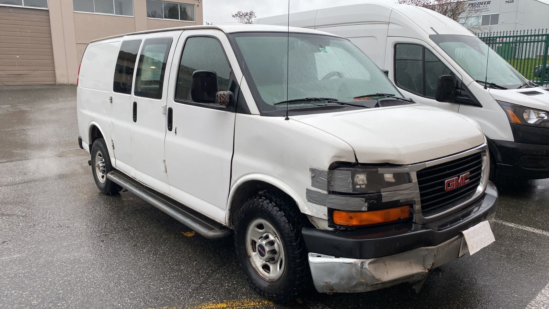 2015 GMC SAVANA 2500, 3DR CARGO VAN, WHITE, VIN 1GTW7FCF6F1275108, 326,934 KMS, GAS (G), 8CYL, 4.8L, AUTOMATIC, HAS REGISTRATION, HAS KEYS, FEATURES: RADIO, POWER WINDOWS, CRUISE CONTROL, POWER LOCKS, TILT WHEEL, AIR COND, DENTS BOTH SIDES OF BODY & BUMPER, CRACKED WINDSHIELD, ROOF DENTS, CARGO PARTITION, PASS HEADLIGHT BEZEL BROKEN, SIDE RUNNING BOARDS, ICBC REPAIRED DECS TTL $9,650.52, 2X ICBC NO DETAILS