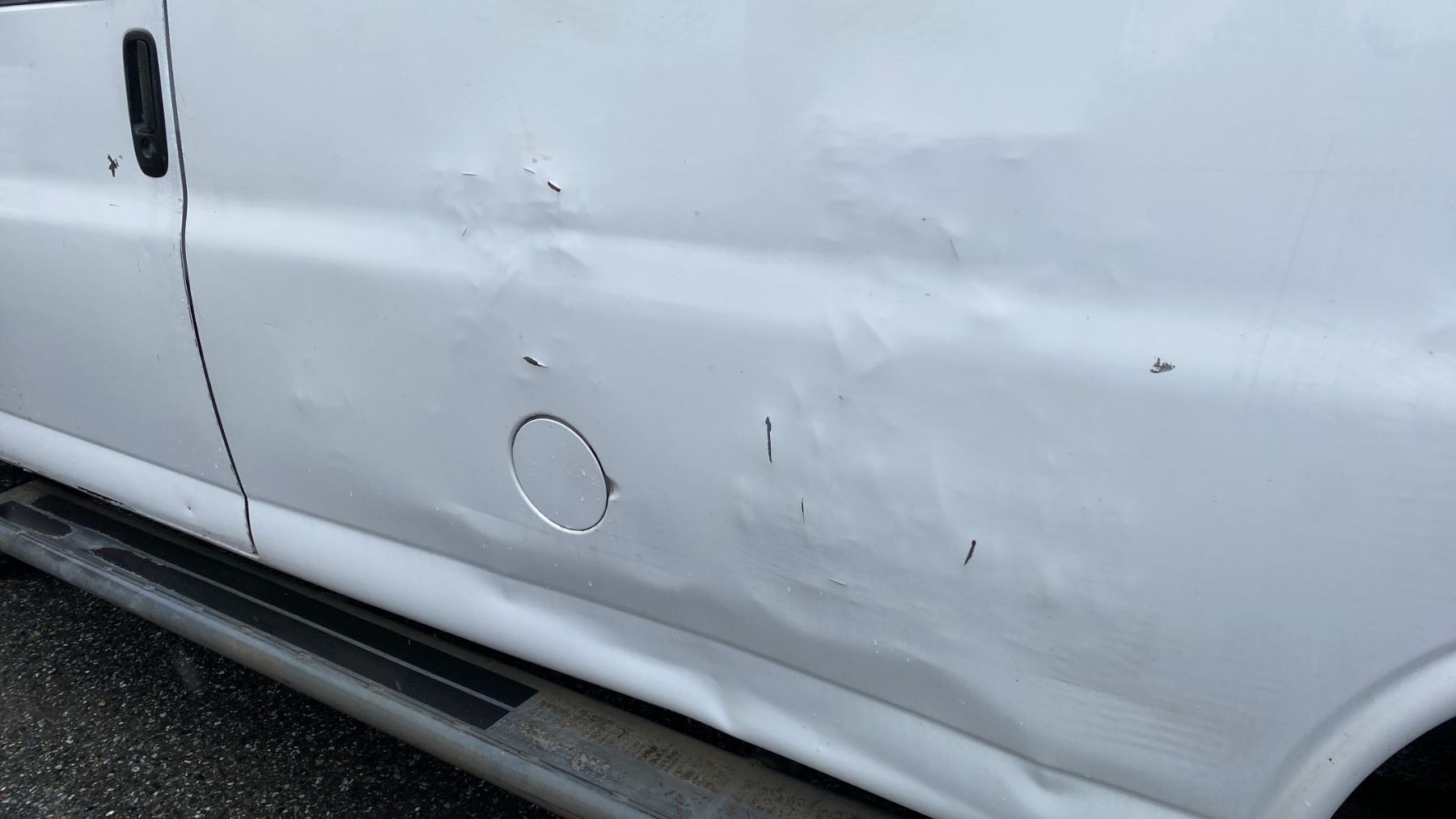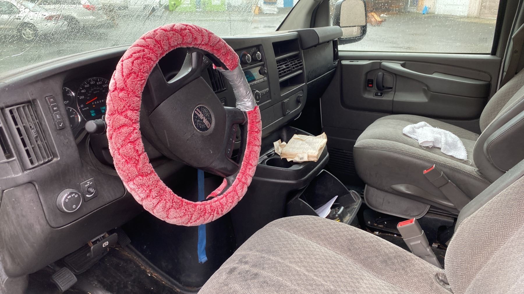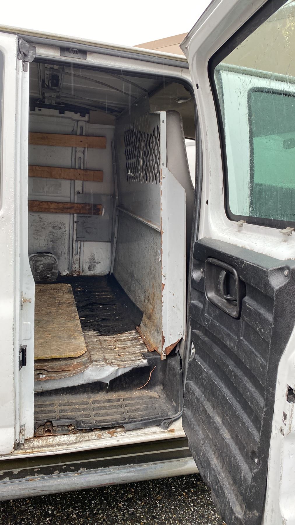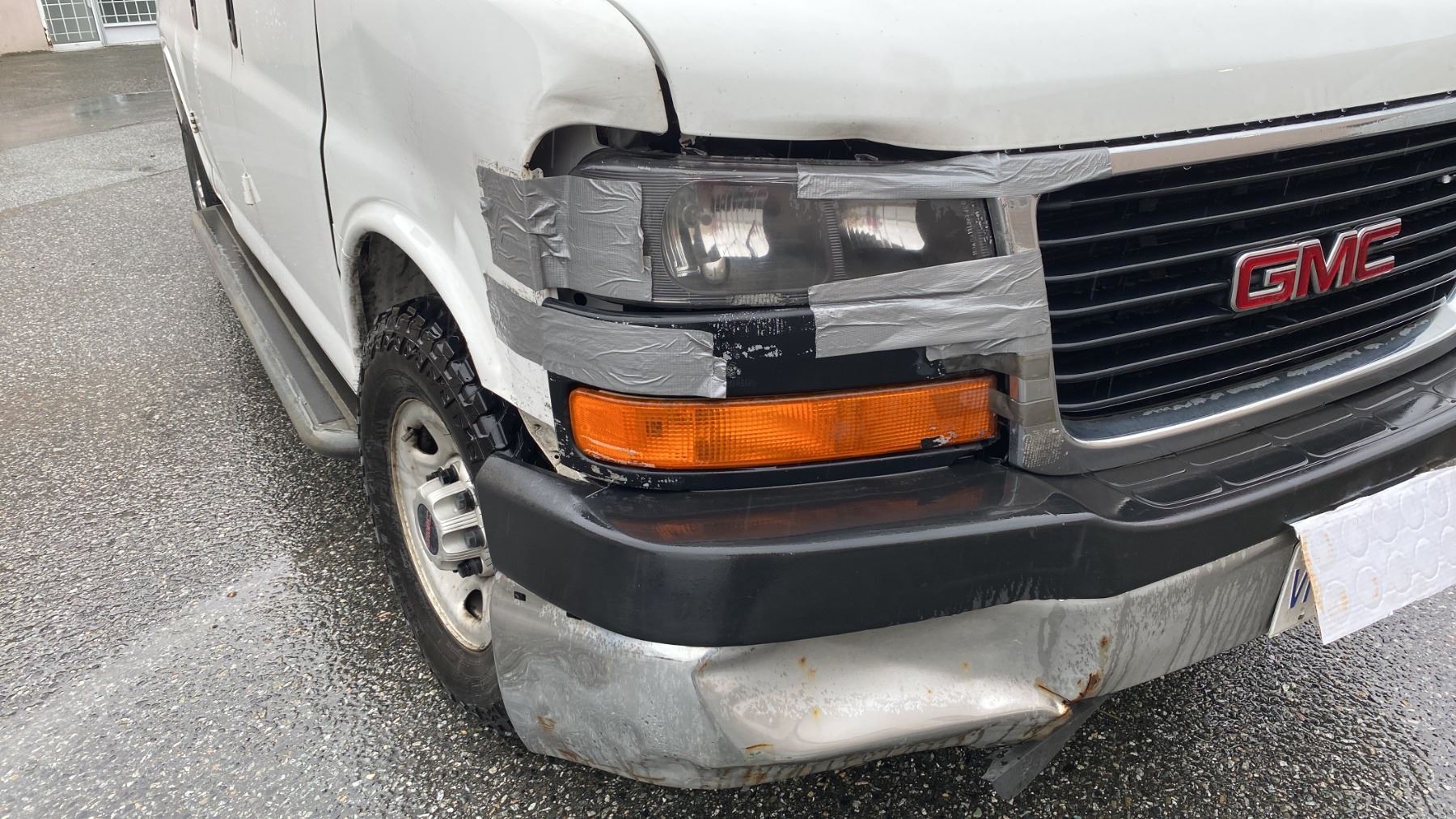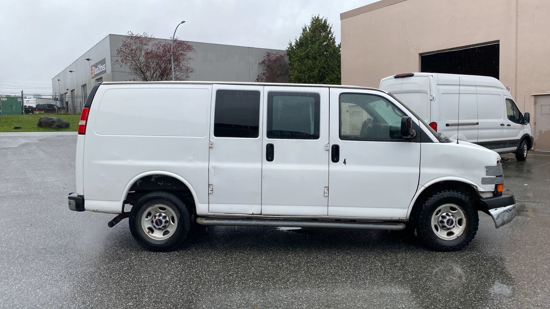 2015 GMC SAVANA 2500, 3DR CARGO VAN, WHITE, VIN 1GTW7FCF6F1275108, 326,934 KMS, GAS (G), 8CYL, 4.8L, AUTOMATIC, HAS REGISTRATION, HAS KEYS, FEATURES: RADIO, POWER WINDOWS, CRUISE CONTROL, POWER LOCKS, TILT WHEEL, AIR COND, DENTS BOTH SIDES OF BODY & BUMPER, CRACKED WINDSHIELD, ROOF DENTS, CARGO PARTITION, PASS HEADLIGHT BEZEL BROKEN, SIDE RUNNING BOARDS, ICBC REPAIRED DECS TTL $9,650.52, 2X ICBC NO DETAILS