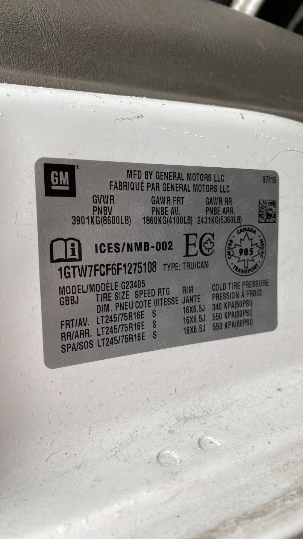 2015 GMC SAVANA 2500, 3DR CARGO VAN, WHITE, VIN 1GTW7FCF6F1275108,
