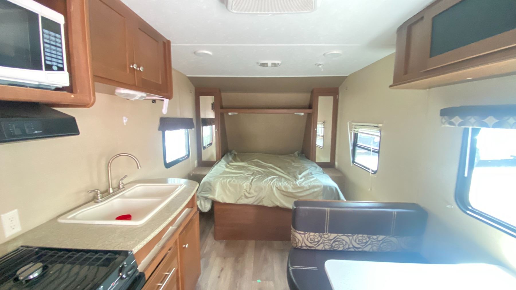 2015 KEYSTONE DUTCHMEN 1900RB 19FT TRAVEL TRAILER, WHITE, VIN 4YDT19029FY921415 HAS REGISTRATION, HAS KEYS, HISTORY: OOP, EQUIPPED TRAILER ONE DOUBLE BED, NO MATTRESS, TABLE FOLDS TO BE A BED, PROPANE FRIDGE & STOVE, FRIDGE IS ELECTRIC, ALSO MILCA WARE SINK, STAND UP SHOWER, ONE TOILET, AC UNIT WITH PROPANE TANKS, HAIL DAMAGE, 1X ICBC NO DETAILS, ICBC REPAIRED ESTIMATE $16,374.23