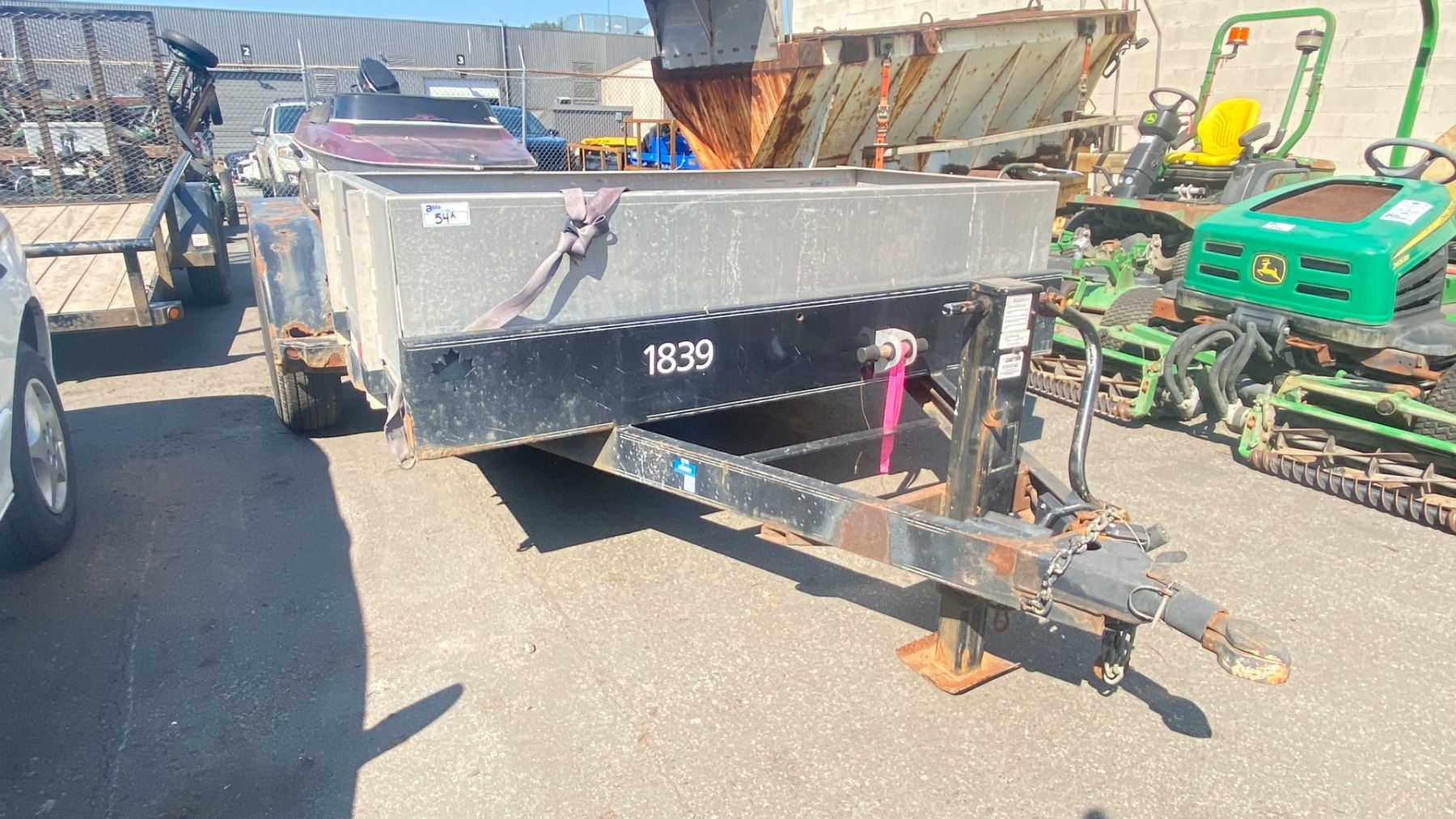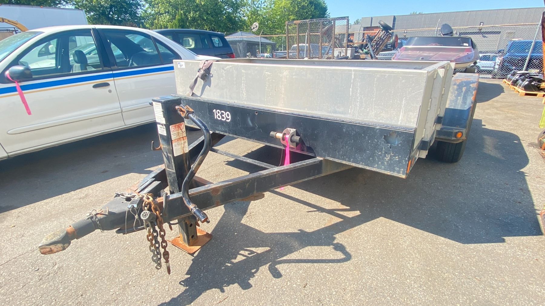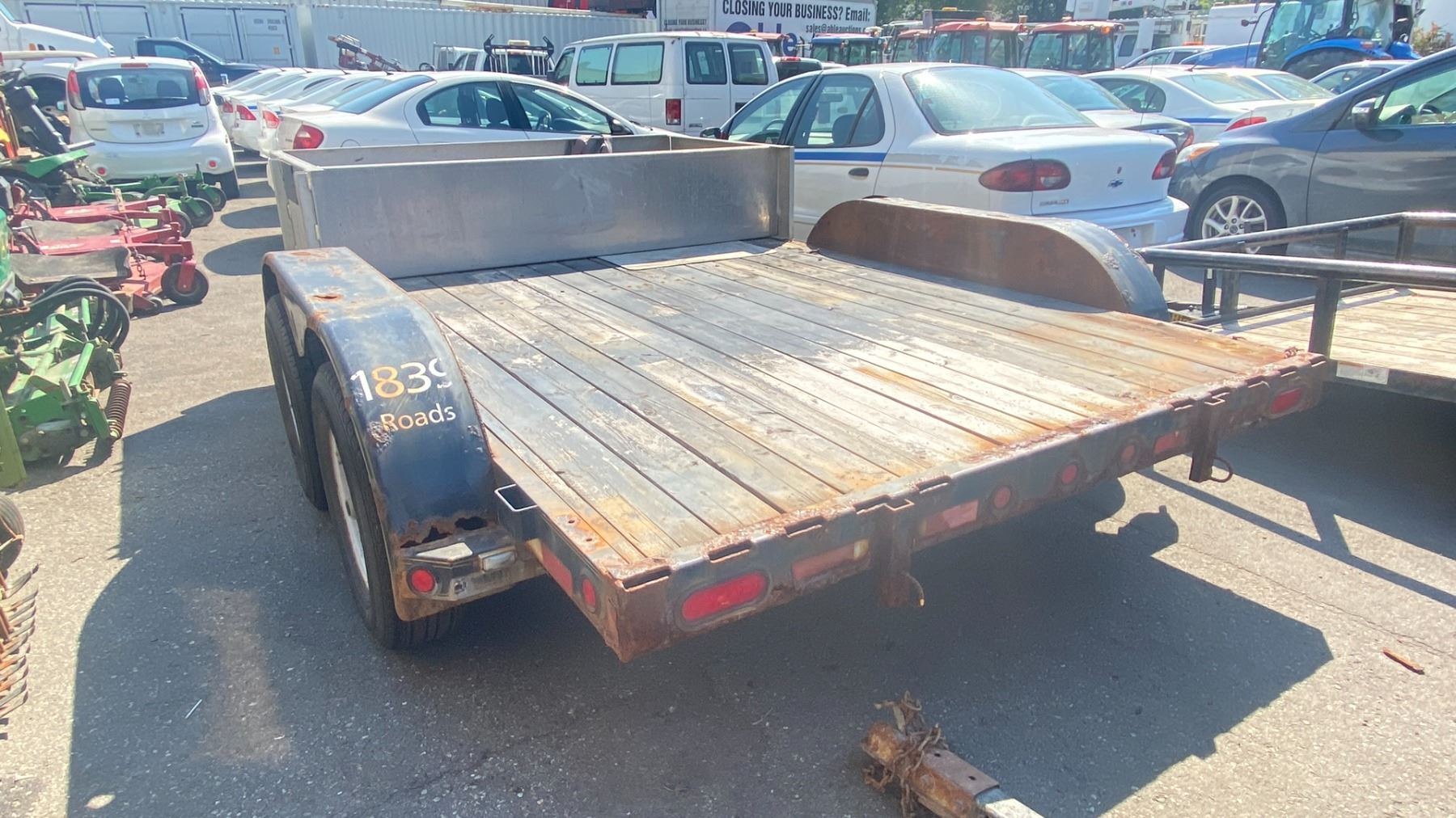 2016 DOUBLE A CUMMINGS ECH107, TANDEM AXLE TRAILER, BLACK VIN 2DACC2252GT018303 HAS REGISTRATION, 2 5'16 BALL HITCH, 12' L X 7' W DECK, 4' LONG TONGUE, 16' TOTAL LENGTH, 3' W X 7' L X 17" TALL ALUMINUM BOX, TANDEM AXLE TRAILER, RUSTY FENDERS & REAR, INSPECTION GOOD UNTIL NOV 2025, NO ICBC DECLARATIONS