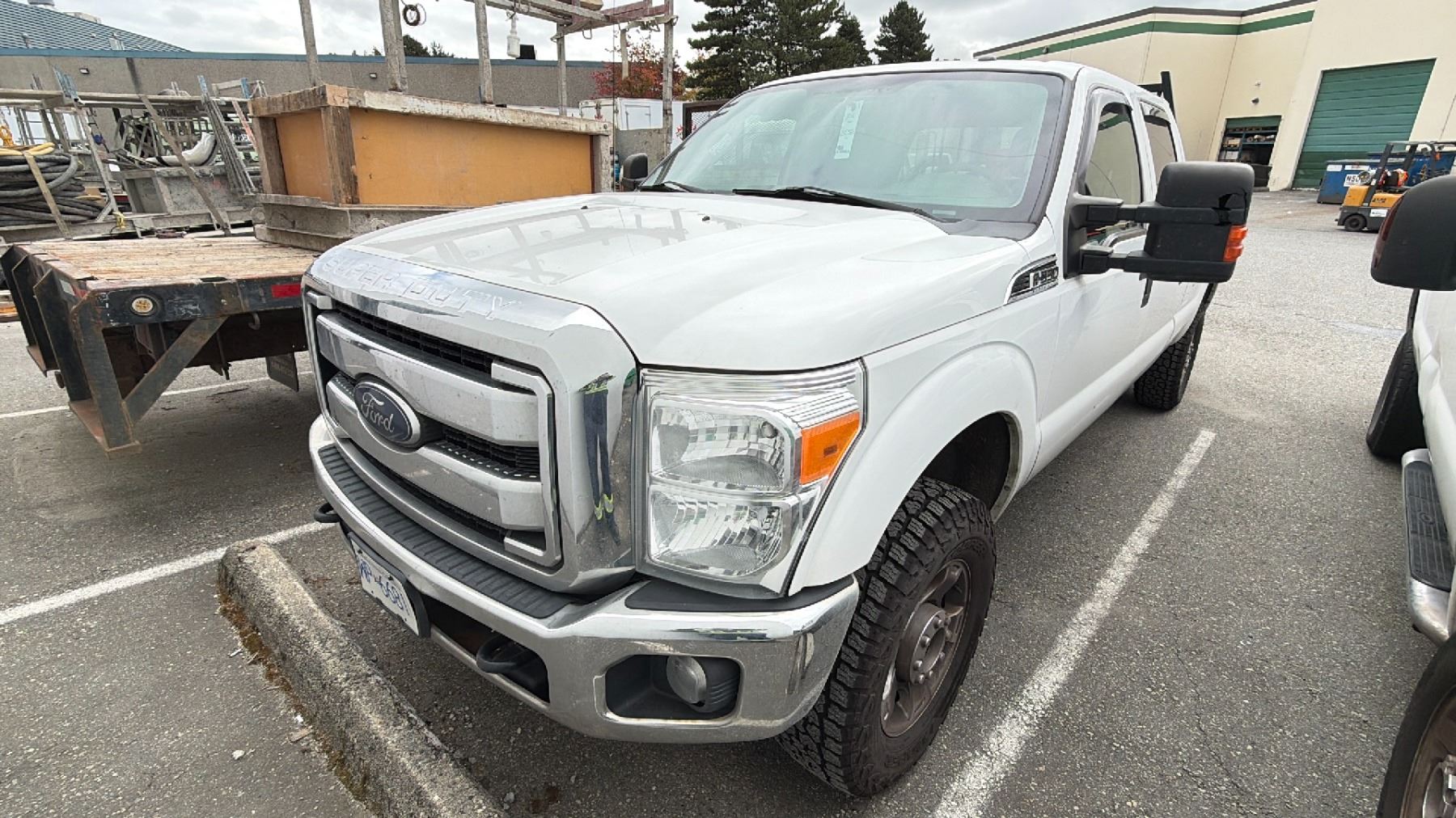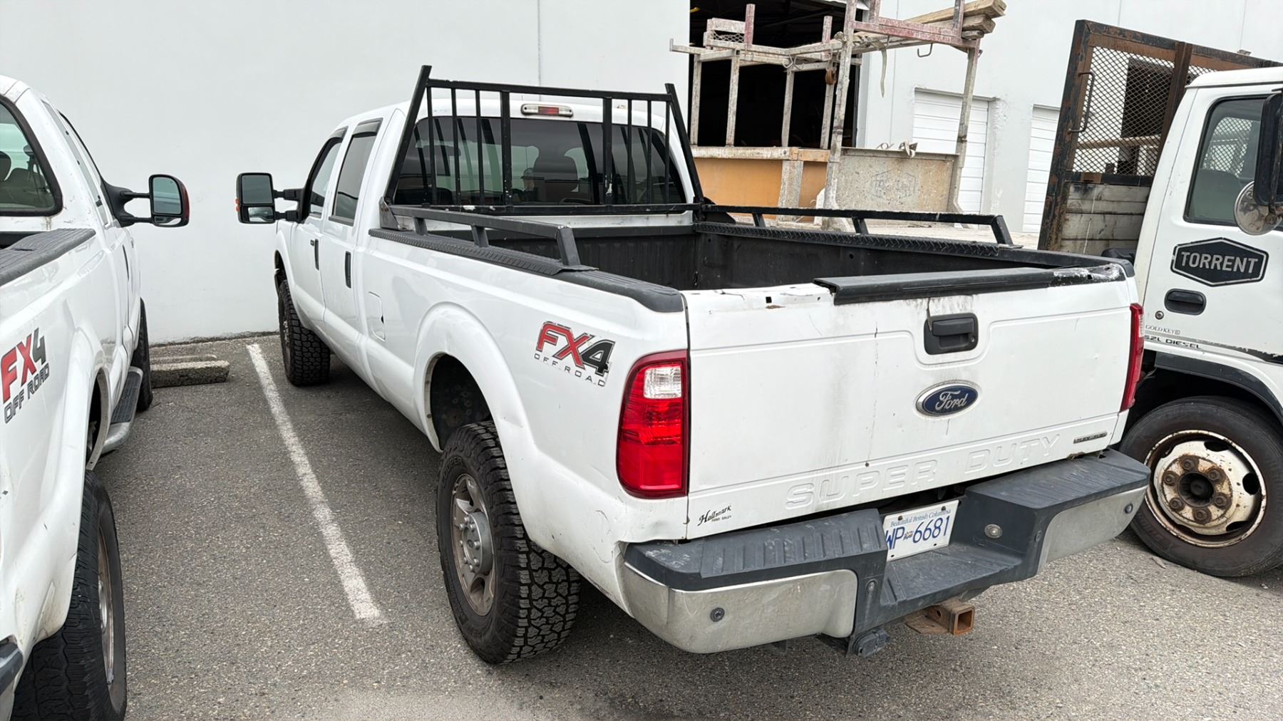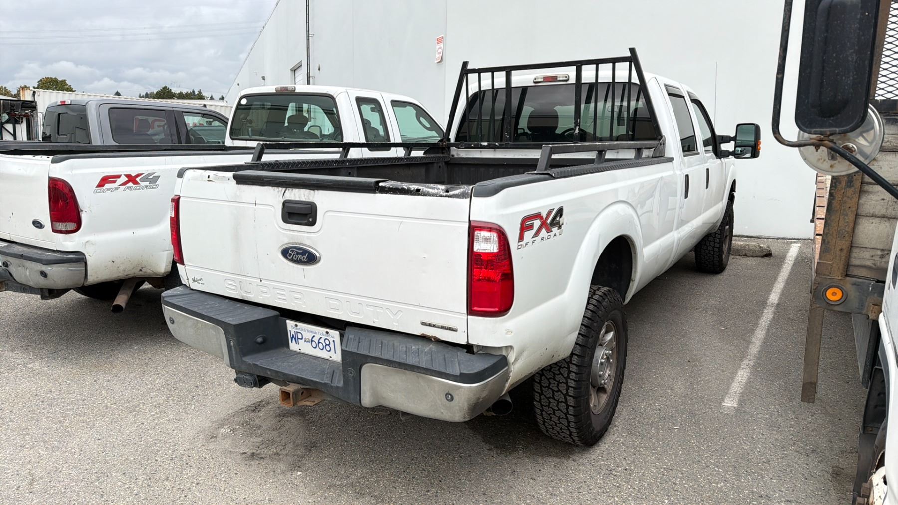 2016 FORD F-350 XLT SUPERDUTY, 4DR CREW CAB PU, WHITE, VIN 1FT8W3B66GED43705, 235,564 KMS, GAS (G), 6.2L, AUTOMATIC, HAS REGISTRATION, HAS KEYS, FEATURES: RADIO, COMPACT DISC, POWER WINDOWS, REAR AIR COND, CRUISE CONTROL, TRAILER HITCH, QUAD SEATS, POWER LOCKS, TILT WHEEL, 4 WHEEL DRIVE, AIR COND, HAS CUSTOM HEADACHE RACK, ICBC REPAIRED DECS TTL $7,722.04, 4X ICBC NO DETAILS, DENTED BUMPERS, TORN DRIVERS SEAT, DENTED TAILGATE, SCRATCHES & DENTS ALL OVER
