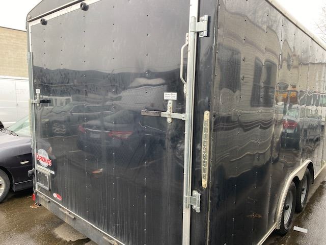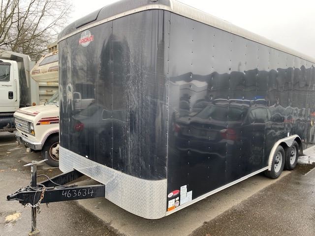 2017 CARGOMATE ENCLOSED TRAILER APPROX 8'X20' VIN 5NHUBLV22HB463634 GVWR 7000LBS, 20'6" BOX LENGTH, 96"W, 36" RV DOOR WOOD LINED, DRY WEIGHT 1476 KG, 3253LBS, DEXTER AXLES, 5,000LBS, D-RING TIE DOWNS, CARGO CARRY CAPACITY 1700KG NO ICBC DECLARATIONS