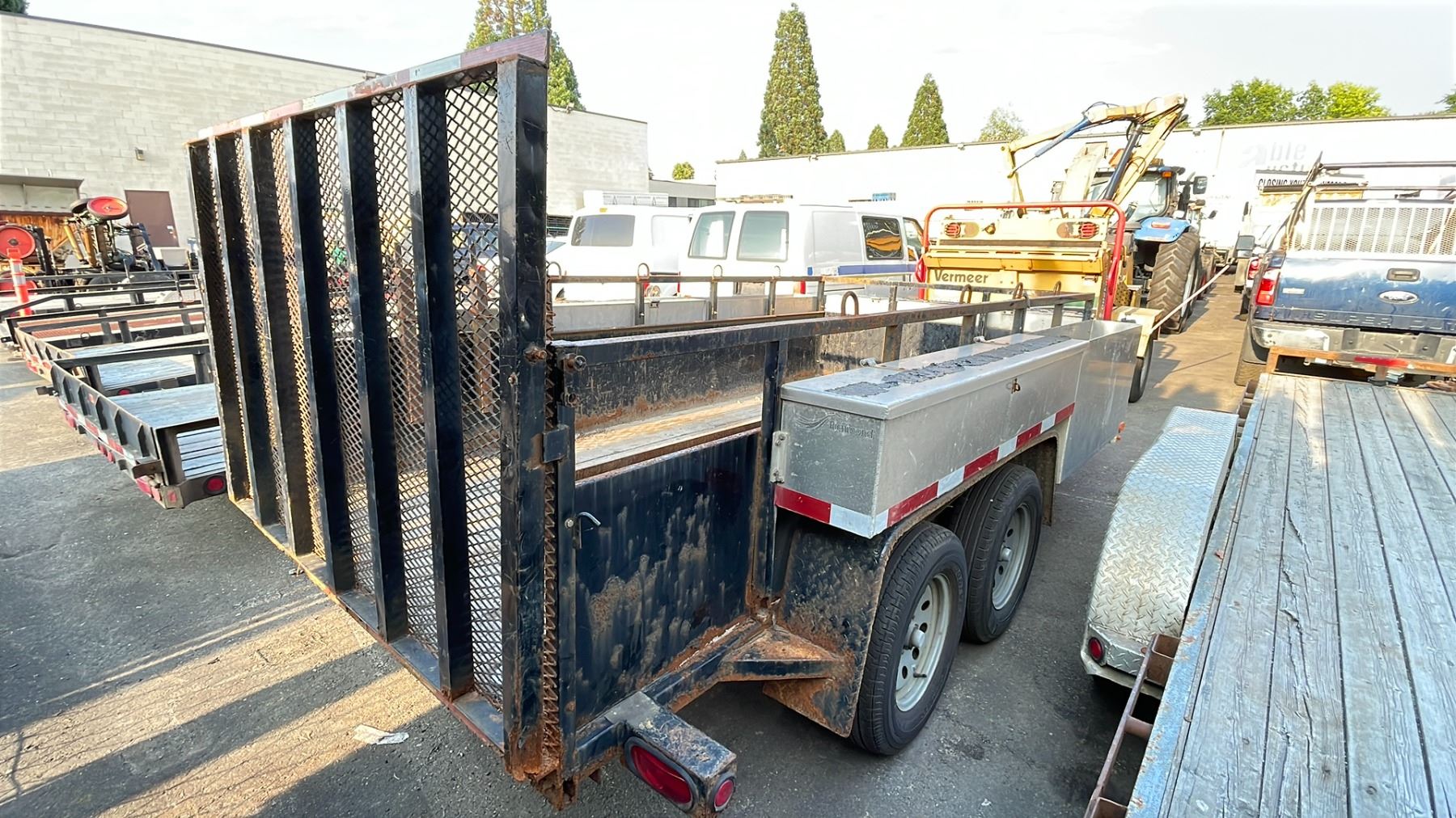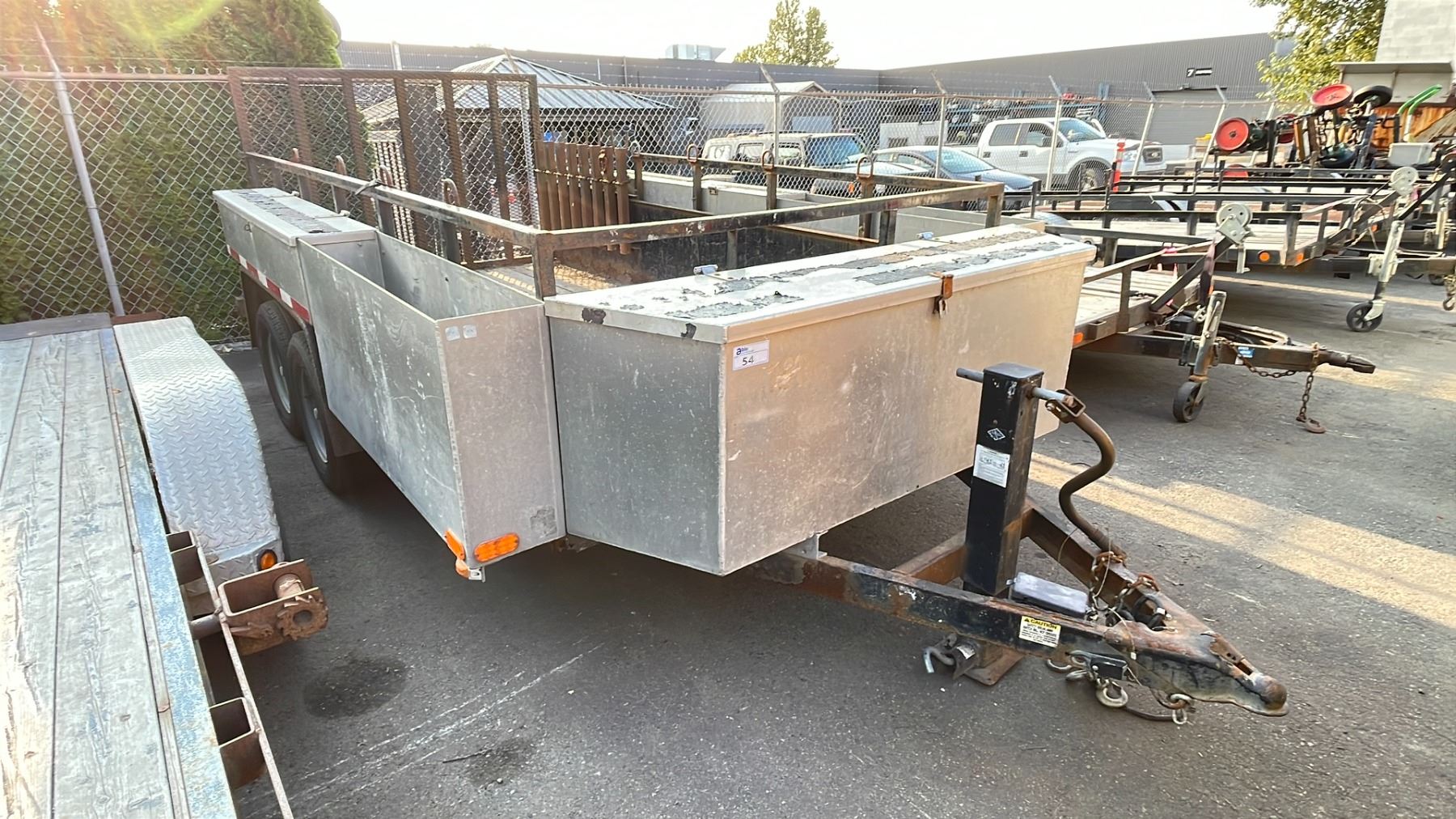 2017 SNAKE RIVER, TANDEM AXLE TRAILER, BLACK, VIN 5PTBU122XH1026864 HISTORY: X-CITY, HAS REGISTRATION, 2 5/16" BALL HITCH, 12' L X 5'8" W X 4' LONG TONGUE, TOTAL LENGTH 16' LONG, 1'6" TALL, 2' 6" METAL SIDES WITH 5 ALUMINIUM CUBBYS, TANDEM AXLE, DECK WITH FOLDING RAMP NO ICBC DECLARATIONS, RUST DAMAGE FROM SODIUMTHISOLPHATE