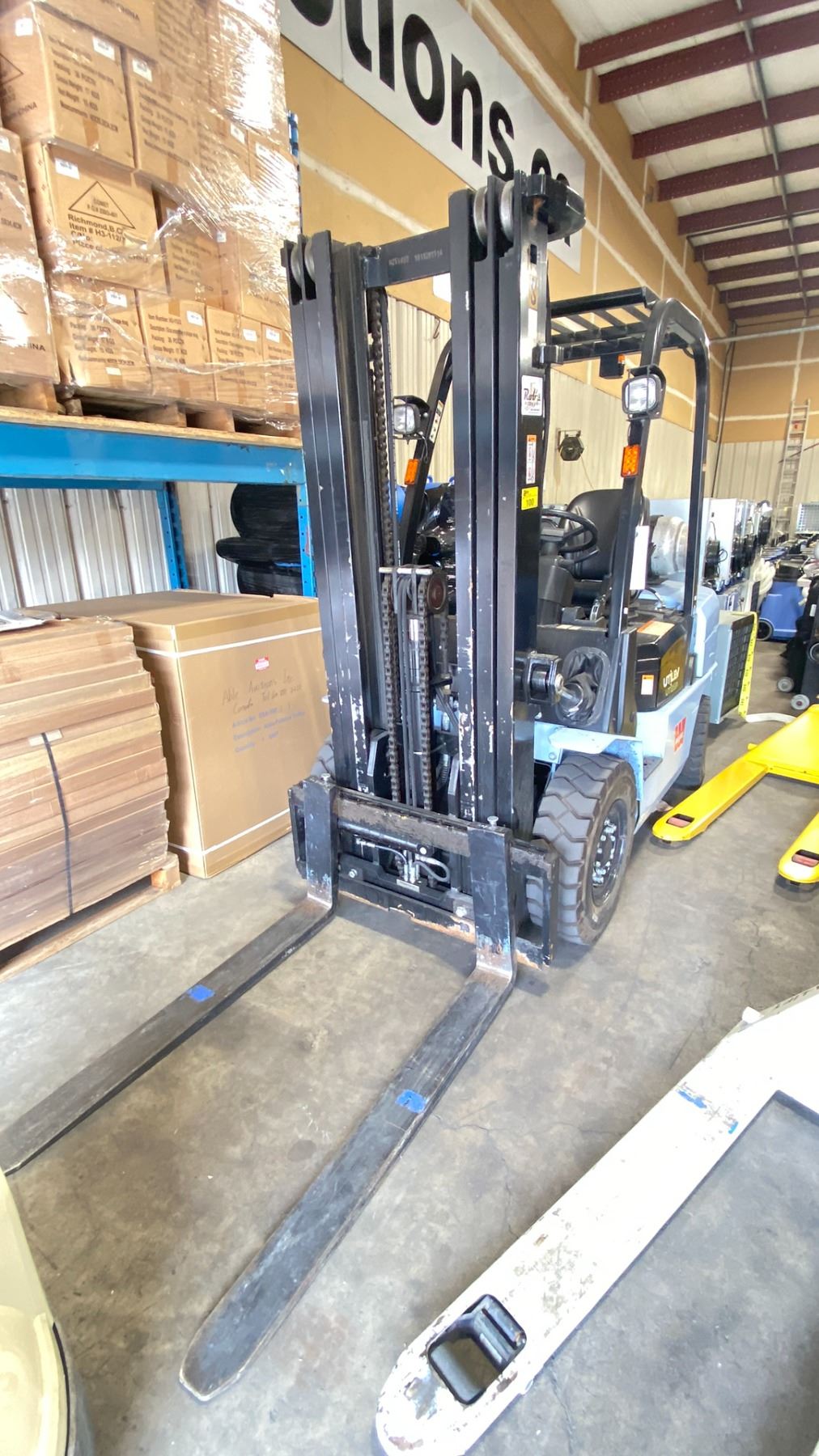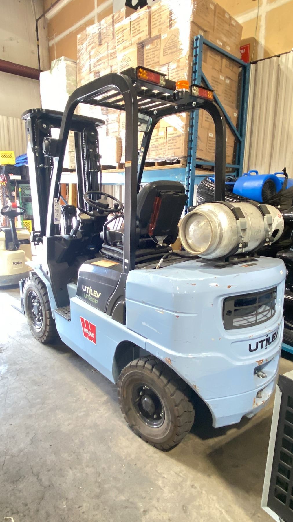 2019 UTILEY UT25P, FORKLIFT, BLUE, VIN A281J07507T 294.00 HOURS (NOT VERIFIED), PROPANE (P), HAS KEYS FEATURES: GOES FORWARD, GOES IN REVERSE, RUBBER TIRES, BRAKES WORK 189" MAST HEIGHT, 4800LB LIFTING CAPACITY, 4' LONG X 5" WIDE FORKS, 4CYL ENGINE, MINOR SCRATCHES & DENTS