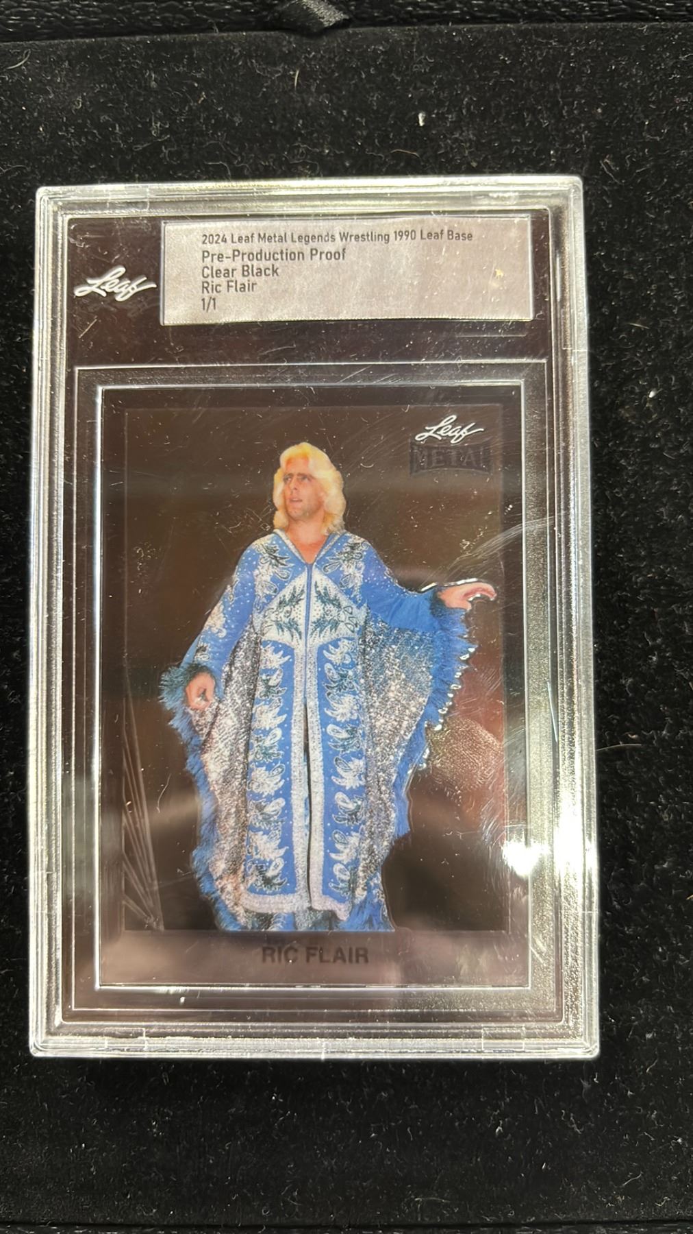 2024 LEAF METAL LEGENDS WRESTLING 1990 LEAF BASE PRE-PRODUCTION PROOF CLEAR BLACK RIC FLAIR 1/1