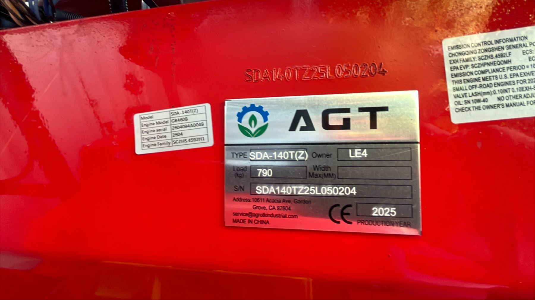 2025 AGT INDUSTRIAL SDA-140T(Z) GAS POWERED RUBBER TRACK RIDE ON MINI SKID STEER WITH ATTACHED 44" BUCKET, RAIN COVER, MINI TOOL KIT & KEYS *MEETS CANADIAN EMISSIONS CONTROL REGULATIONS*