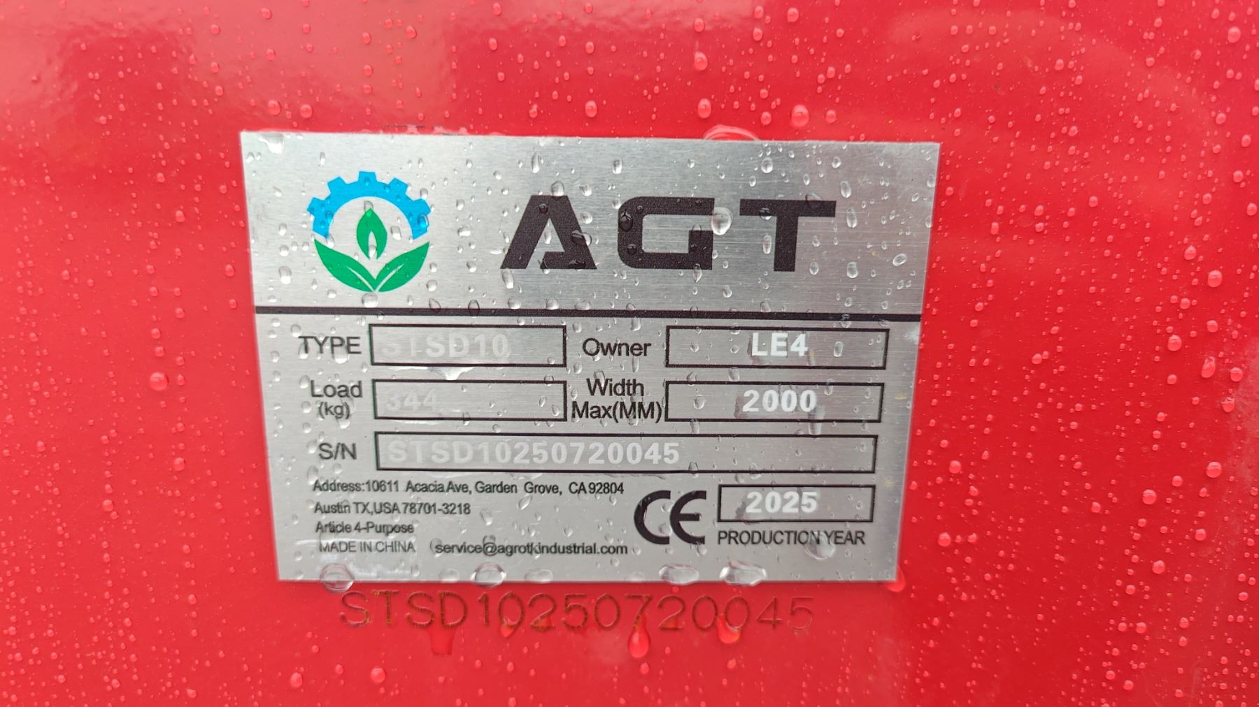 2025 AGT INDUSTRIAL STSD10 SKID STEER SEEDER ATTACHMENT 344KG LOAD CAPACITY 2000MM WIDTH