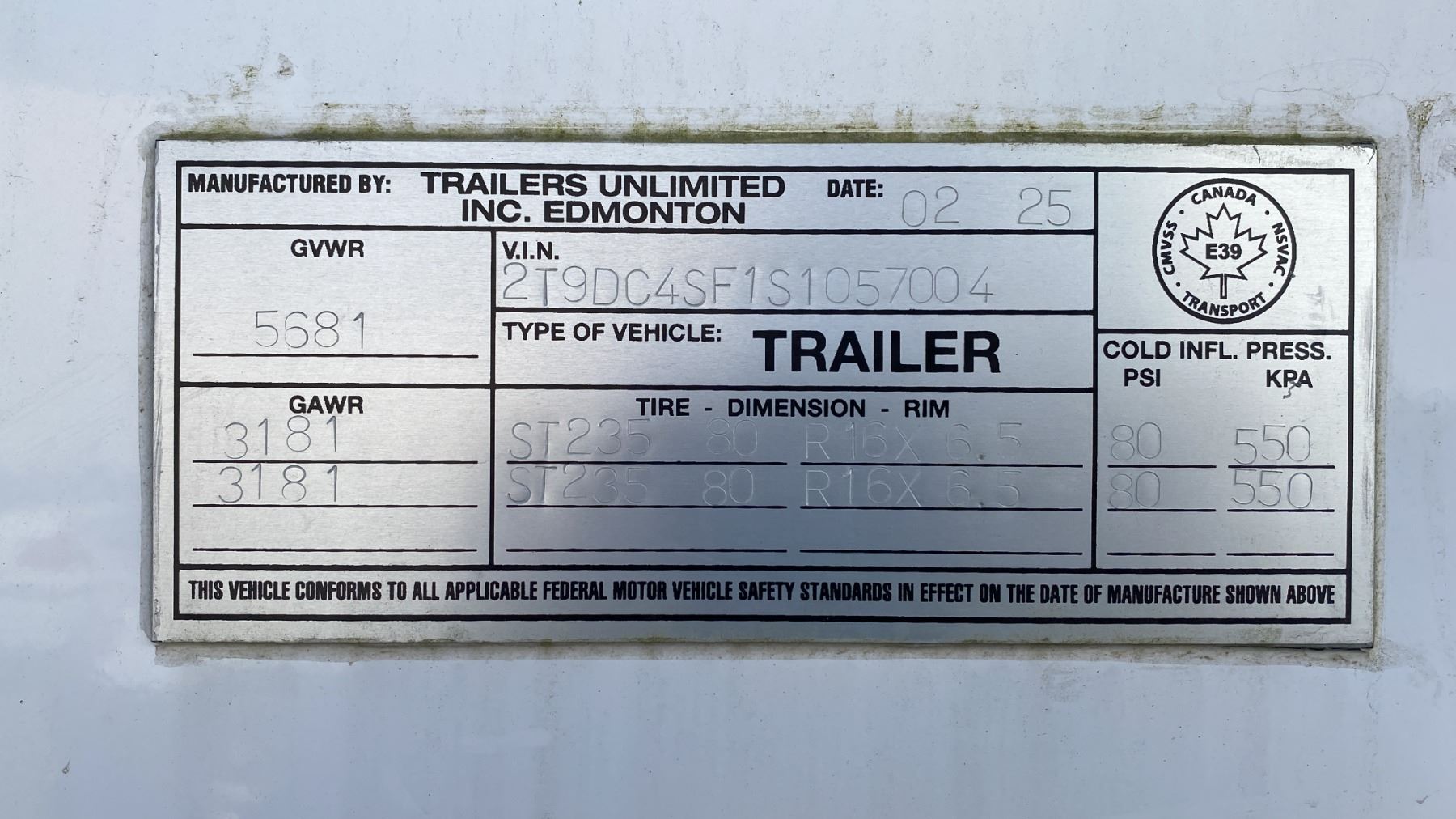 2025 TUI SHUTTLE 20, OFFICE TRAILER, WHITE, VIN 2T9DC4SF1S1057004, HAS REGISTRATION, HISTORY: OOP, ROOF FAN, 2 SLIDING WINDOWS, SINGLE MAN DOOR, WIRED FOR POWER/LIGHTS, VINYL FLOORING, SIDE STEPS, BACK STORAGE, 2 5/16" BALL ONLY, HAS SPARE TIRE, HAND CRANK JACK, GVWR 3181, 21' LENGTH, 24' TO TONGUE, NO ICBC DECLARATIONS, NO OOP DEC INFORMATION AVAILABLE