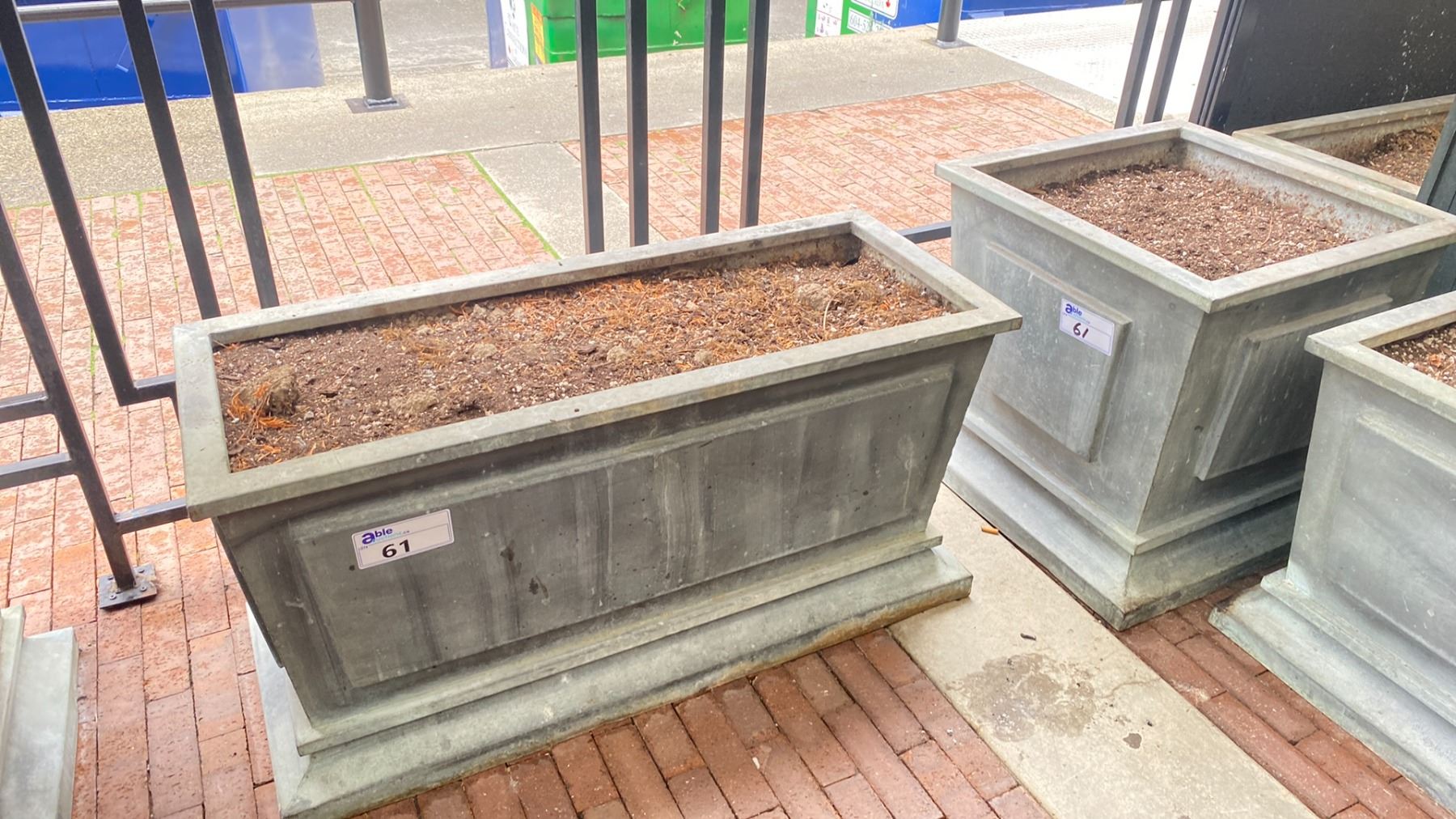 22" SQUARE METAL COMMERCIAL OUTDOOR PLANTER & 39"L X 16" X 20"H RECTANGULAR METAL OUTDOOR PLANTER