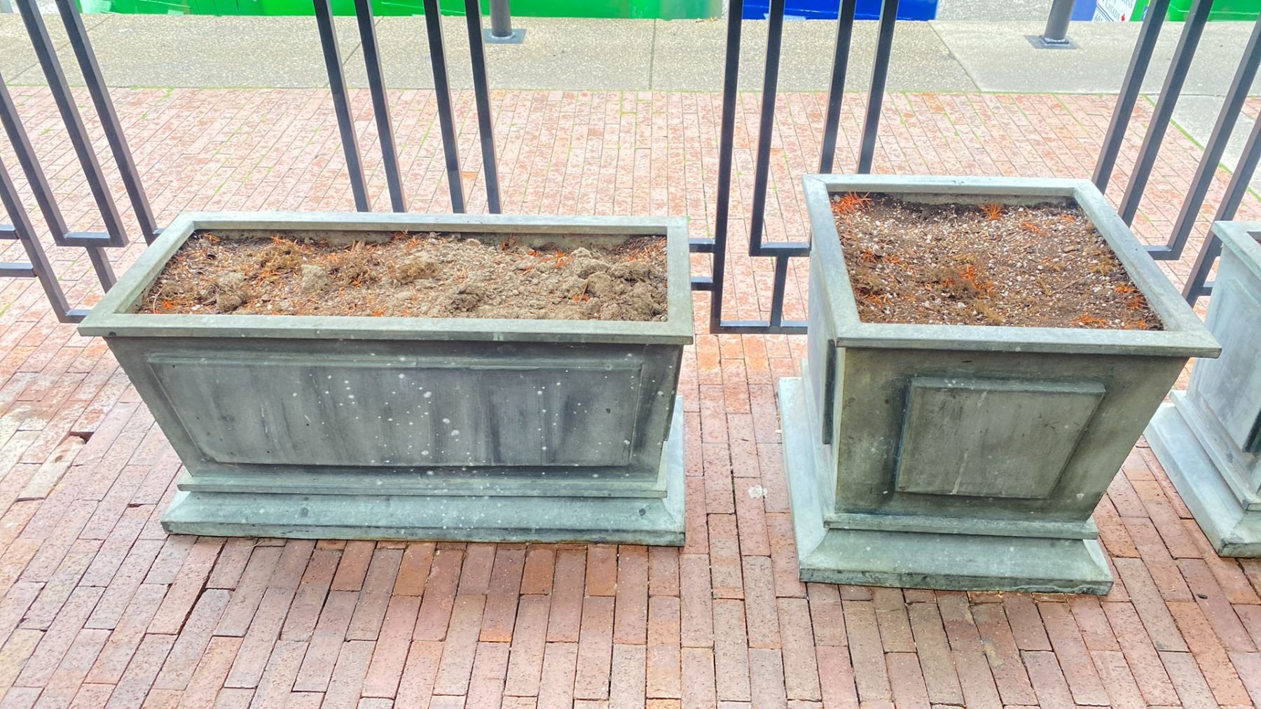 22" SQUARE METAL COMMERCIAL OUTDOOR PLANTER & 39"L X 16" X 20"H RECTANGULAR METAL OUTDOOR PLANTER